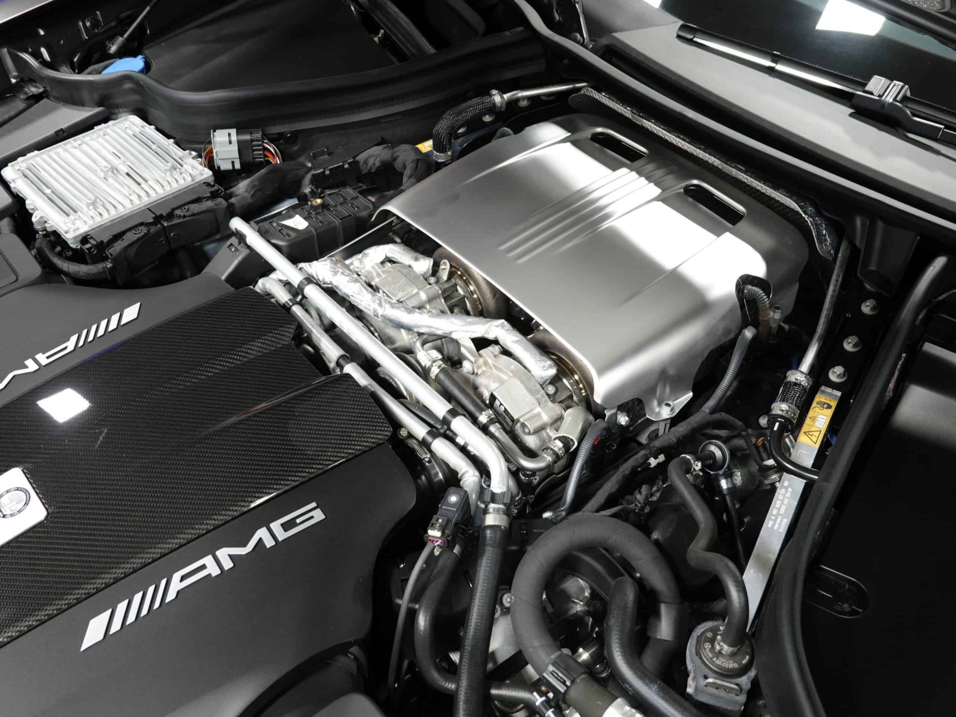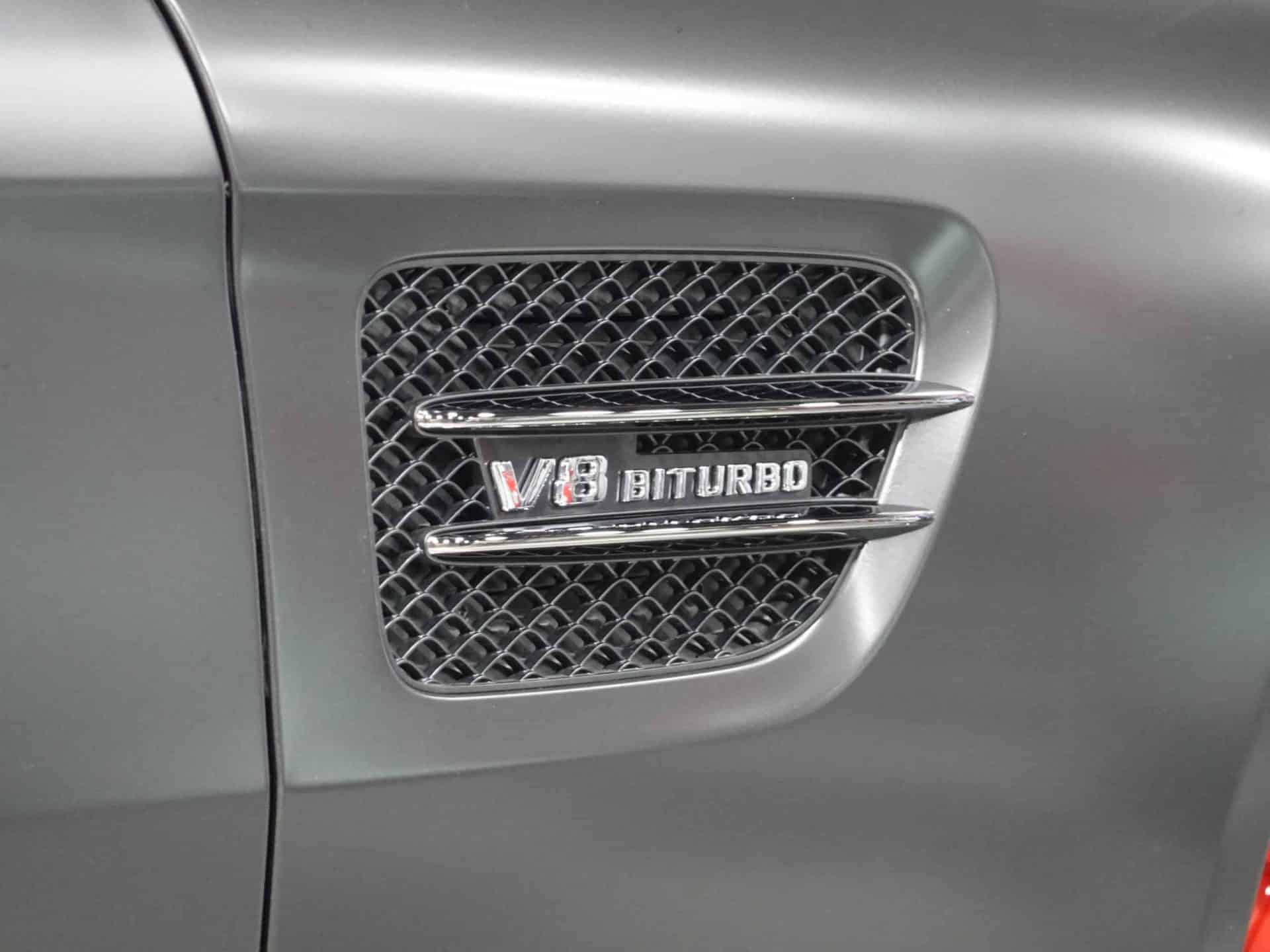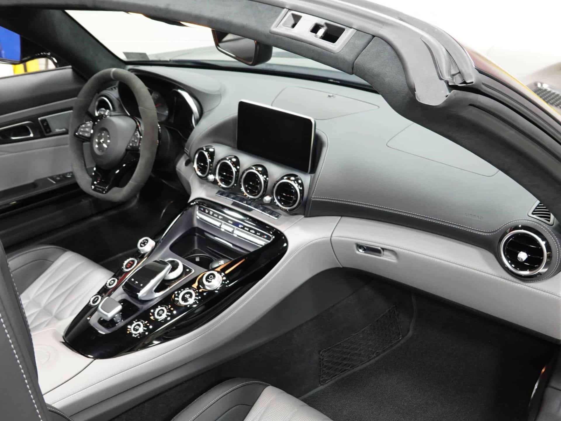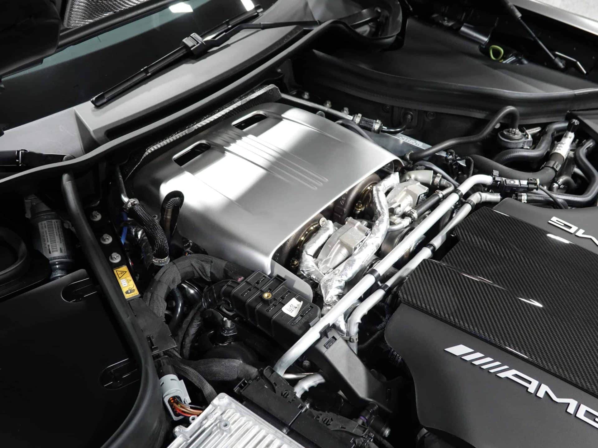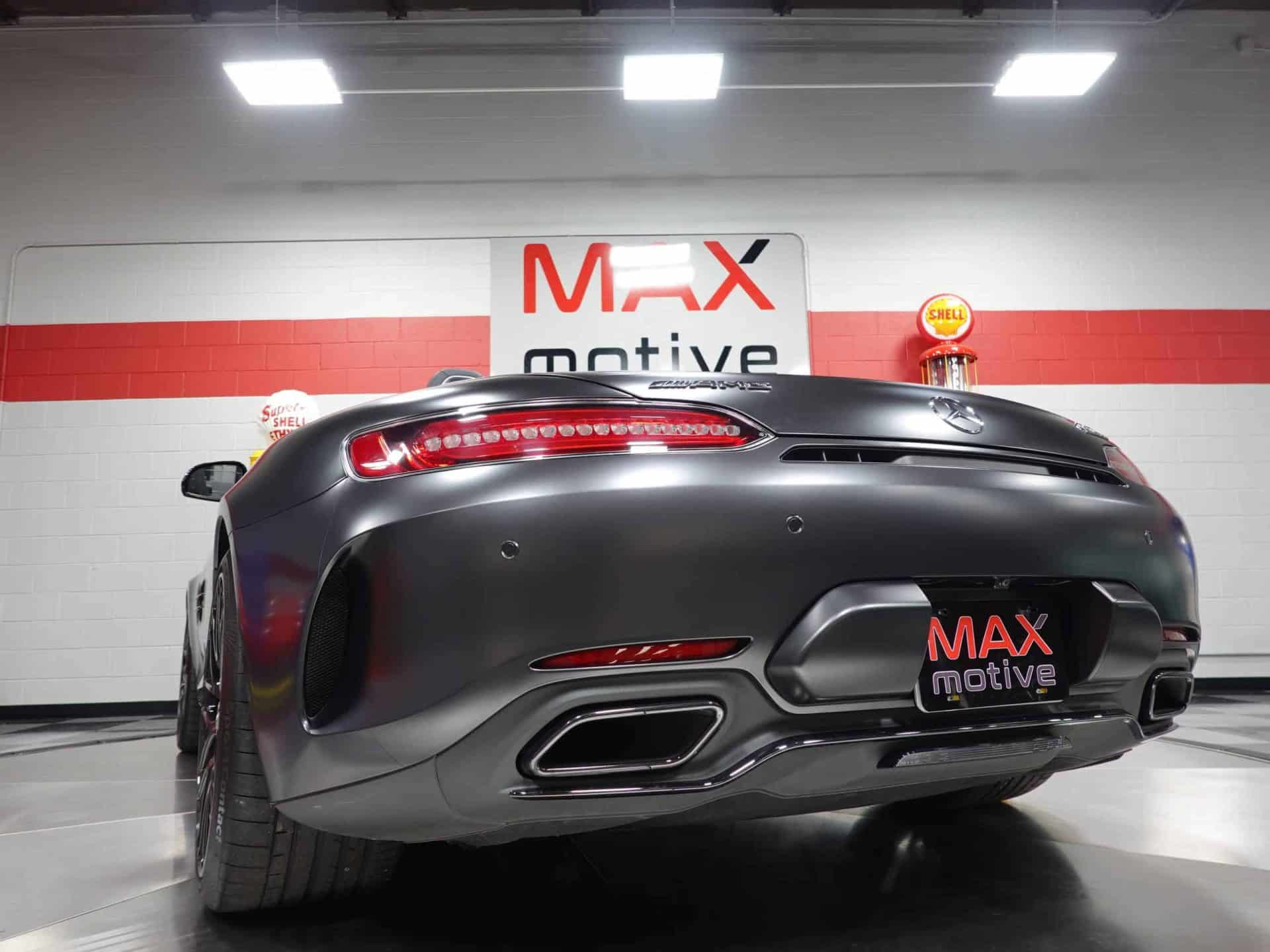 A sight to behold, here is an ultra-exclusive (One of only 50) 2018 Mercedes Benz AMG GT C 50th Anniversary. A mint example with only 552 careful miles, this unique ultra high performance and ultra luxurious Benz offers high-end content and world-class technology. With input from Mercedes Benz’ own Formula 1 World Champion Lewis Hamilton, the company’s AMG racing branch developed the AMG GT entirely in-house. Powered by an authoritative 550 horsepower 4.0L Bi-Turbo V8, it is an extremely engaging automobile with five driving modes. They are Individual (which lets you blend characteristics of the others), Comfort, Sport, Sport +, and Race. You can even adjust the sound of the exhaust. Paddle shifters allow you to operate the AMG Speedshift 7-speed Dual Clutch Automatic Transmission manually. The AMG GT C is a world-class sports car in its own right, but to celebrate the 50th Anniversary of AMG, 50 of these special editions were offered. The 50th Anniversary Edition adds the matte Designo Graphite Gray Magno exterior finish; forged gloss black cross-spoke AMG wheels; black chrome front splitter, fender vent fins, and side skirt inserts; plus black chrome rear diffuser trim and black chrome exhaust outlets. The interior gets silver pearl and black Nappa leather diamond-stitched upholstery, AMG black chrome interior trim, an AMG full Dinamica suede-covered steering wheel (and roof liner), and AMG Edition 50 badging. Burmester High End sound fills the cabin, Mercedes’ optional Parktronic system aids with parking, and the Distronic option is an autonomous cruise-control system. There are many delightful features not found on many cars. The top of the steering wheel is marked just like a Formula 1 car and it’s connected to an electrohydraulic steering rack. The engine and transaxle mounts are electronically controlled to provide an optimum blend of comfort and precision. And there’s a “Handcrafted” badge on the engine cover with the personal signature of the AMG technician who assembled the engine.