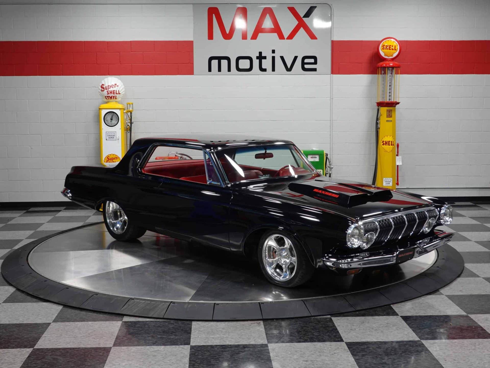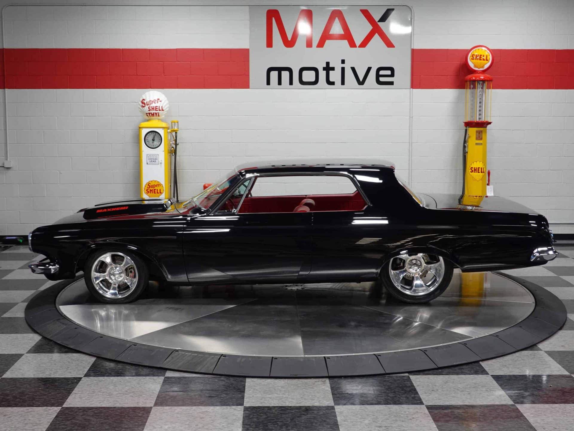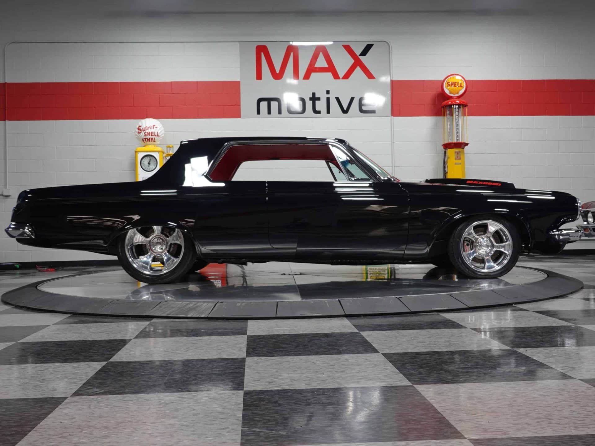 This is a genuine dream car. The product of the fertile imagination of then 17 year old Max Cohen, under the auspices of the Make-A-Wish Foundation and the Boyd Coddington Foundation, the Max Hemi came to fruition. A reverent nod to the notorious Max Wedge cars that ruled the drag strips in the early 60s, the Max Hemi is just that. No fewer than 472 cubic inches of Elephant reside under the dual-scooped hood. Raising the hood reveals — yes, fans — a Mopar Cross-Ram intake and twin Holley carbs. Supreme attention to detail is evident in such items as a coated regulator and polished stainless fuel lines, plus a polished alternator, March pulleys, coated water pump, and a billet expansion tank. Coated Sanderson headers feed into a 3-inch mandrel-bent exhaust system with Magnaflow mufflers and an X-pipe. The sound is fabulous. The best way to describe it is a 472 inch Hemi through Sanderson headers and 3-inch exhaust! Another Max Wedge tradition is a beefy 727 Torqueflite automatic to transfer the power. This one has a B&M ratchet shifter connected to it to make gear changes quick and safe. (Includes reverse lock-out) The top tier drivetrain concludes with a Currie 9-inch rear axle. To handle the power, the chassis was upgraded with rack & pinion steering and coilover shocks and Baer slotted disc brakes all the way around. Naturally, Boyd wheels grace each corner with 17s in the front and massive 19 inchers in the back. The proper mods were done to tuck the rolling stock into the fenderwells. Goodyear 225/45R17 tires do the steering and big 295/40R20 meats put the power down. They also provide a great big n’ little look. Magnum Force Race Car Fabrication did the suspension — including a complete Mopar tubular front suspension assembly. The Max Hemi project began with a 1963 Polara body that was completely disassembled and media blasted. Any corrosion repair was done by welding in new metal. Then the Coddington crew put in the effort by sanding to make the surface ready for the mirror smooth black paint, specified by young Max. The paint is so nice, that all excess trim was removed and the door handles were shaved to further enhance the smooth effect. Simple, clean custom “Max Hemi” graphics adorn the hood scoops. The interior is also uncluttered yet it’s all custom from the masters at Gabe Lopez’s Street Rod Custom Interiors of California. The red leather nicely contrasts with the black exterior. The steering wheel is on a tilt column, and the instrument panel has an Ultimate Fighter theme. There’s a richness to the plush red carpeting, and the spacious trunk is custom-upholstered as well. Billet door handles and billet pedals provide the appropriate finishing details. In addition to the impressive array of quality hardware, there’s exceptional provenance and notoriety associated with the Max Hemi. The Learning Channel’s American Hot Rod series chronicled the build, the finished product was featured at SEMA 2005, and it garnered a winning bid of $550,000.00 at the prestigious Barrett-Jackson Scottsdale with the proceeds benefiting Make-A-Wish. The car lives on in loving memory of one of the all-time great builders and a young man who represents so many like him with a dream in his heart. The car has been meticulously maintained and is ready for top-level shows or the most discerning driver. It was acquired for the Maxwell Family Collection and has now been released for sale at Maxmotive, giving you a unique opportunity to own a one-of-a-kind custom from the shop of the legendary Boyd Coddington.