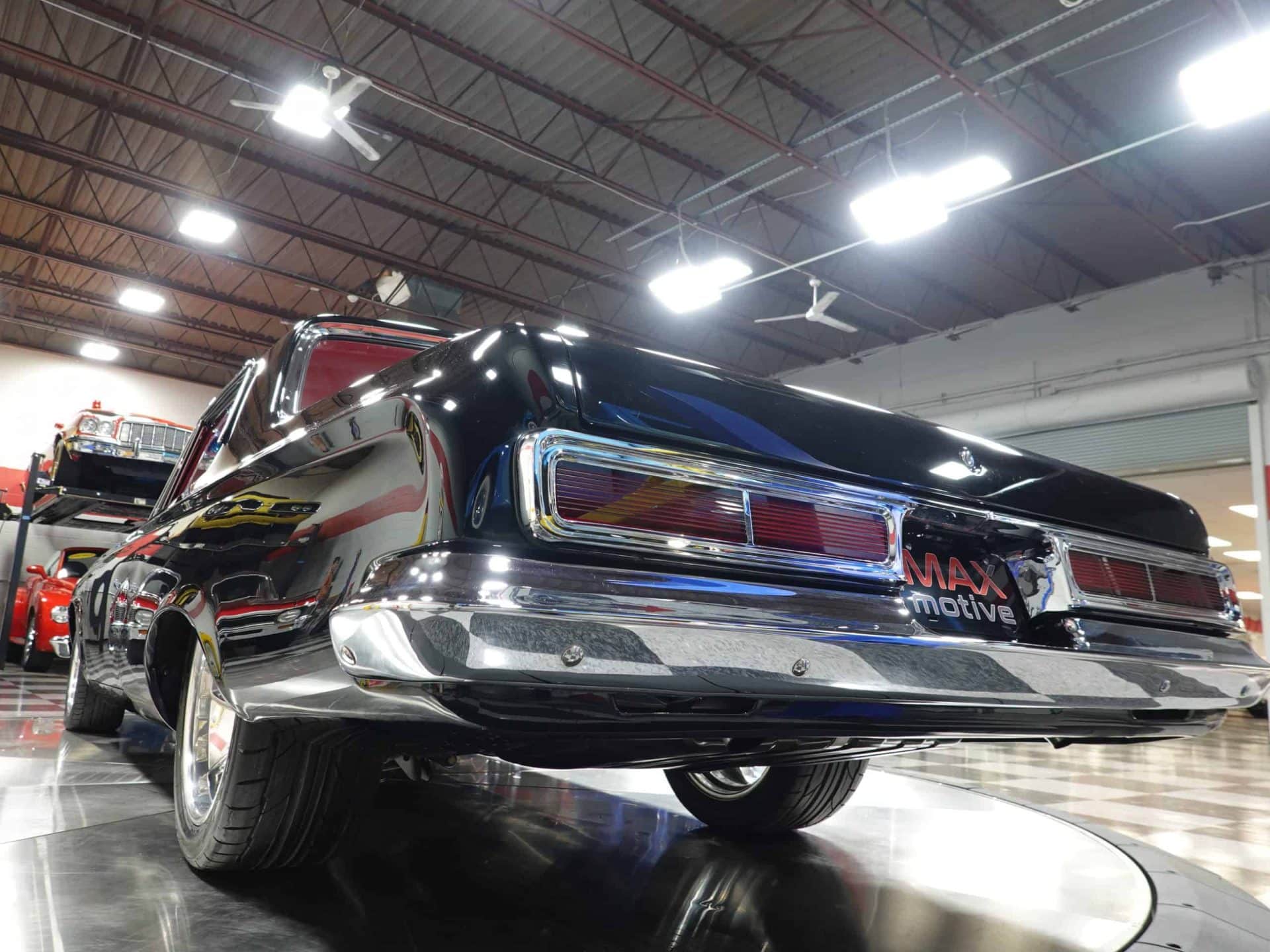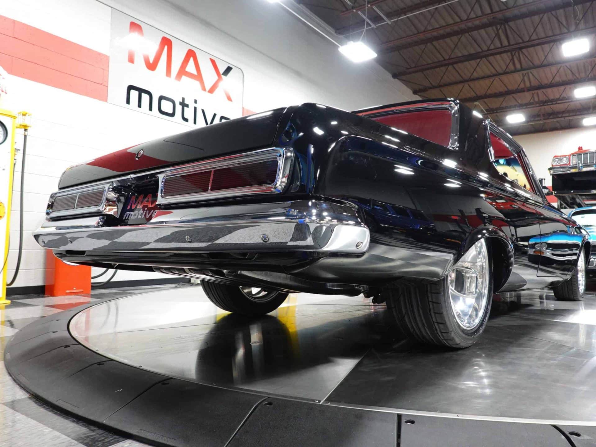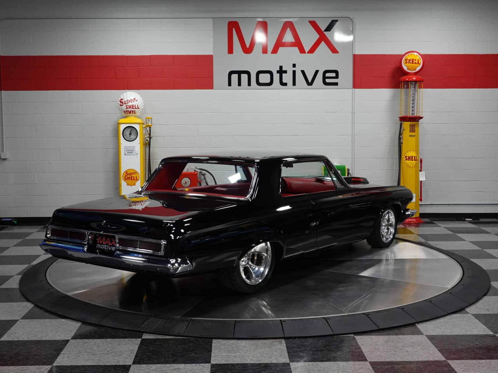 This is a genuine dream car. The product of the fertile imagination of then 17 year old Max Cohen, under the auspices of the Make-A-Wish Foundation and the Boyd Coddington Foundation, the Max Hemi came to fruition. A reverent nod to the notorious Max Wedge cars that ruled the drag strips in the early 60s, the Max Hemi is just that. No fewer than 472 cubic inches of Elephant reside under the dual-scooped hood. Raising the hood reveals — yes, fans — a Mopar Cross-Ram intake and twin Holley carbs. Supreme attention to detail is evident in such items as a coated regulator and polished stainless fuel lines, plus a polished alternator, March pulleys, coated water pump, and a billet expansion tank. Coated Sanderson headers feed into a 3-inch mandrel-bent exhaust system with Magnaflow mufflers and an X-pipe. The sound is fabulous. The best way to describe it is a 472 inch Hemi through Sanderson headers and 3-inch exhaust! Another Max Wedge tradition is a beefy 727 Torqueflite automatic to transfer the power. This one has a B&M ratchet shifter connected to it to make gear changes quick and safe. (Includes reverse lock-out) The top tier drivetrain concludes with a Currie 9-inch rear axle. To handle the power, the chassis was upgraded with rack & pinion steering and coilover shocks and Baer slotted disc brakes all the way around. Naturally, Boyd wheels grace each corner with 17s in the front and massive 19 inchers in the back. The proper mods were done to tuck the rolling stock into the fenderwells. Goodyear 225/45R17 tires do the steering and big 295/40R20 meats put the power down. They also provide a great big n’ little look. Magnum Force Race Car Fabrication did the suspension — including a complete Mopar tubular front suspension assembly. The Max Hemi project began with a 1963 Polara body that was completely disassembled and media blasted. Any corrosion repair was done by welding in new metal. Then the Coddington crew put in the effort by sanding to make the surface ready for the mirror smooth black paint, specified by young Max. The paint is so nice, that all excess trim was removed and the door handles were shaved to further enhance the smooth effect. Simple, clean custom “Max Hemi” graphics adorn the hood scoops. The interior is also uncluttered yet it’s all custom from the masters at Gabe Lopez’s Street Rod Custom Interiors of California. The red leather nicely contrasts with the black exterior. The steering wheel is on a tilt column, and the instrument panel has an Ultimate Fighter theme. There’s a richness to the plush red carpeting, and the spacious trunk is custom-upholstered as well. Billet door handles and billet pedals provide the appropriate finishing details. In addition to the impressive array of quality hardware, there’s exceptional provenance and notoriety associated with the Max Hemi. The Learning Channel’s American Hot Rod series chronicled the build, the finished product was featured at SEMA 2005, and it garnered a winning bid of $550,000.00 at the prestigious Barrett-Jackson Scottsdale with the proceeds benefiting Make-A-Wish. The car lives on in loving memory of one of the all-time great builders and a young man who represents so many like him with a dream in his heart. The car has been meticulously maintained and is ready for top-level shows or the most discerning driver. It was acquired for the Maxwell Family Collection and has now been released for sale at Maxmotive, giving you a unique opportunity to own a one-of-a-kind custom from the shop of the legendary Boyd Coddington.