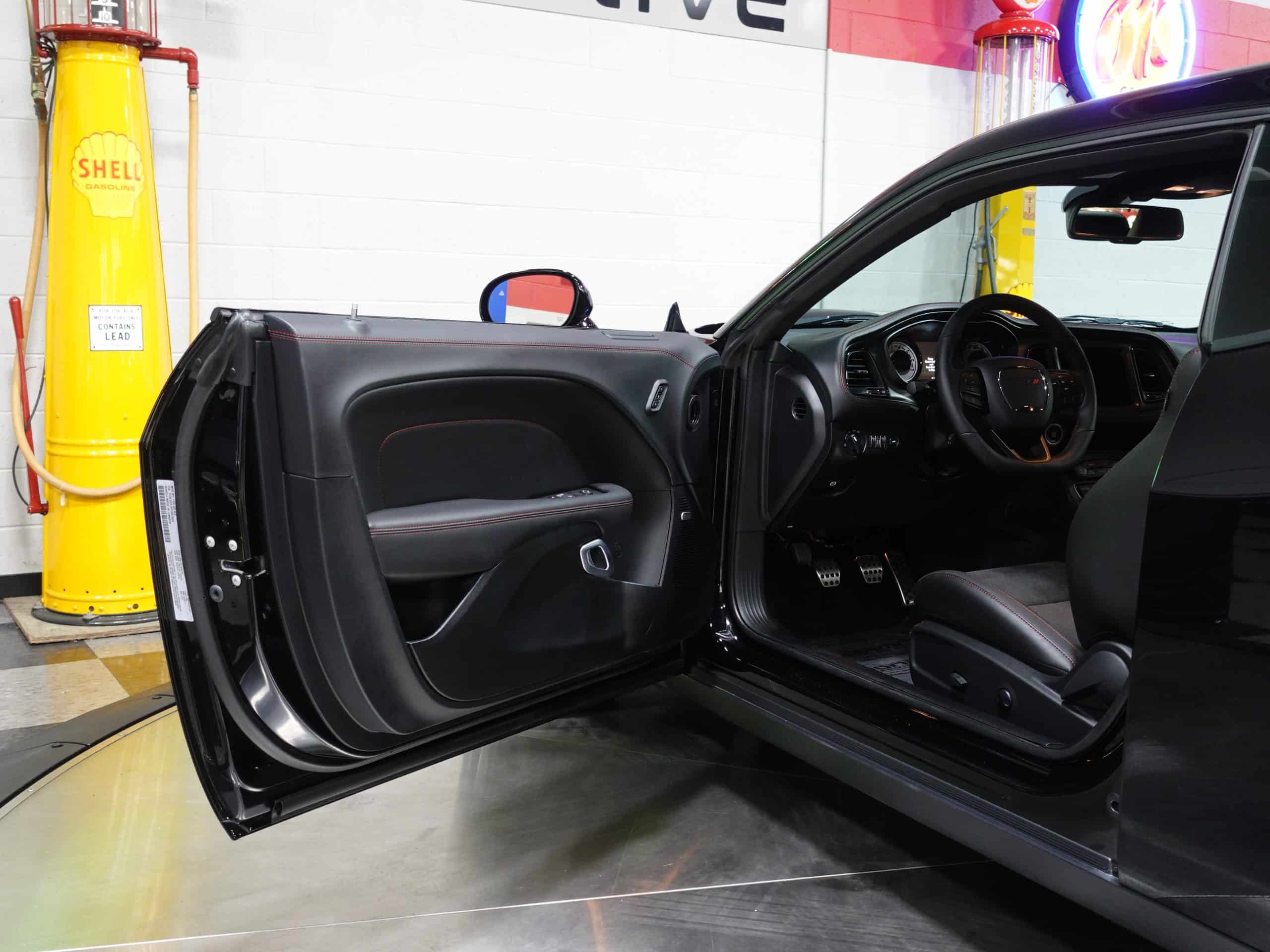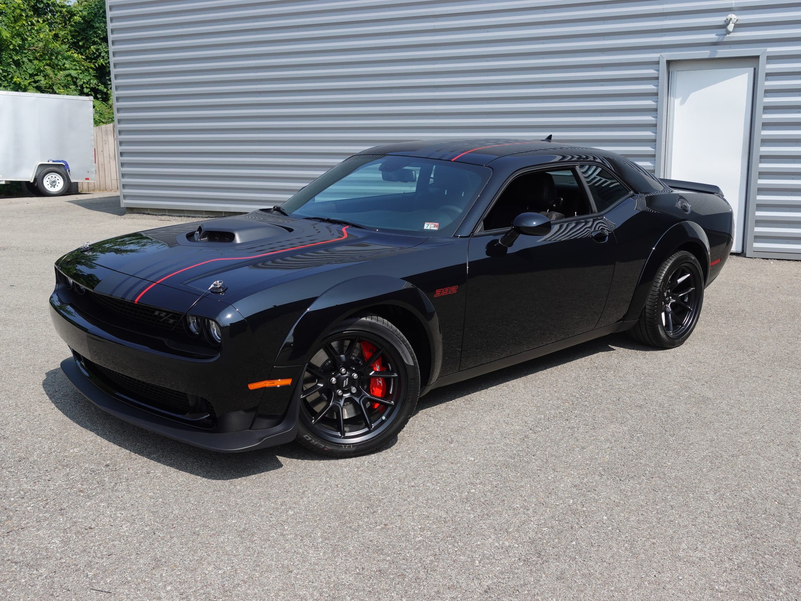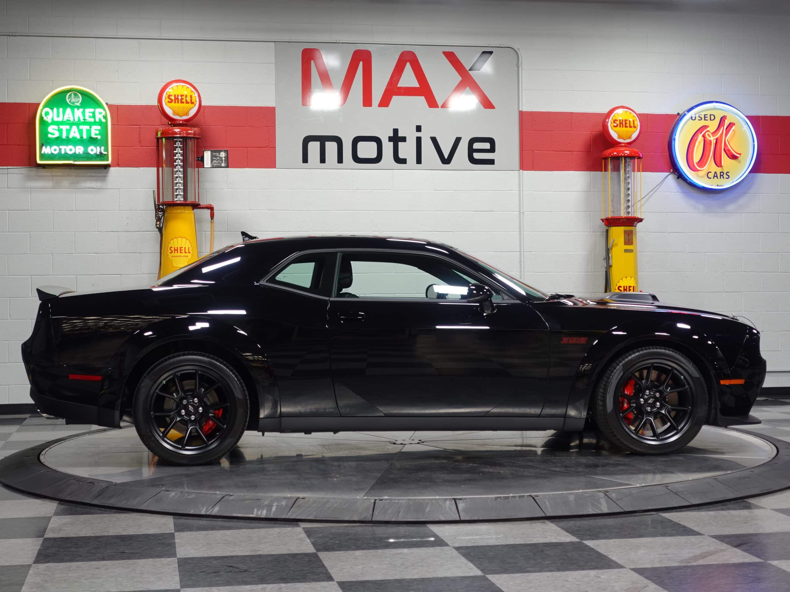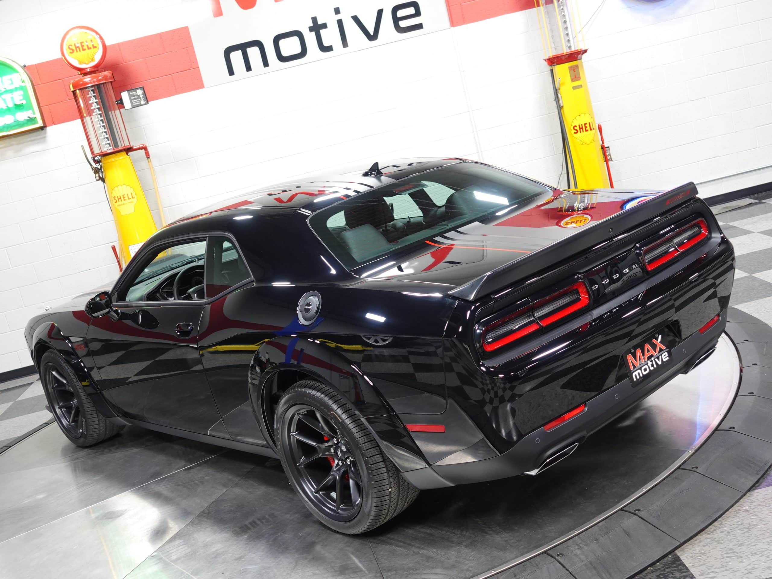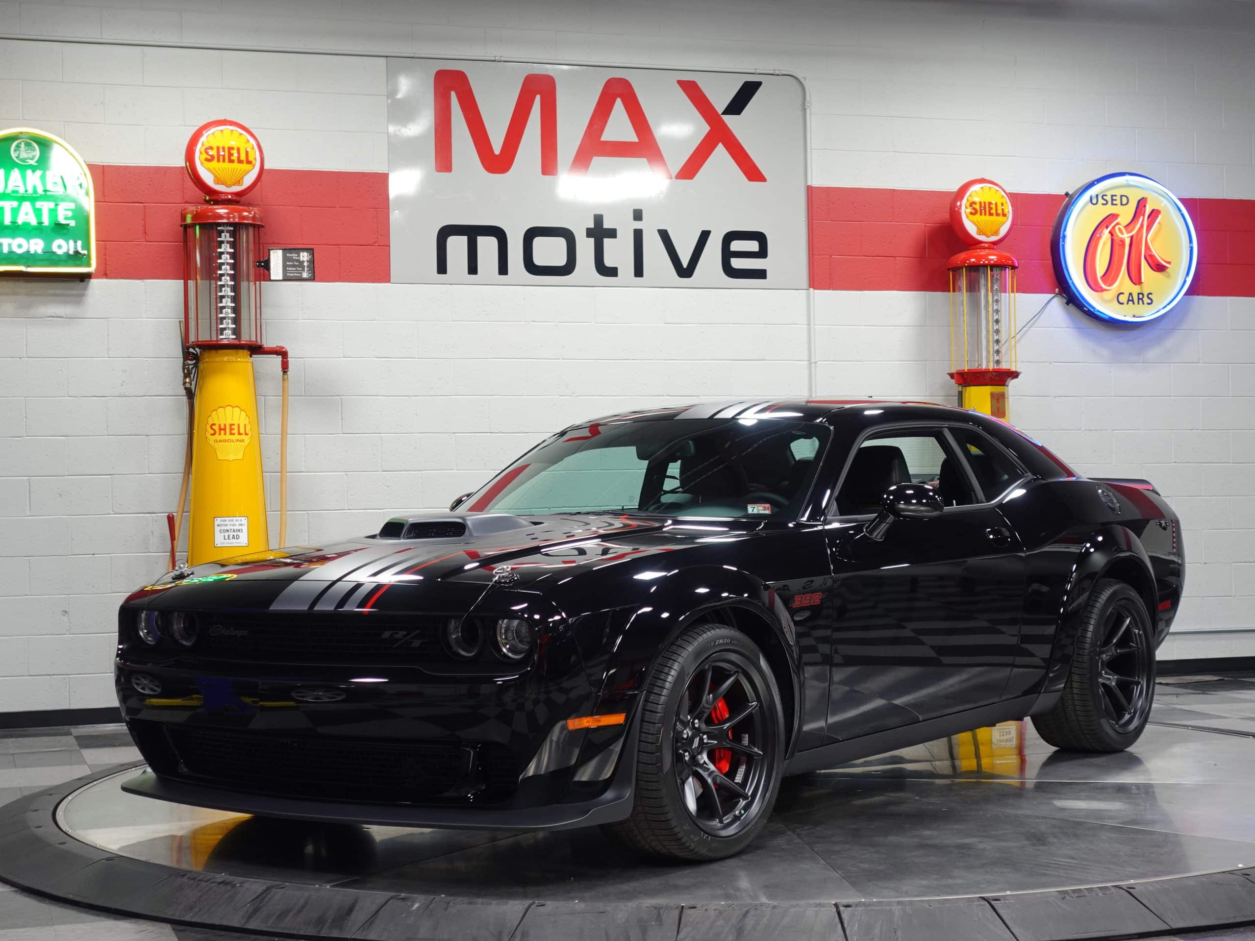The first of the long-anticipated Last Call Editions, this 2023 Dodge Challenger Shakedown R/T Scat Pack Widebody is now available from the MaxMotive Pittsburgh Showroom. Its long name denotes its long list of exciting features, trim enhancements, and performance hardware. Only 500 of these were built and were allocated only to the country’s top dealership. The 392 SRT Hemi V8 engine generates a stout 475 horsepower and sends it through a 6-speed TREMEC manual transmission. Already powerful acceleration is enhanced with such technology as Launch Control, Launch Assist, Performance Shift Indicator, and a Line Lock. The SRT group also contributed the SRT Configurable Drive Modes and Performance Pages. The Widebody package allows the performance and appearance benefits of large 305/35ZR20 Pirelli ultra-performance tires at all four corners. Unique Shakedown striping with red accents augment the rich Pitch Black exterior paint. Meantime, luxurious appointments coddle you in comfort such as the beautiful Carbon/Suede interior package, heated and ventilated front seats, heated steering wheel, and a power tilt/telescope column. The custom Shakedown callouts and ID serve to emphasize that this 2023 Dodge Challenger Shakedown R/T Scat Pack Widebody truly is a special, well-equipped automobile. Please see the detailed photos and videos at www.maxmotive.com.