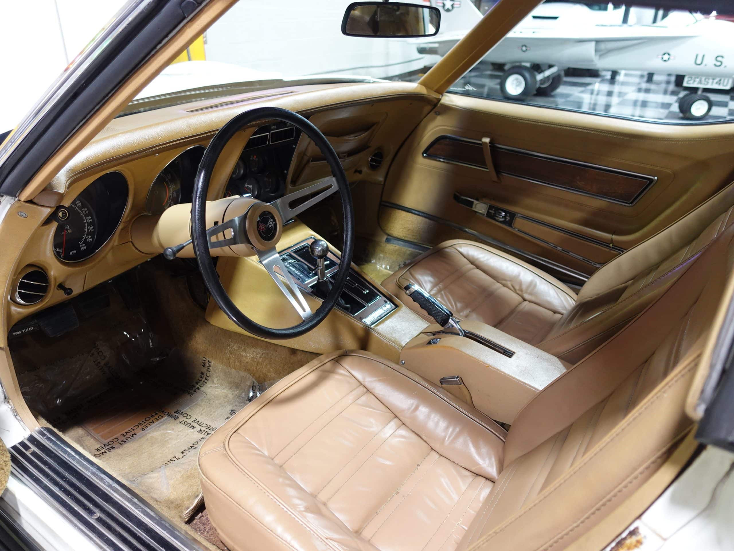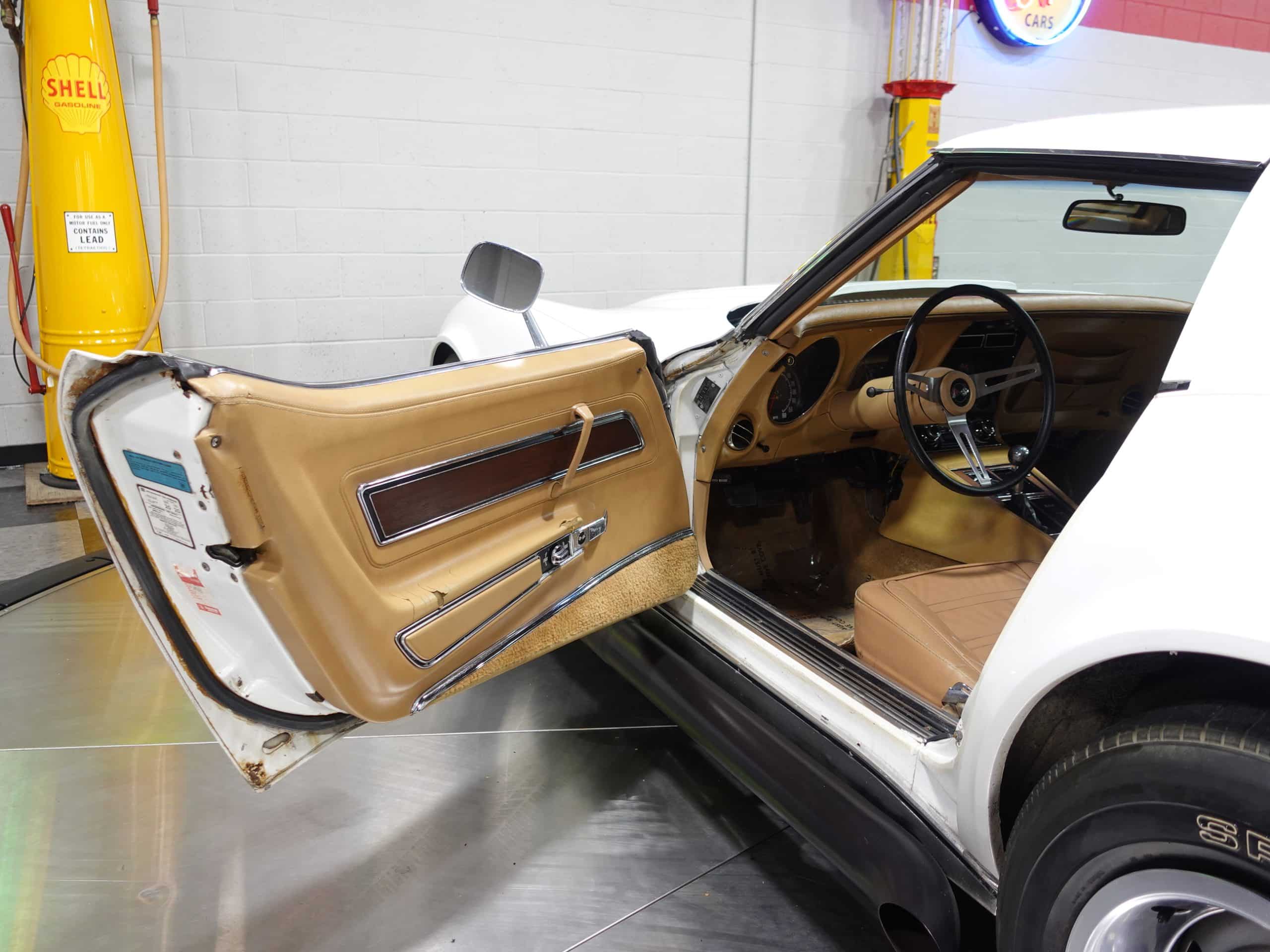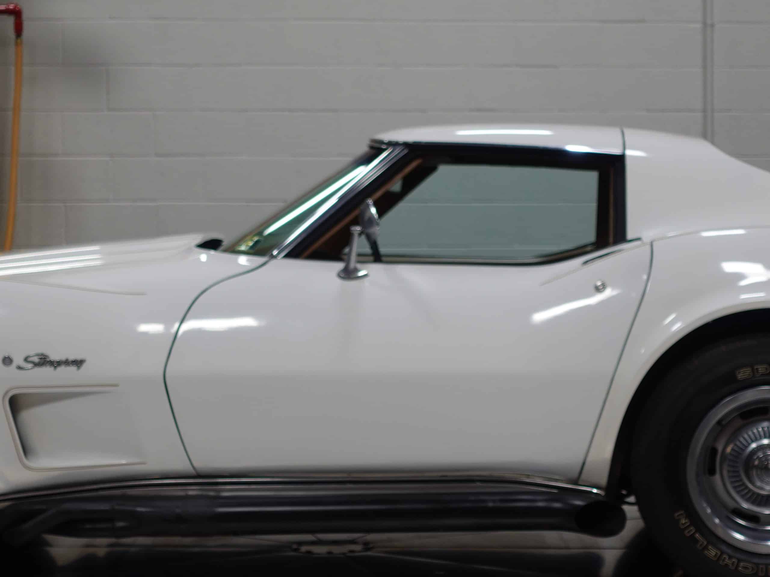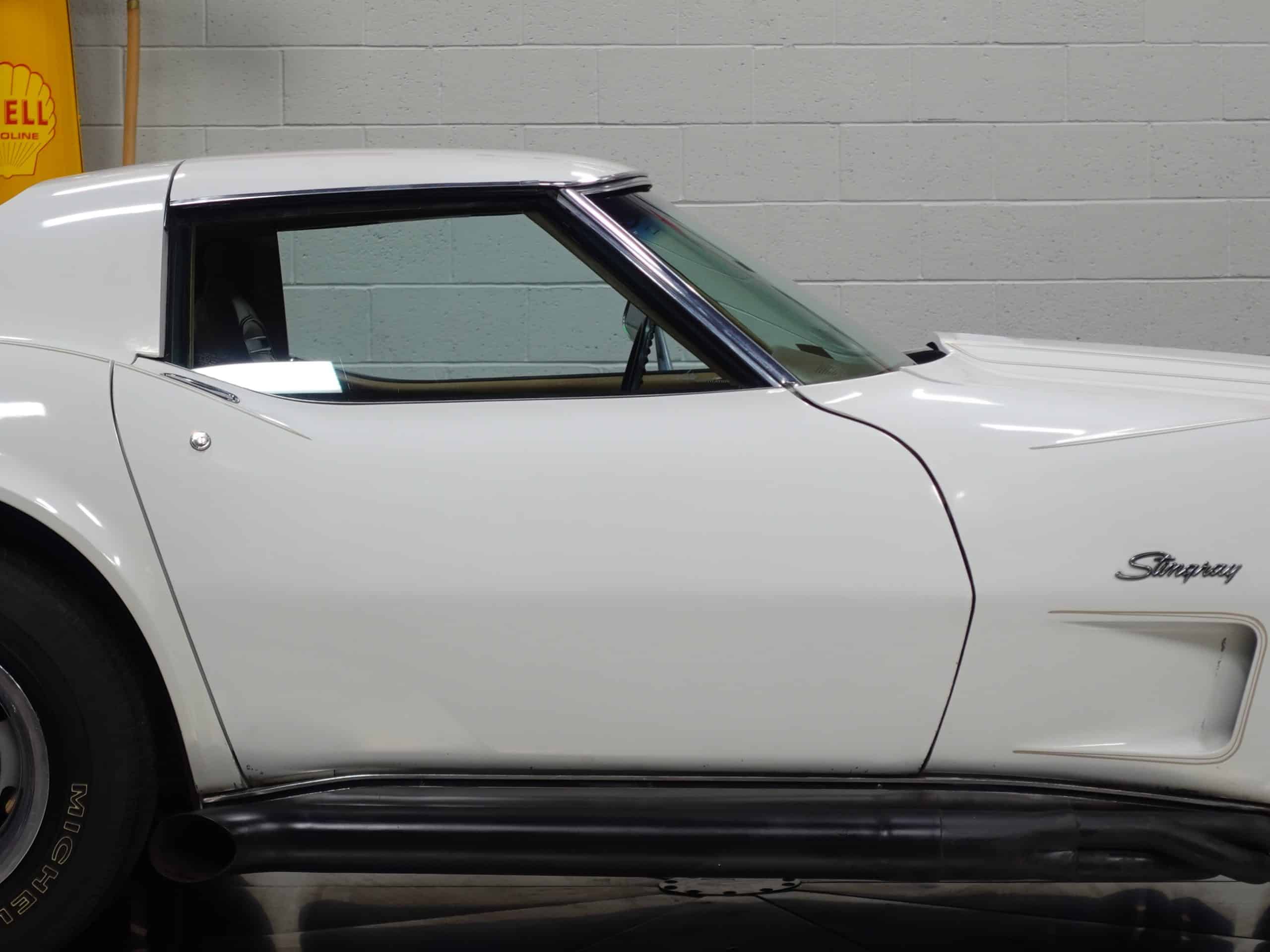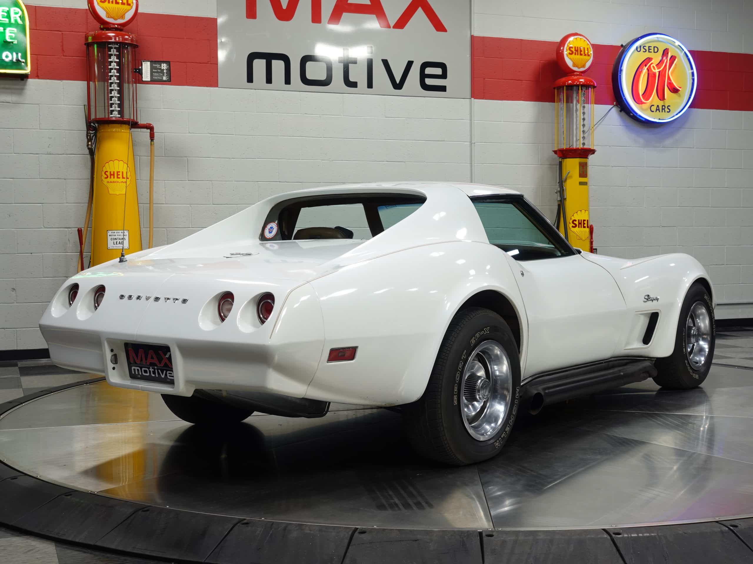 This handsome and original 1974 Chevrolet Corvette Coupe is now available from the MaxMotive Pittsburgh Showroom. The original drivetrain, consisting of the solid, numbers-matching L48 350 V8 and a four-speed manual transmission, has been left stock as has the body, the optional Custom Leather Interior, and even the Rallye wheels with hubcaps and trim rings. A complete set of Michelin tires in the stock replacement size 225/70R15 assures smooth ride and handling. The popular T-roof body allows open air motoring plus the rigid structure of a coupe. The car came equipped with air conditioning, but it is currently not blowing cold. The factory tach is also not functioning. All other systems are go, and this 1974 Chevrolet Corvette Coupe runs and looks great. Please be sure to see the detailed photos at www.maxmotive.com.