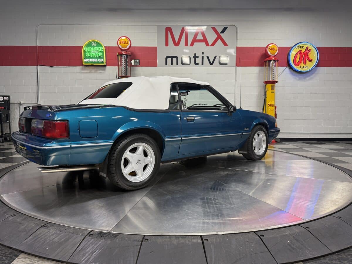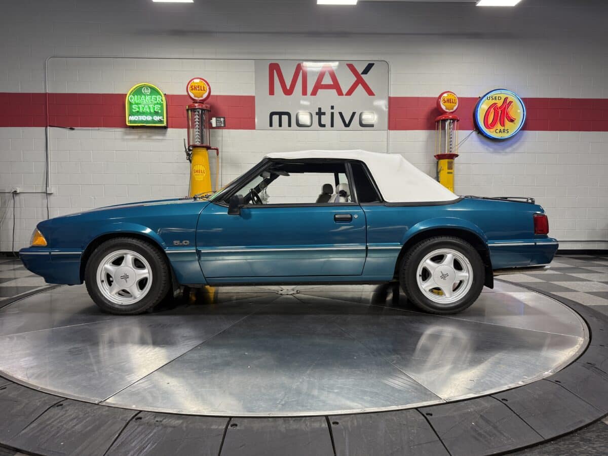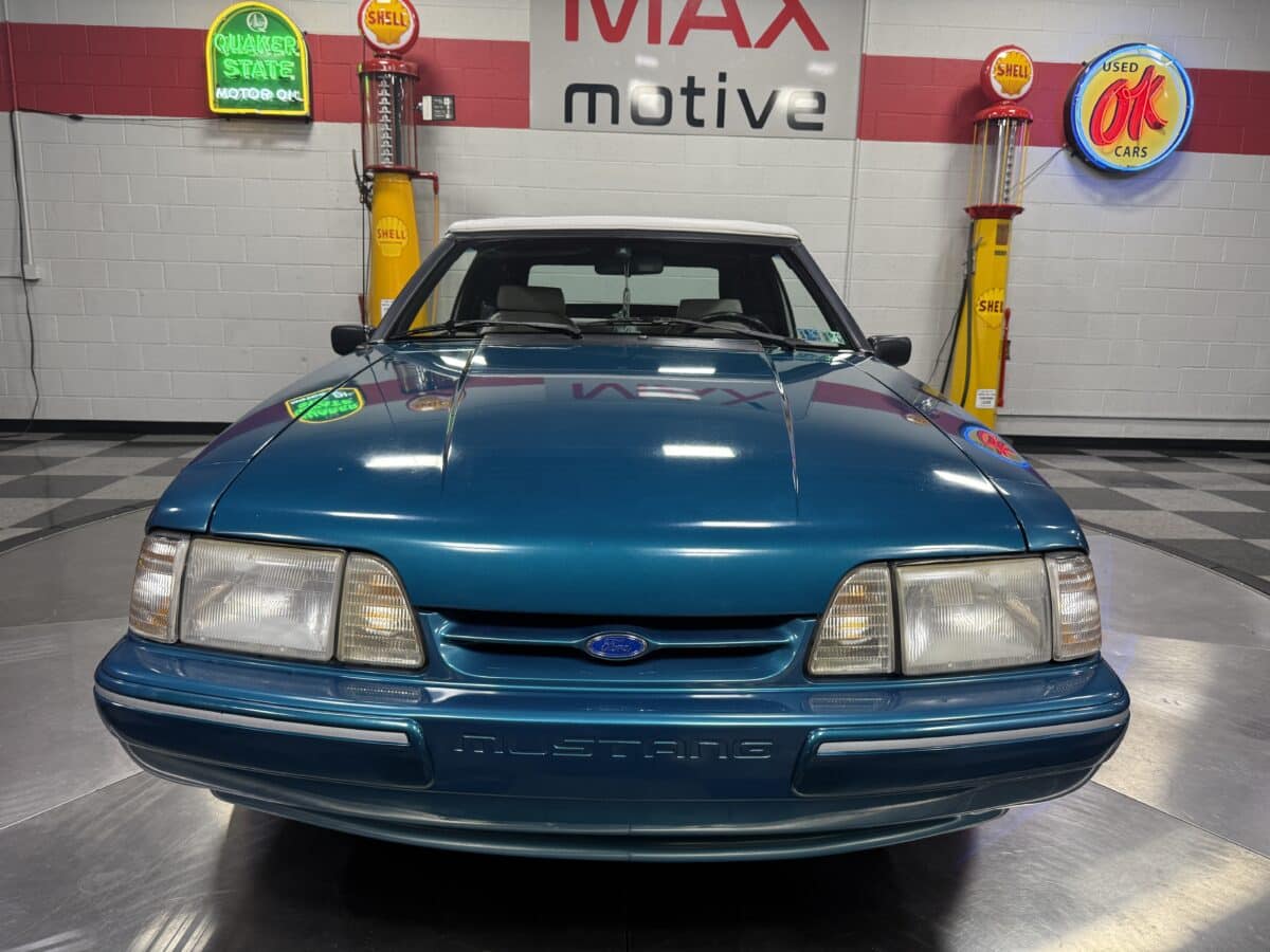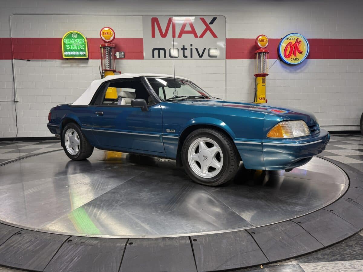 Maxmotive is proud to offer this stunning, low mileage, and very well preserved 1993 Mustang 5.0 LX convertible. This convertible has been owned by the same owner since 1994. The Mustang has been lovingly cared for, and only has 23,000 original miles on the Foxbody. Finished in a stunning Reef Blue exterior paint, beautifully offset by the very clean white interior and white top. The convertible top is functional as shown in the video. The original tonneau cover is included as well. This stunner was also nicely optioned out and loaded from the factory. Some of the dealership installed options include luggage rack, with power lumbar support on both front seats. Inside for driver comfort there are power windows and locks, power mirrors, cruise control, and tape player. This nicely optioned LX also carries the 16” aluminum Pony wheels for an enhanced stance. A lot of the Mustang LX’s were driven back in the day, and not preserved like this one has been. For more pictures and information, please check our website at www.maxmotive.com