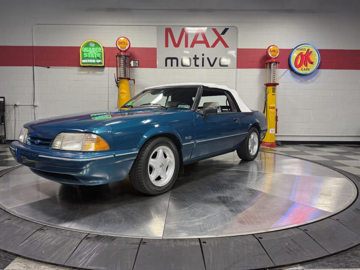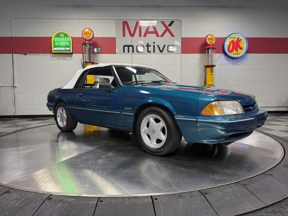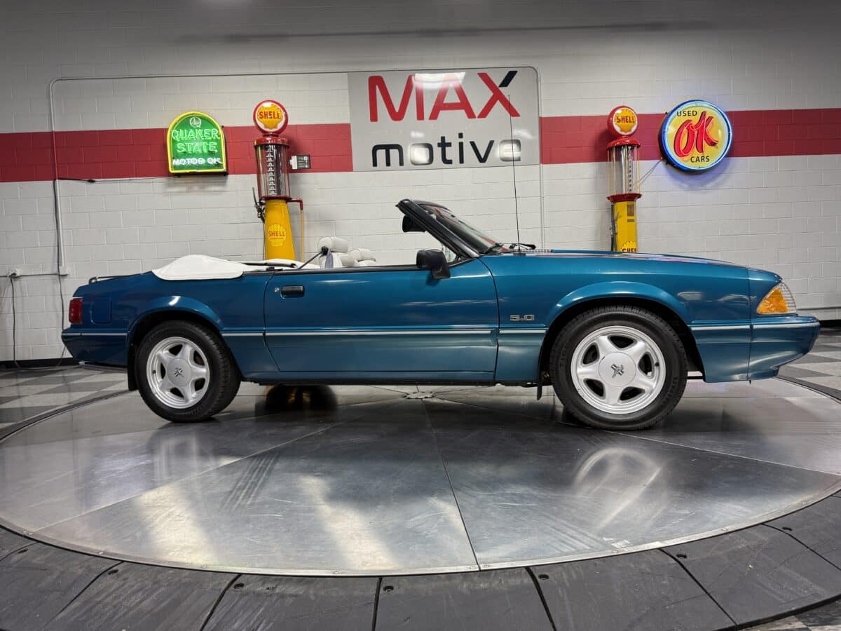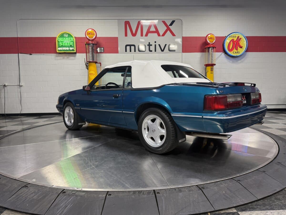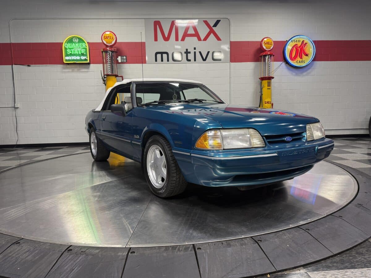 Maxmotive is proud to offer this stunning, low mileage, and very well preserved 1993 Mustang 5.0 LX convertible. This convertible has been owned by the same owner since 1994. The Mustang has been lovingly cared for, and only has 23,000 original miles on the Foxbody. Finished in a stunning Reef Blue exterior paint, beautifully offset by the very clean white interior and white top. The convertible top is functional as shown in the video. The original tonneau cover is included as well. This stunner was also nicely optioned out and loaded from the factory. Some of the dealership installed options include luggage rack, with power lumbar support on both front seats. Inside for driver comfort there are power windows and locks, power mirrors, cruise control, and tape player. This nicely optioned LX also carries the 16” aluminum Pony wheels for an enhanced stance. A lot of the Mustang LX’s were driven back in the day, and not preserved like this one has been. For more pictures and information, please check our website at www.maxmotive.com