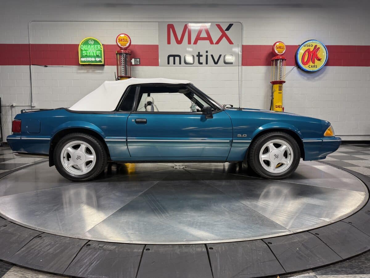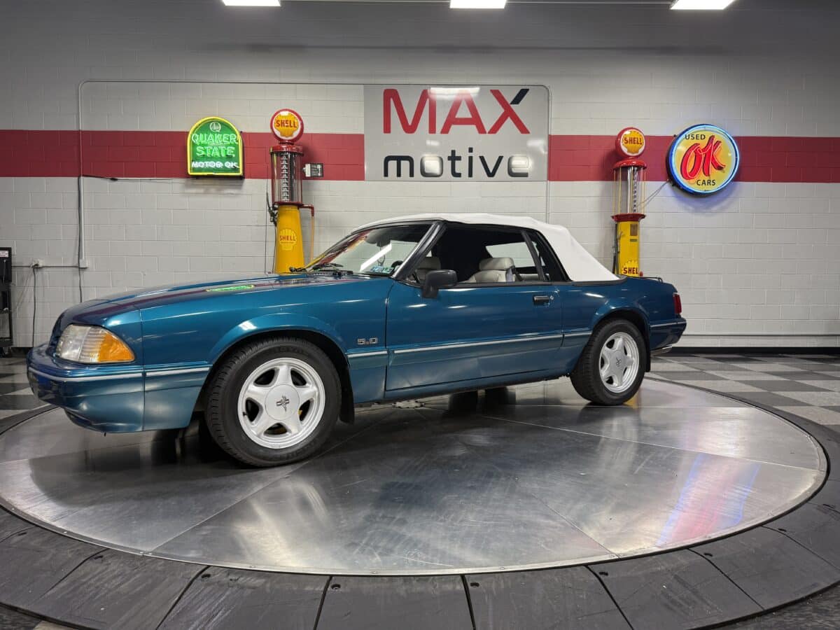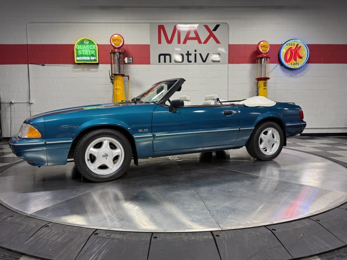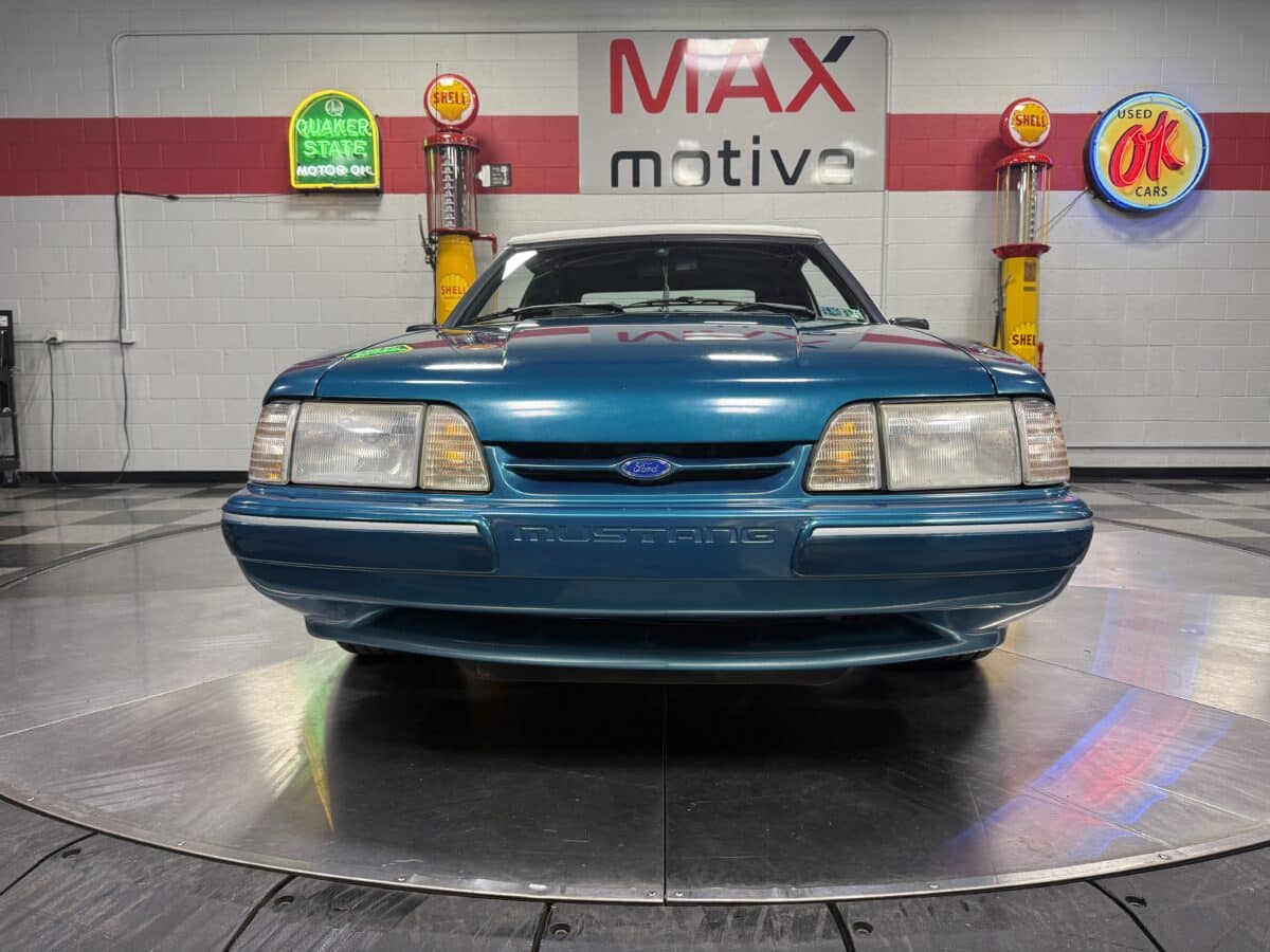 Maxmotive is proud to offer this stunning, low mileage, and very well preserved 1993 Mustang 5.0 LX convertible. This convertible has been owned by the same owner since 1994. The Mustang has been lovingly cared for, and only has 23,000 original miles on the Foxbody. Finished in a stunning Reef Blue exterior paint, beautifully offset by the very clean white interior and white top. The convertible top is functional as shown in the video. The original tonneau cover is included as well. This stunner was also nicely optioned out and loaded from the factory. Some of the dealership installed options include luggage rack, with power lumbar support on both front seats. Inside for driver comfort there are power windows and locks, power mirrors, cruise control, and tape player. This nicely optioned LX also carries the 16” aluminum Pony wheels for an enhanced stance. A lot of the Mustang LX’s were driven back in the day, and not preserved like this one has been. For more pictures and information, please check our website at www.maxmotive.com