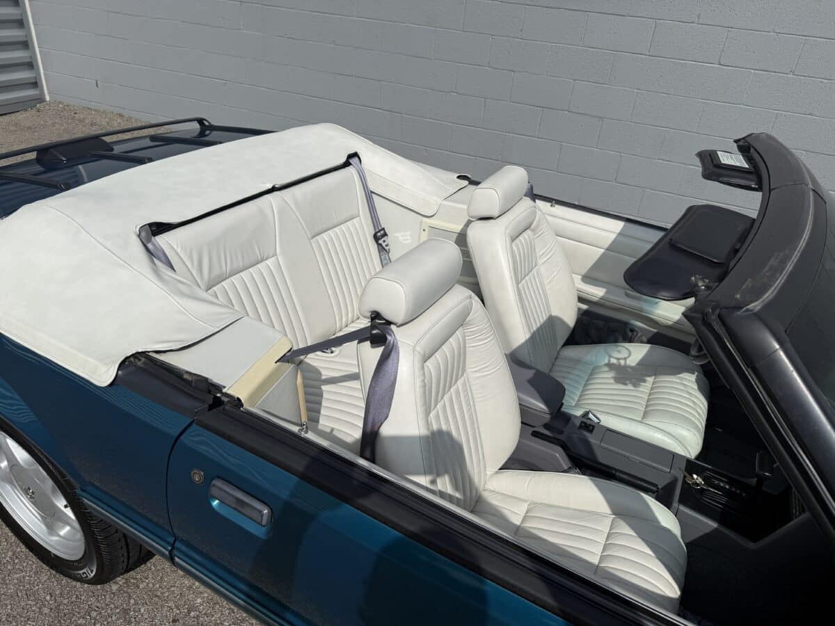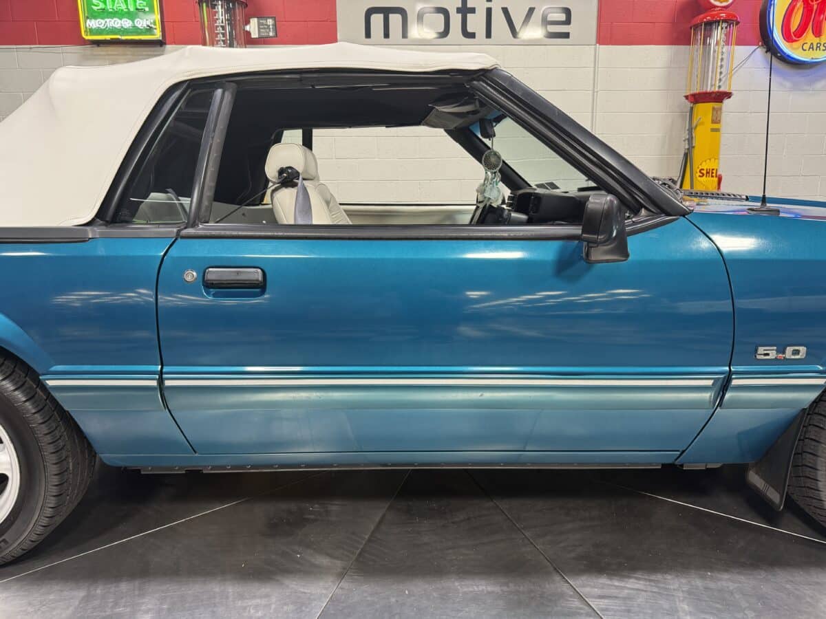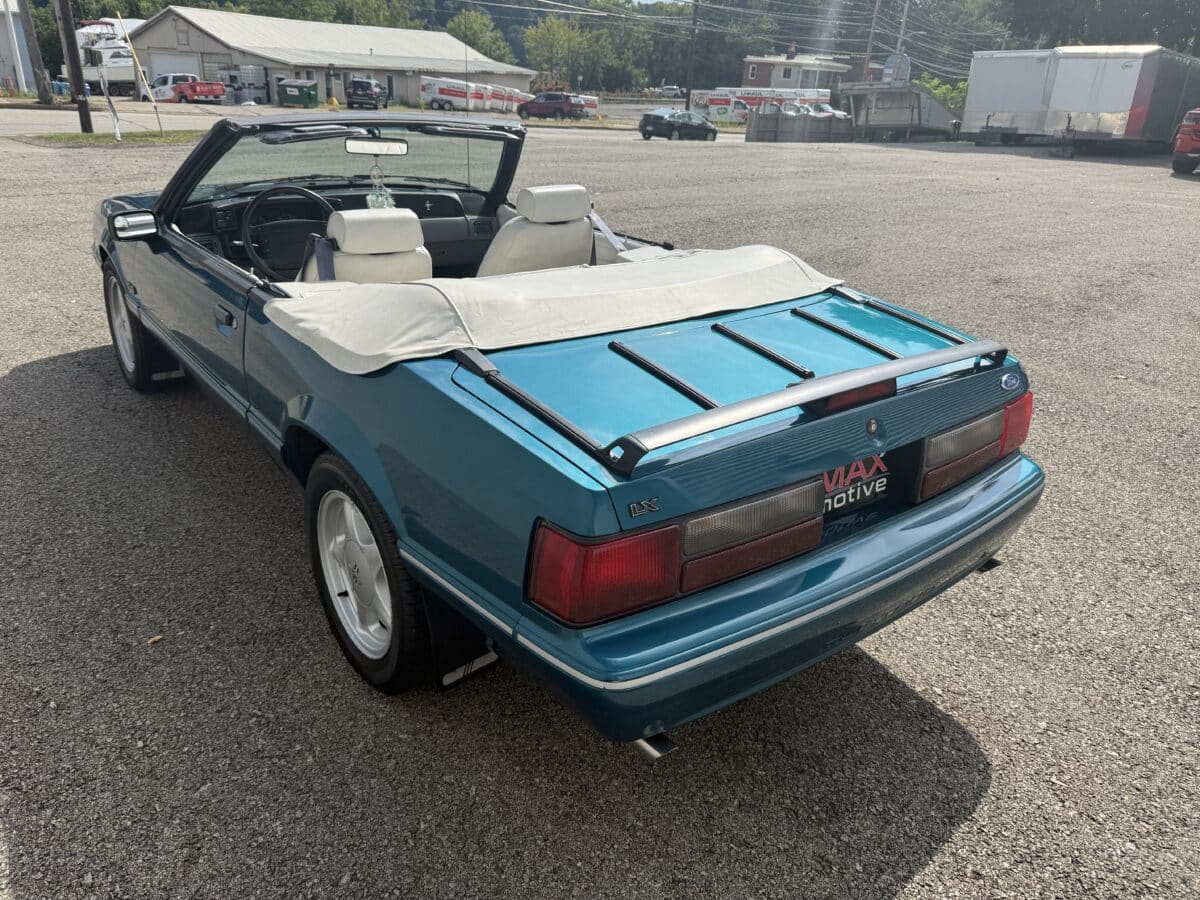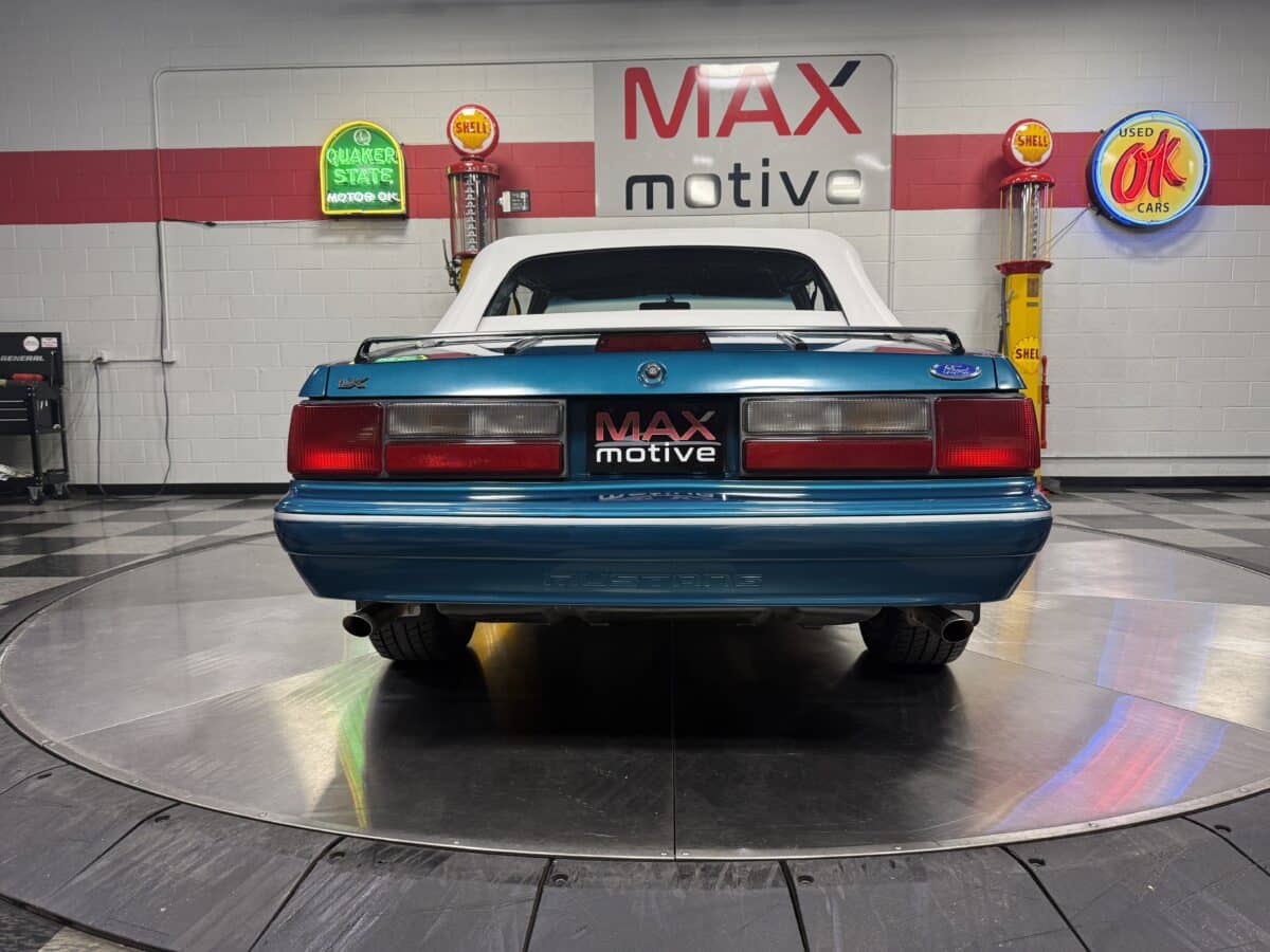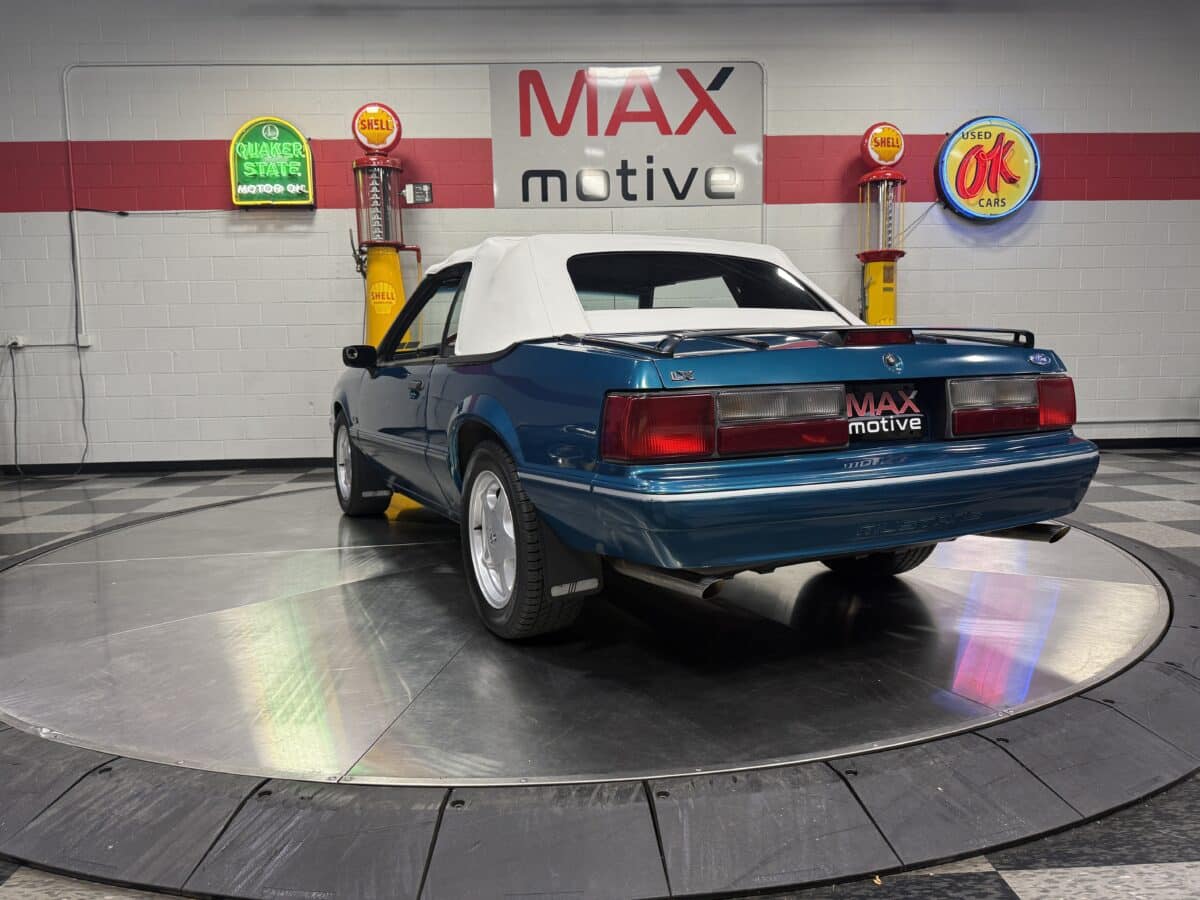 Maxmotive is proud to offer this stunning, low mileage, and very well preserved 1993 Mustang 5.0 LX convertible. This convertible has been owned by the same owner since 1994. The Mustang has been lovingly cared for, and only has 23,000 original miles on the Foxbody. Finished in a stunning Reef Blue exterior paint, beautifully offset by the very clean white interior and white top. The convertible top is functional as shown in the video. The original tonneau cover is included as well. This stunner was also nicely optioned out and loaded from the factory. Some of the dealership installed options include luggage rack, with power lumbar support on both front seats. Inside for driver comfort there are power windows and locks, power mirrors, cruise control, and tape player. This nicely optioned LX also carries the 16” aluminum Pony wheels for an enhanced stance. A lot of the Mustang LX’s were driven back in the day, and not preserved like this one has been. For more pictures and information, please check our website at www.maxmotive.com