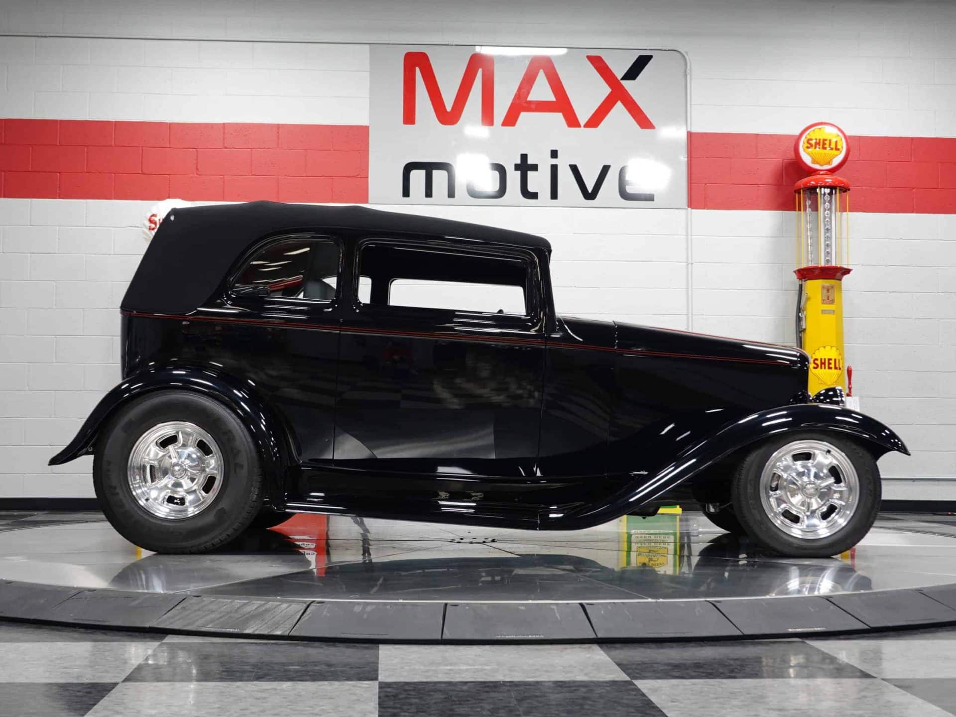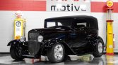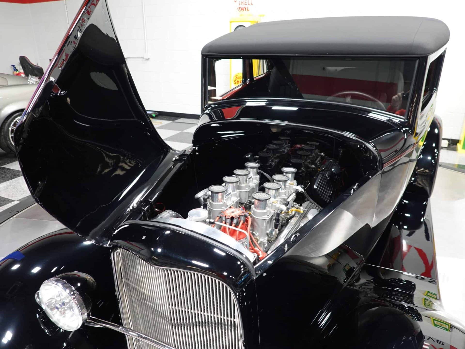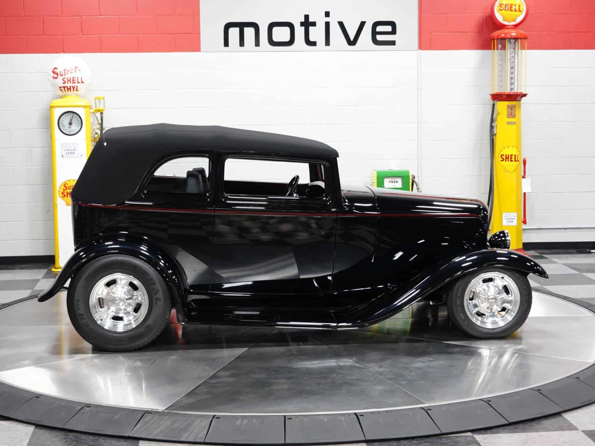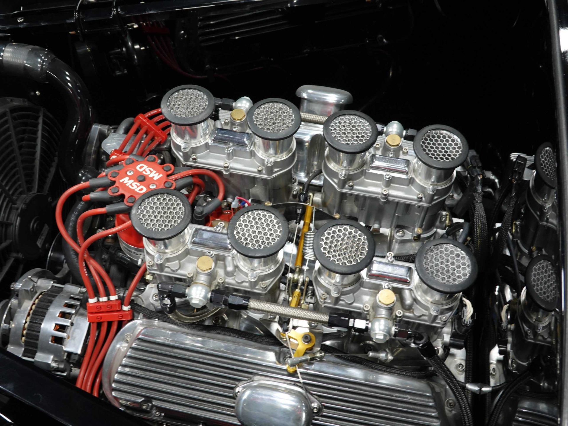 “This was one of the last cars Boyd had his mind and hands on before his passing. And just like all his projects, this ‘32 utilizes only the best products, and greatest depth of skill available.” - Roger C. Johnson. This is the car that became known as “The Master’s Last Hod Rod” after the untimely passing of master builder Boyd Coddington. Boyd was indeed a master, building cars for star personalities and launching the careers of the likes of Chip Foose, Jesse James, and Larry Erickson, Chief Designer of the Mustang and Thunderbird at Ford Motor Company. You would expect the product of Boyd’s many successful years of design and building experience to be something special - and it is. Boyd personally took the car to 90% complete status. Then, as a tribute to the legend, some of the greatest names in the custom car industry brought it to completion. The body was recreated by Coddington’s Shop of Wonders with help from Marcel's Custom Metal Shaping, creating a longer hood and side panels, and matching stretched fenders. The finish is a simple but effective application of rich black exterior paint by Bernet Carlsen. The crowning touch is the one-of-a-kind steel lift-off top. Ample power is supplied by none other than Roush Racing - a 358 cubic inch fuel injected Ford small block with a complete roller valvetrain and custom fabbed headers. The exhaust exits in a marvelously executed single outlet that fits ingeniously beneath the chromed independent rear suspension.…
