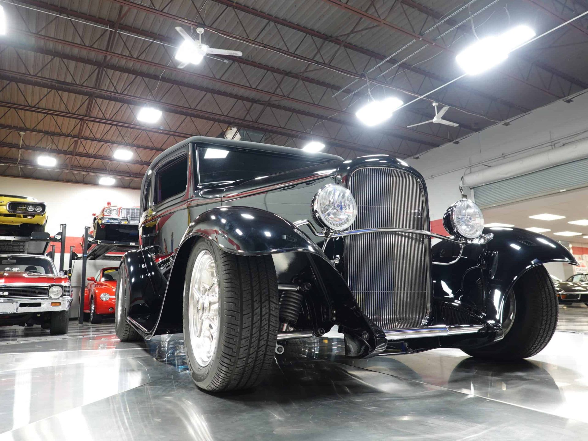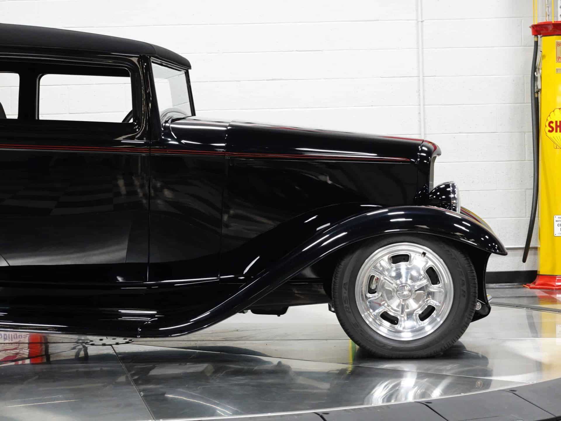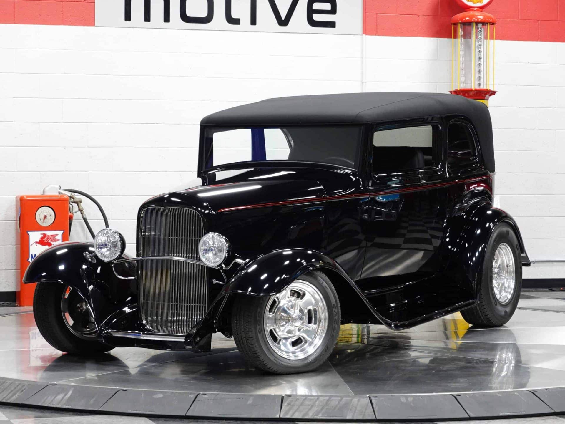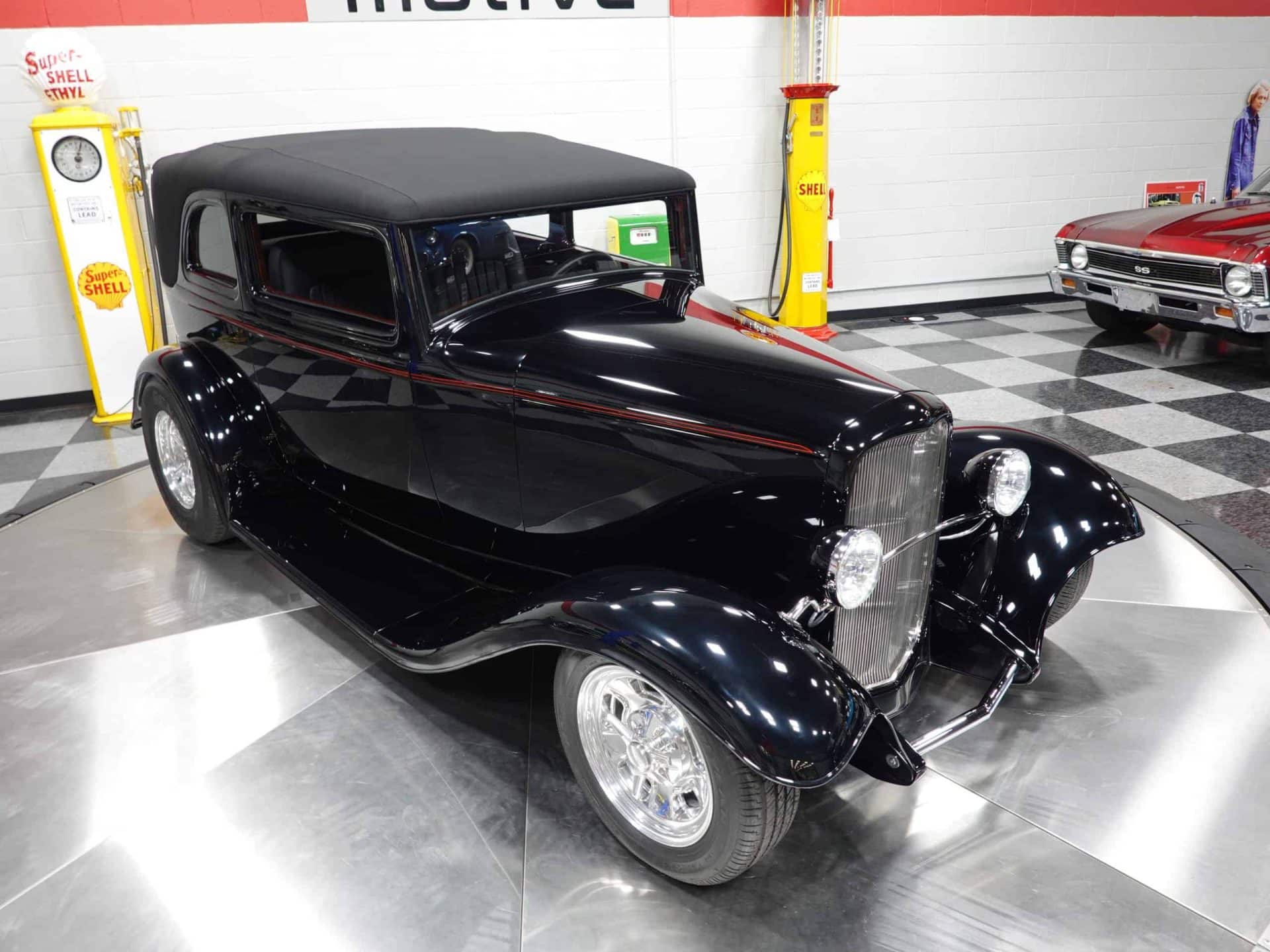 “This was one of the last cars Boyd had his mind and hands on before his passing. And just like all his projects, this ‘32 utilizes only the best products, and greatest depth of skill available.” - Roger C. Johnson. This is the car that became known as “The Master’s Last Hod Rod” after the untimely passing of master builder Boyd Coddington. Boyd was indeed a master, building cars for star personalities and launching the careers of the likes of Chip Foose, Jesse James, and Larry Erickson, Chief Designer of the Mustang and Thunderbird at Ford Motor Company. You would expect the product of Boyd’s many successful years of design and building experience to be something special - and it is. Boyd personally took the car to 90% complete status. Then, as a tribute to the legend, some of the greatest names in the custom car industry brought it to completion. The body was recreated by Coddington’s Shop of Wonders with help from Marcel's Custom Metal Shaping, creating a longer hood and side panels, and matching stretched fenders. The finish is a simple but effective application of rich black exterior paint by Bernet Carlsen. The crowning touch is the one-of-a-kind steel lift-off top. Ample power is supplied by none other than Roush Racing - a 358 cubic inch fuel injected Ford small block with a complete roller valvetrain and custom fabbed headers. The exhaust exits in a marvelously executed single outlet that fits ingeniously beneath the chromed independent rear suspension.…