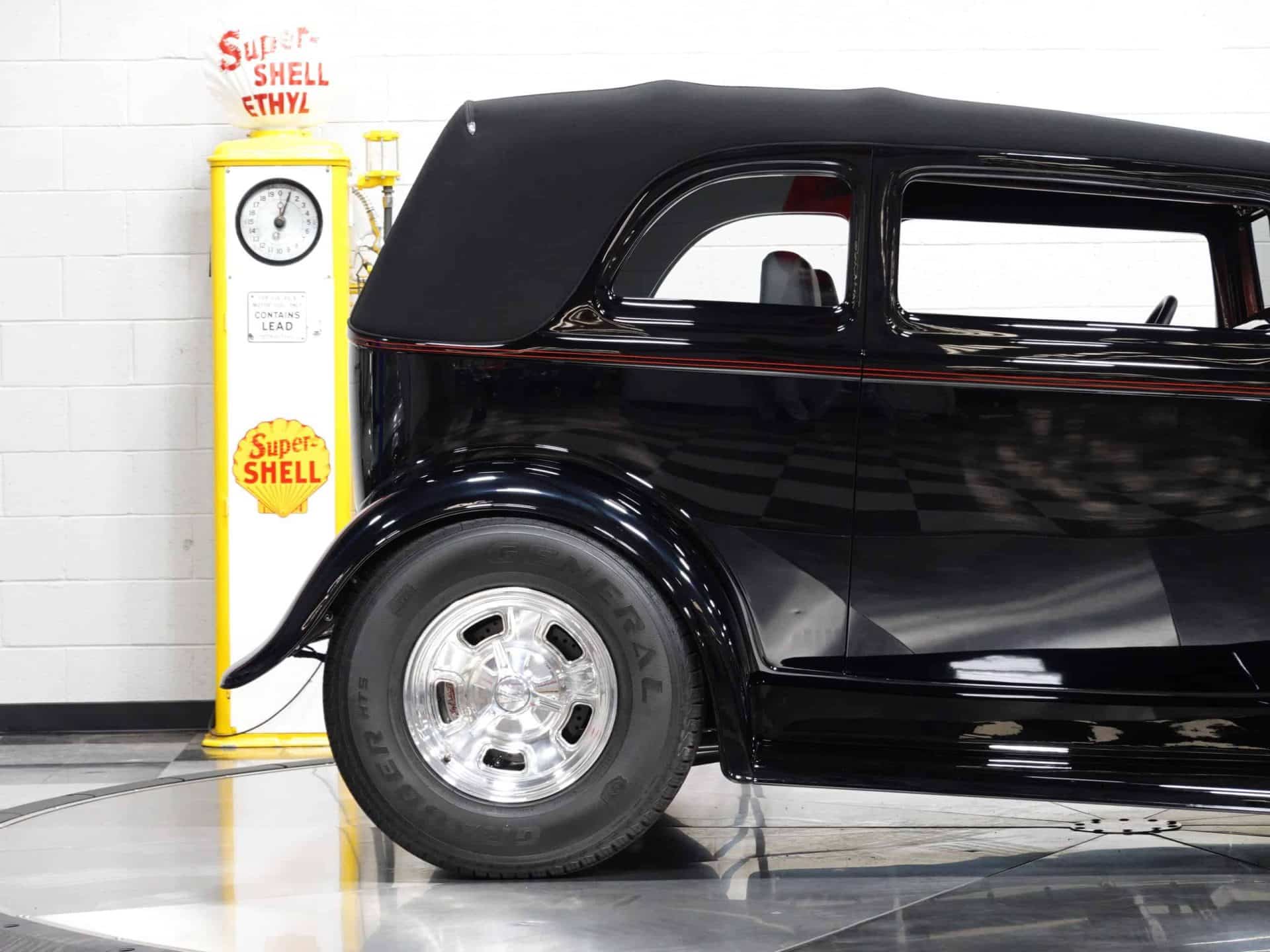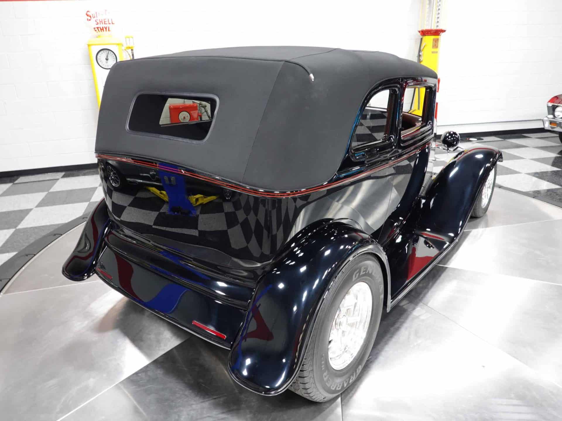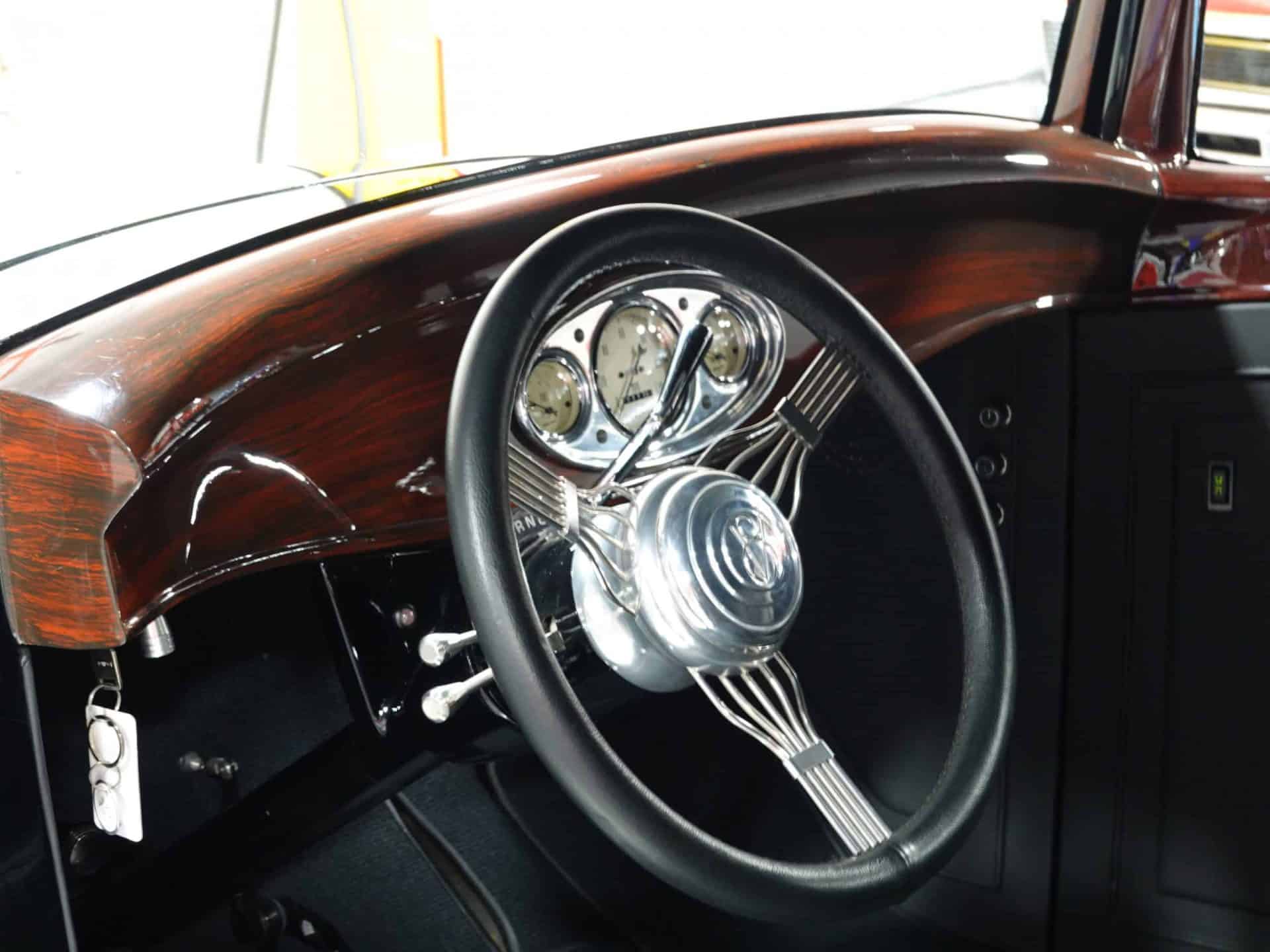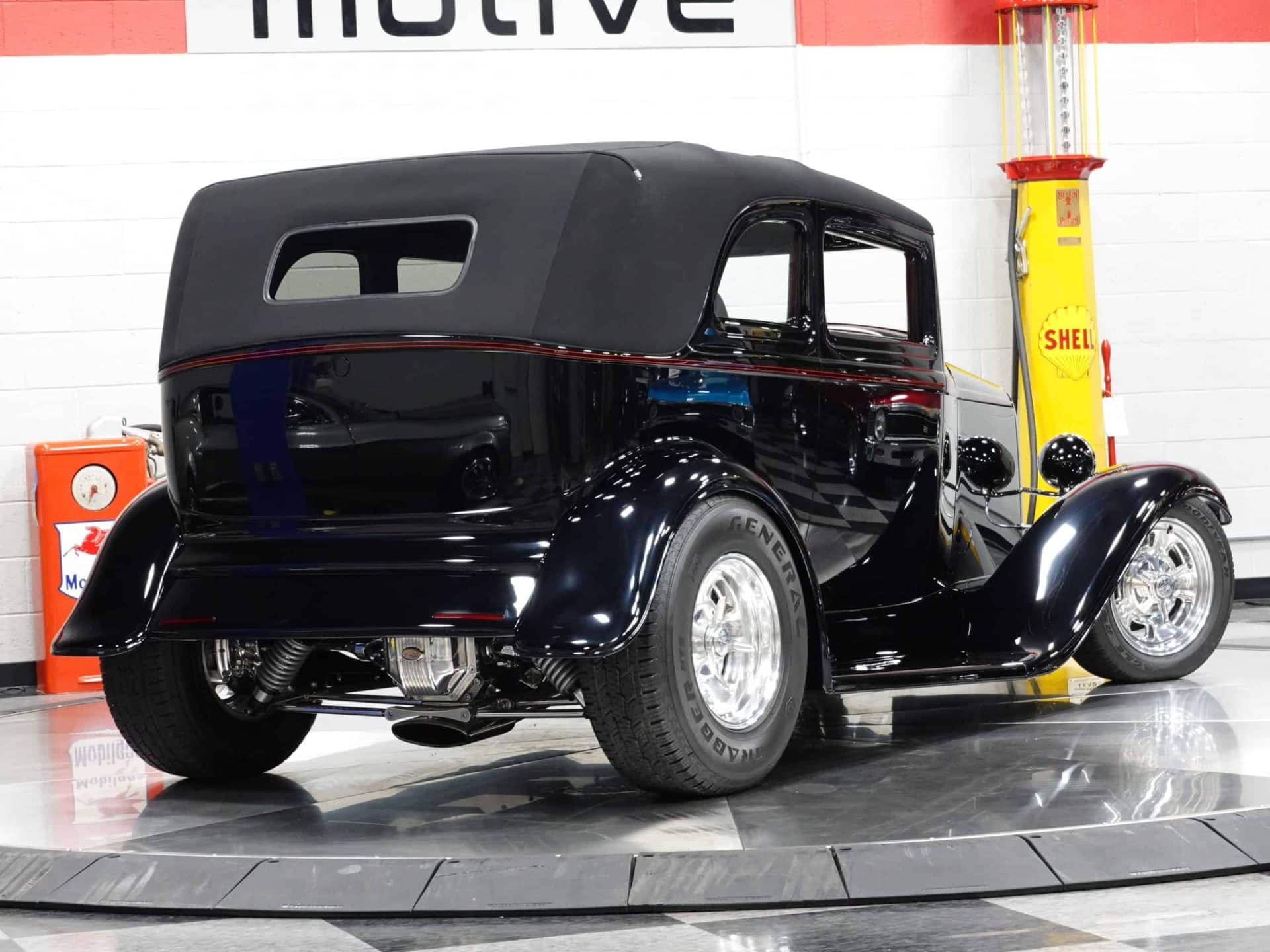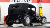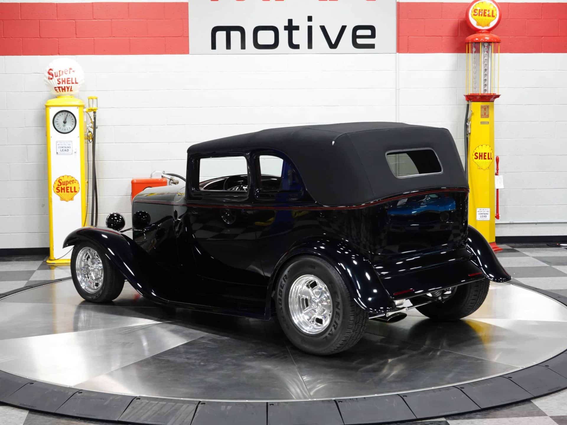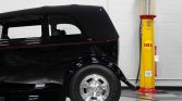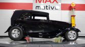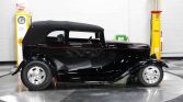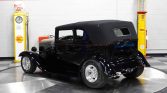 “This was one of the last cars Boyd had his mind and hands on before his passing. And just like all his projects, this ‘32 utilizes only the best products, and greatest depth of skill available.” – Roger C. Johnson. This is the car that became known as “The Master’s Last Hod Rod” after the untimely passing of master builder Boyd Coddington. Boyd was indeed a master, building cars for star personalities and launching the careers of the likes of Chip Foose, Jesse James, and Larry Erickson, Chief Designer of the Mustang and Thunderbird at Ford Motor Company. You would expect the product of Boyd’s many successful years of design and building experience to be something special – and it is. Boyd personally took the car to 90% complete status. Then, as a tribute to the legend, some of the greatest names in the custom car industry brought it to completion. The body was recreated by Coddington’s Shop of Wonders with help from Marcel’s Custom Metal Shaping, creating a longer hood and side panels, and matching stretched fenders. The finish is a simple but effective application of rich black exterior paint by Bernet Carlsen. The crowning touch is the one-of-a-kind steel lift-off top. Ample power is supplied by none other than Roush Racing – a 358 cubic inch fuel injected Ford small block with a complete roller valvetrain and custom fabbed headers. The exhaust exits in a marvelously executed single outlet that fits ingeniously beneath the chromed independent rear suspension. Ron Mangus worked his magic on the interior, which presents the luxurious high-end feel of the world’s greatest automobiles. Black high-grade leather covers the power bucket seats, and the look, feel, and that wonderful aroma confirm that only the very best made it into this build. Wool carpeting, deep, dark wood trim, and custom gauges highlight a truly decadent cabin. Superior engineering was always a Boyd trademark, and this build is a showcase. The car has fully independent suspension with coil overs at all four corners. Also all the way around are power disc brakes. Driver control is also aided by power rack & pinion steering. The closer and longer you look, the more amazing details you discover – as it is with any true masterpiece. The essence of Boyd Coddington permeates this one-of-a-kind creation. It’s a magnum opus of a beloved and respected leader, innovator, teacher, and craftsman whose work has been carefully preserved here. The odometer currently shows less than one mile. A 1932 Ford B400 Custom Convertible, verified in the Official Boyd Coddington American Registry with a Certificate of Authenticity.