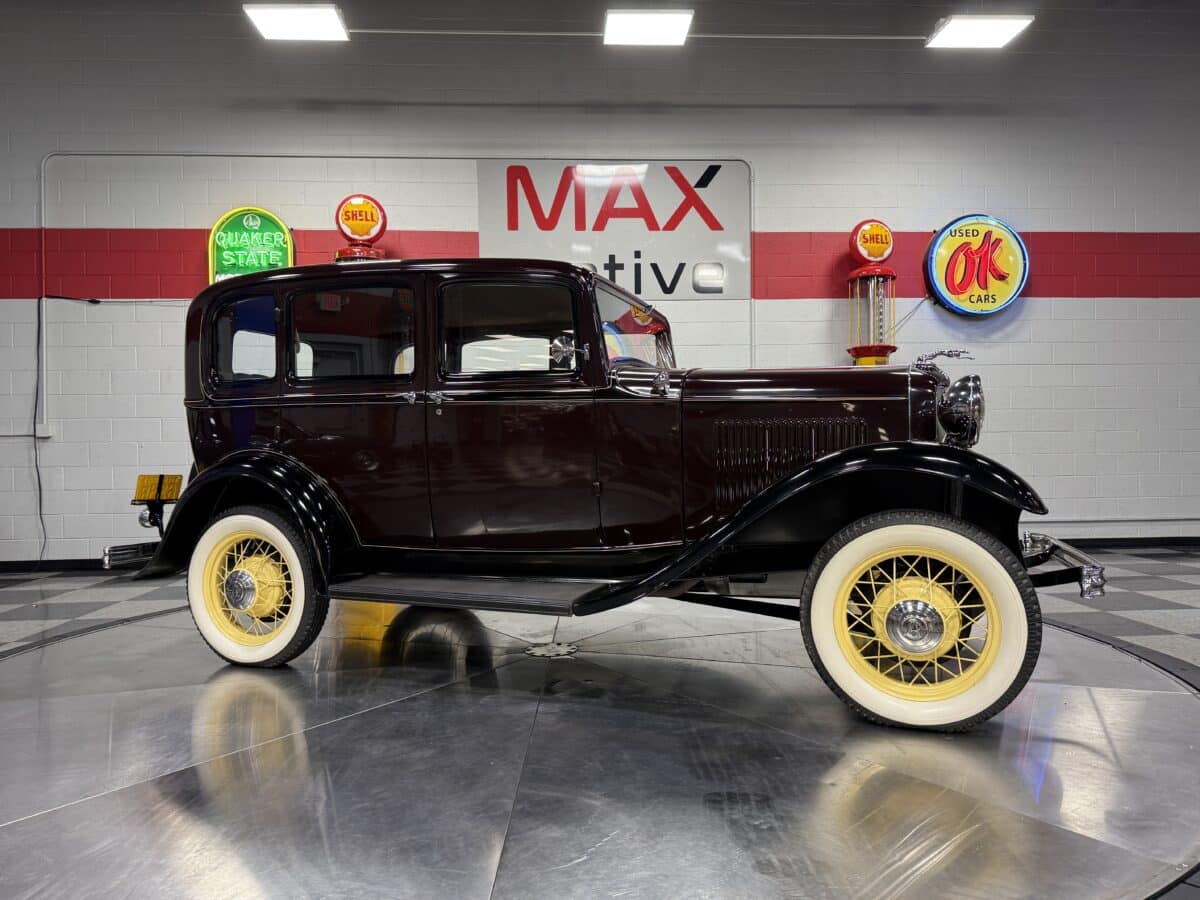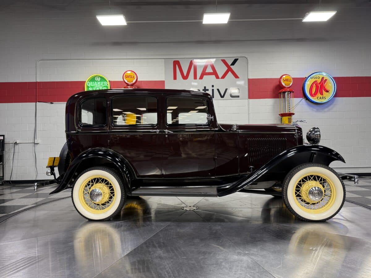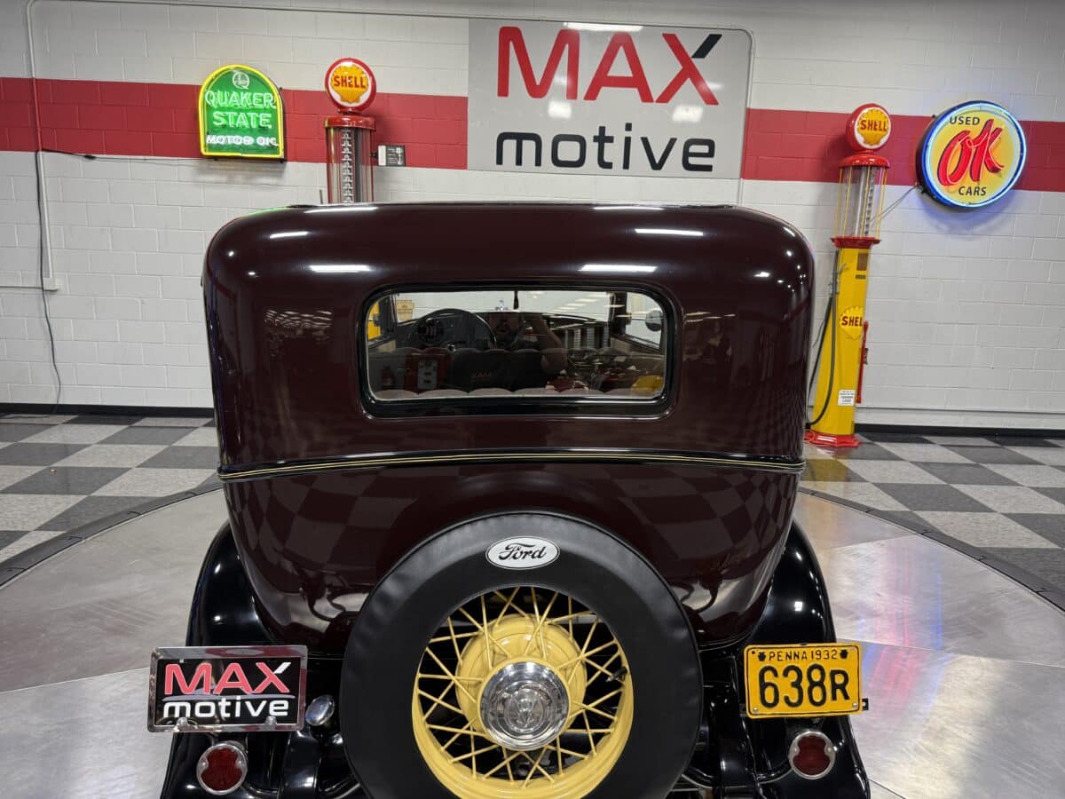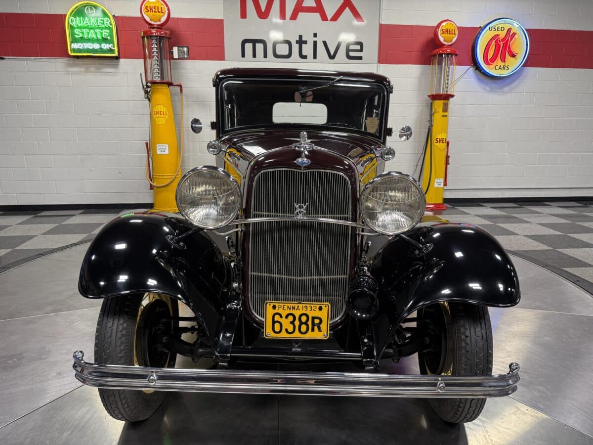 Other firsts included a synchronizing transmission and dual water pumps, ensuring smoother operation and better cooling. This example is finished in Ford Medium Maroon with black fenders, one of the eight authentic body colors available in 1932.