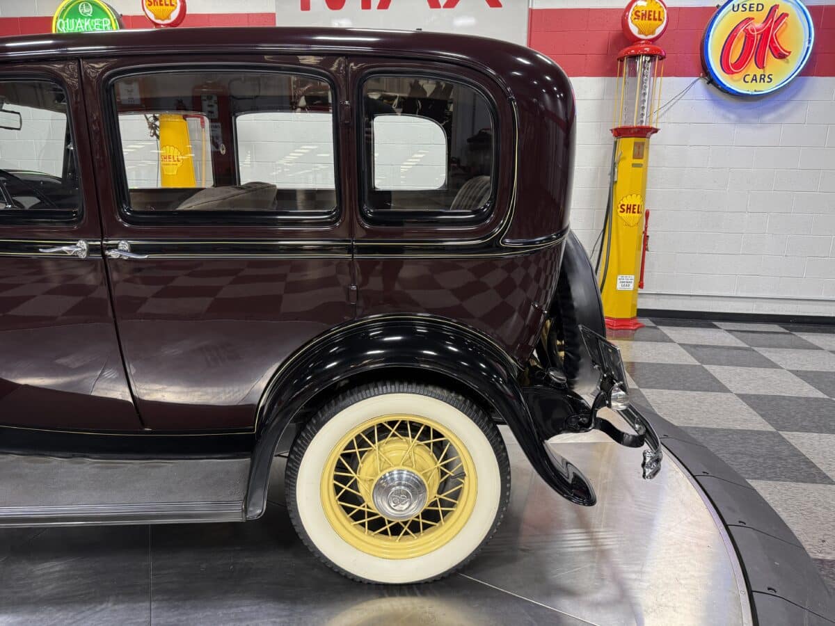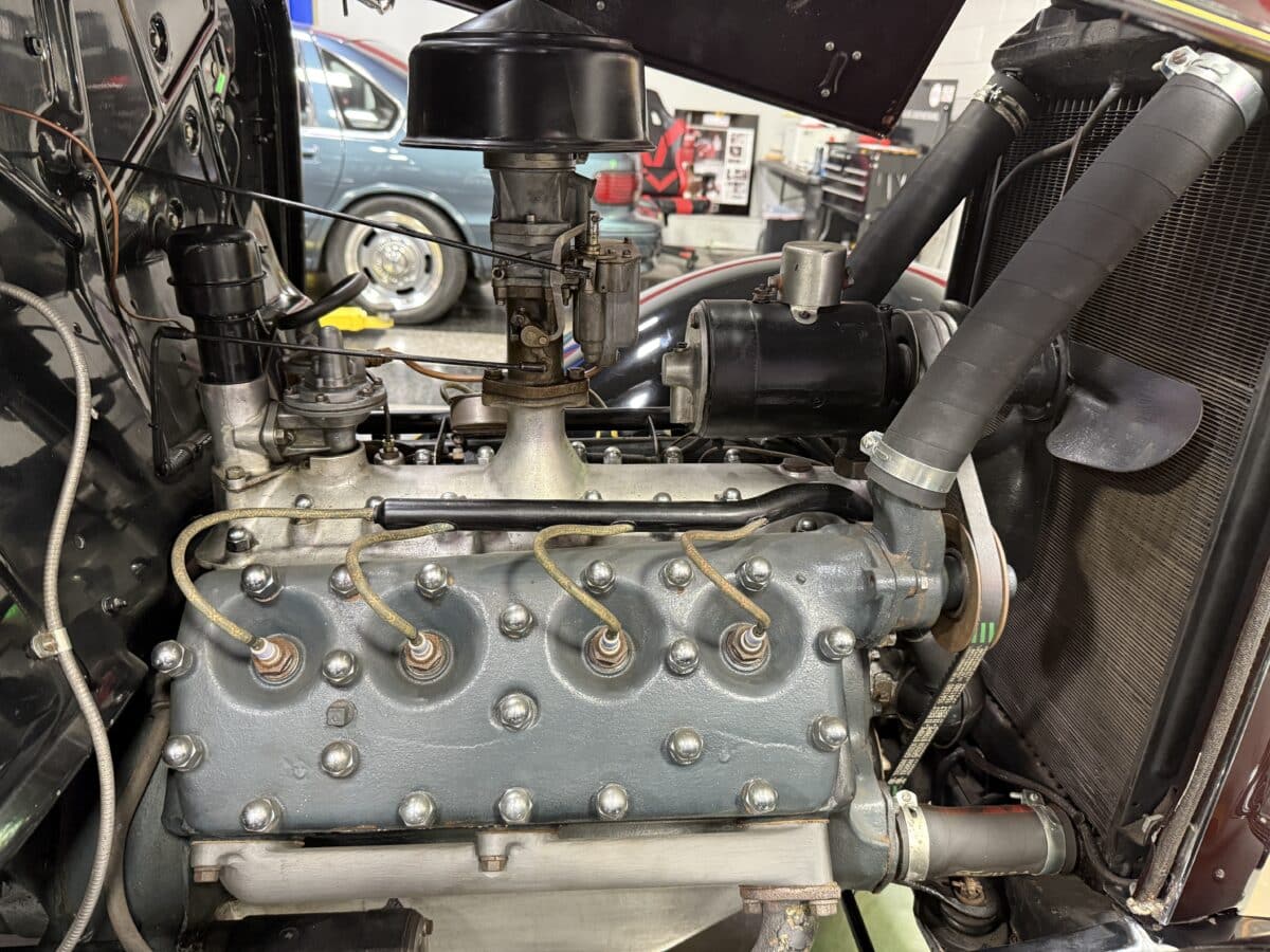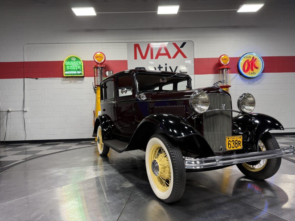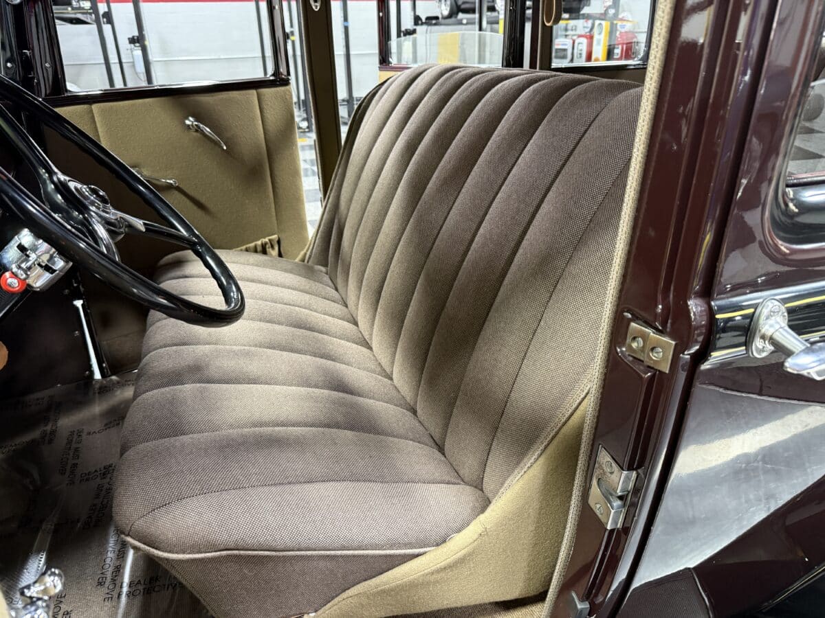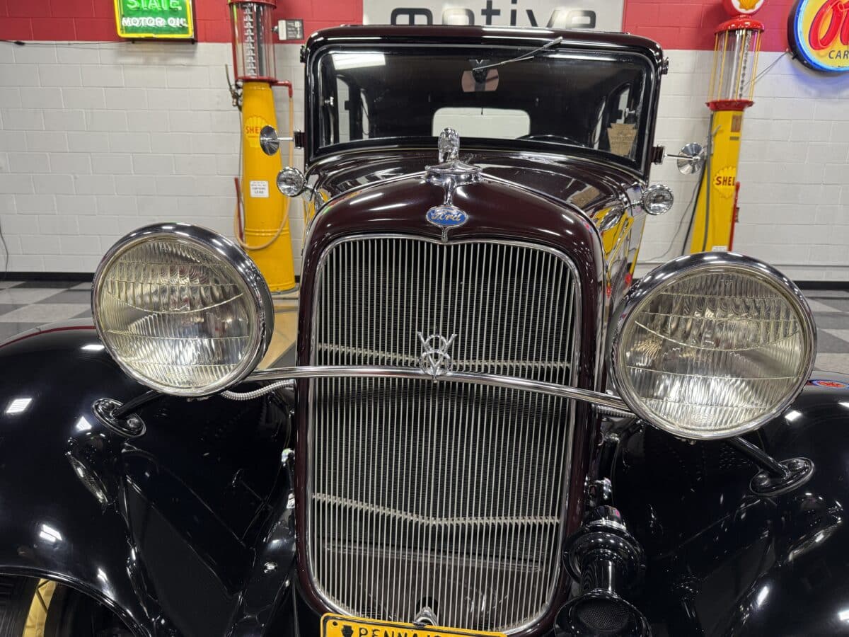 Other firsts included a synchronizing transmission and dual water pumps, ensuring smoother operation and better cooling. This example is finished in Ford Medium Maroon with black fenders, one of the eight authentic body colors available in 1932.