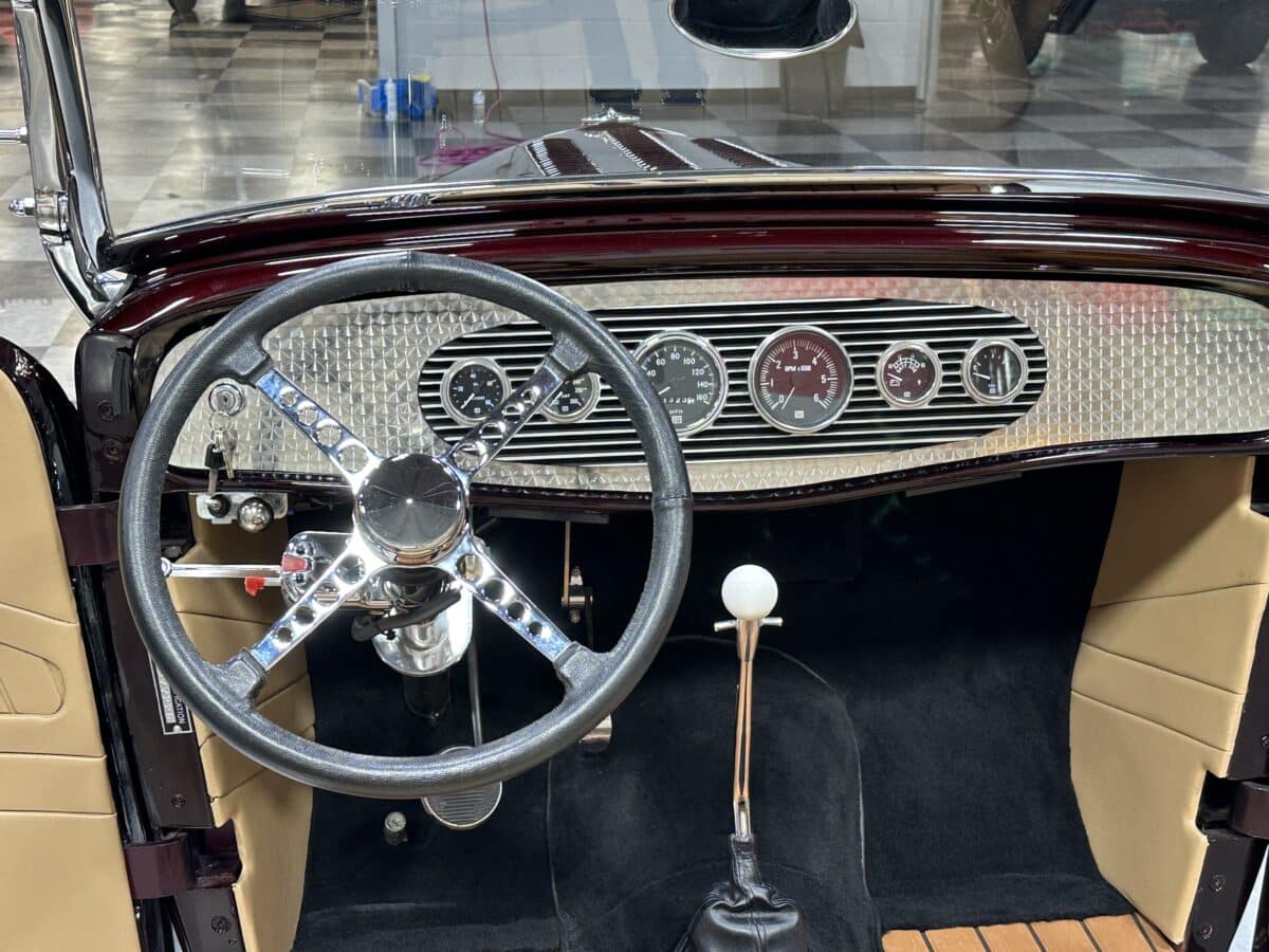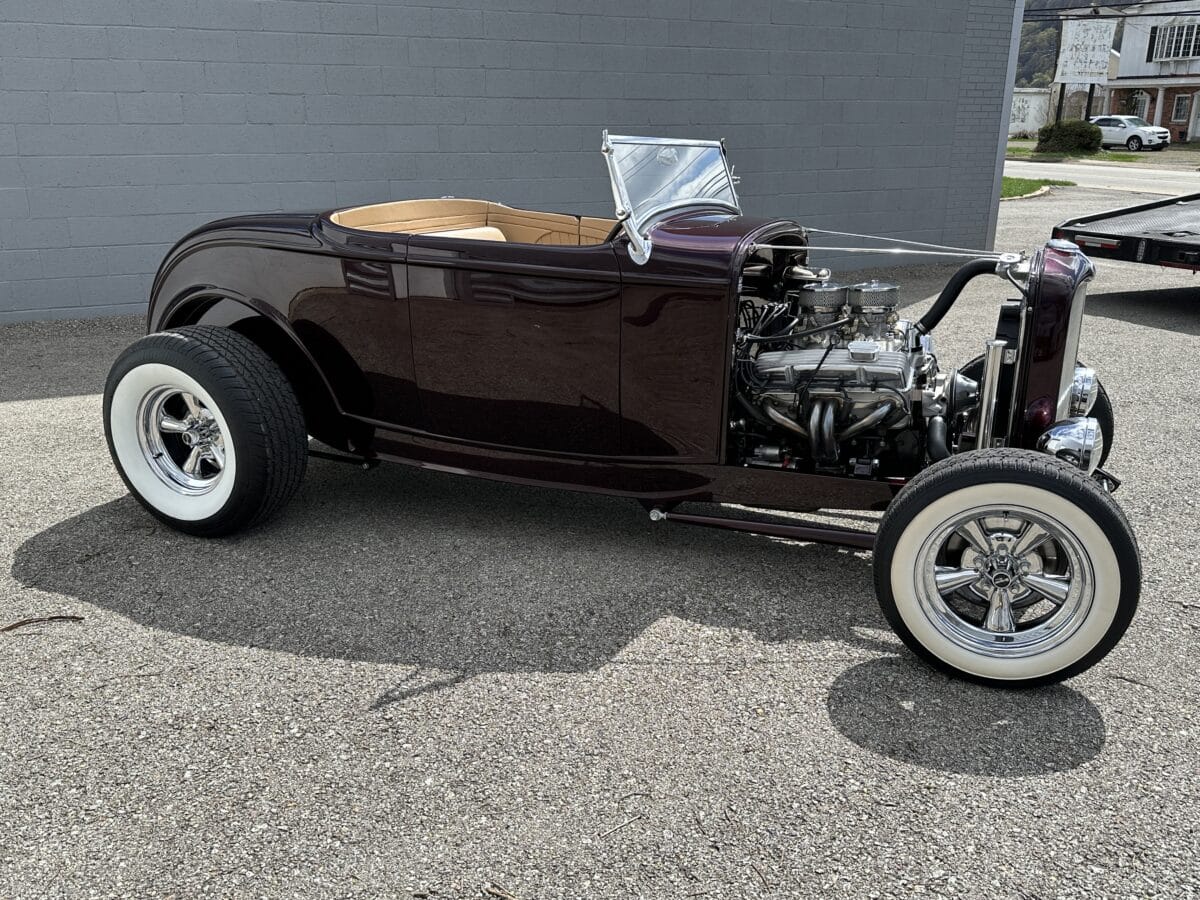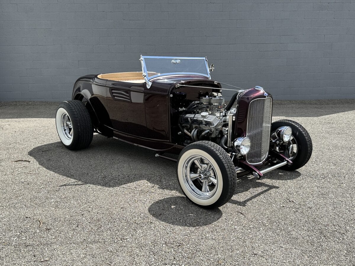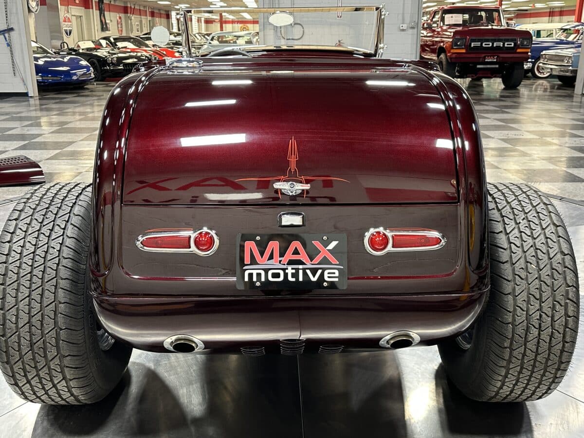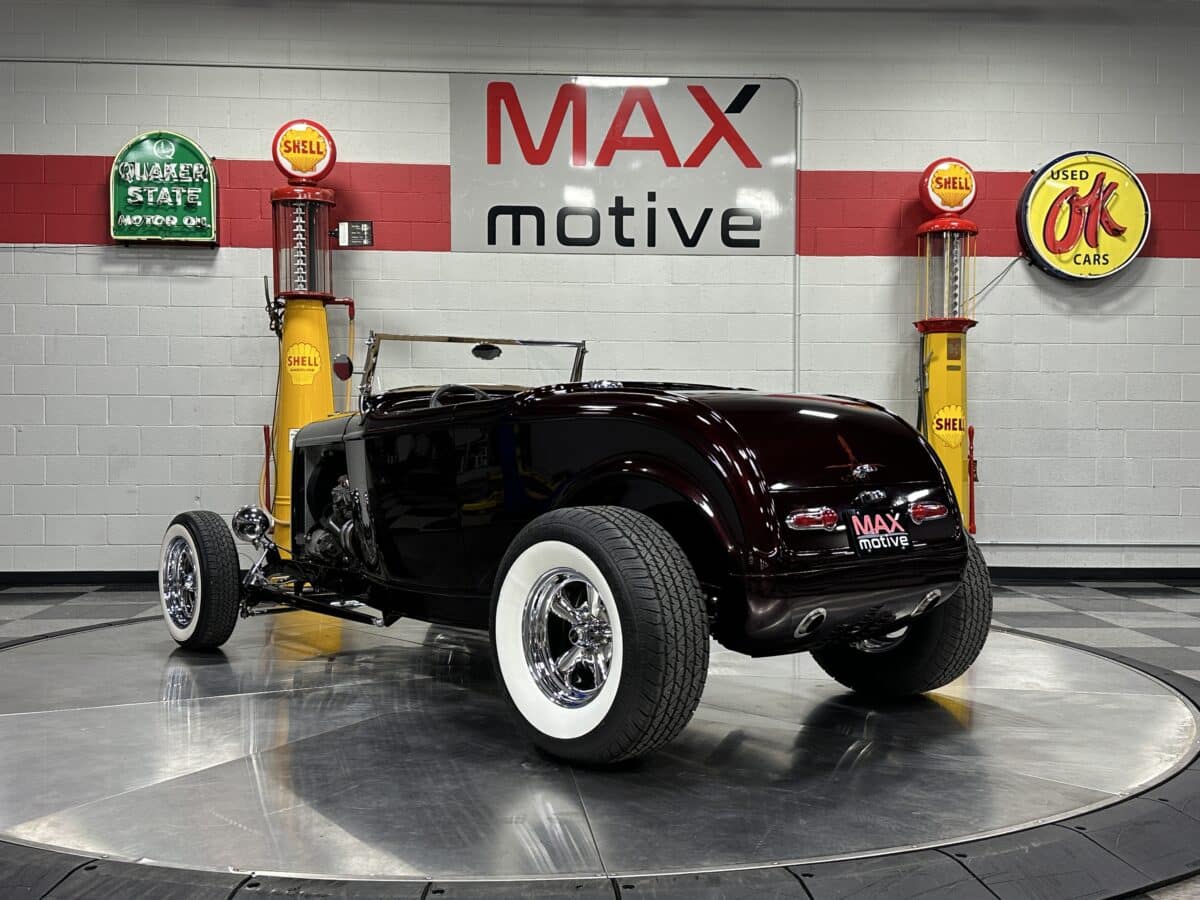 It doesn’t get more classic in the classic car/hot rod world than a 1932 Ford Model A Roadster, and MaxMotive has a top tier example here for you. Completed in 2022 by the previous owner, this hot rod has seen just 1308 miles. The classicness continues with a 350ci small block Chevrolet V8 engine pumping out an estimated 450 horsepower through a Turbo 350 transmission to a 9-inch rear with 3.50 gears. On top are twin 500cfm Edelbrock carburetors The foundation is a body and chassis by the legendary Downs Manufacturing, with a straight axle front suspension, four-link rear suspension, and 4-wheel disc brakes. The body sports a hand-crafted all-aluminum hood with louvers. Harley Davidson Typhoon Maroon makes a nice contrast to the beige vinyl interior. Here you’ll find a Stewart-Warner tach and gauges and a quick release steering wheel for easy entry and exit. A new aftermarket wiring harness handles all the electricals and there’s a 15 gallon aluminum fuel tank with an electric fuel pump. Details such as stainless headers and exhaust and a fully upholstered trunk are further hints to the quality of the build, riding on staggered Coker wide whites on chrome 5-spoke Supreme Wheels. Honoring time-honored hot rod heritage with modern technology in the mix, this 1932 Ford Model A Roadster was recently completed and is ready to show and go. Please see the photos, videos, and details at maxmotive.com.