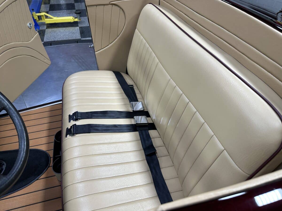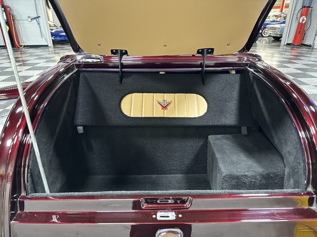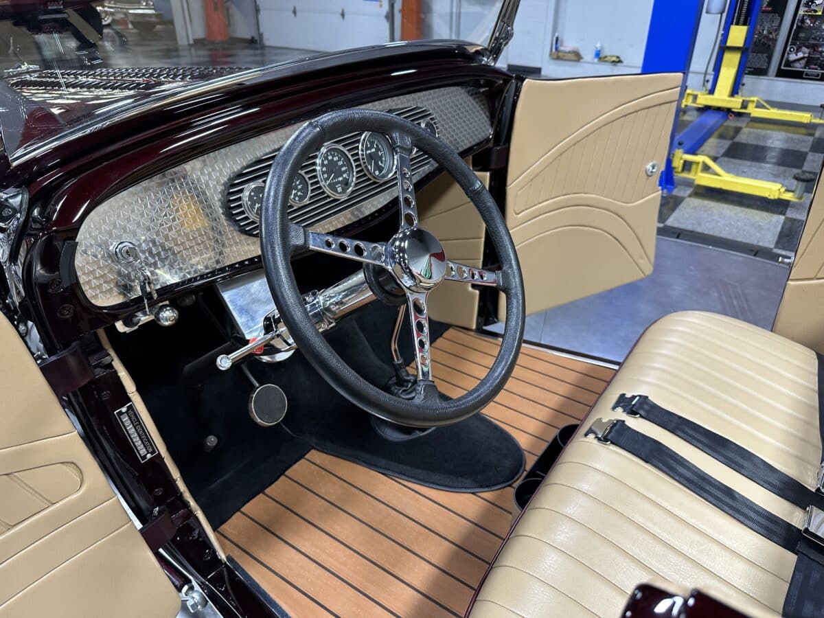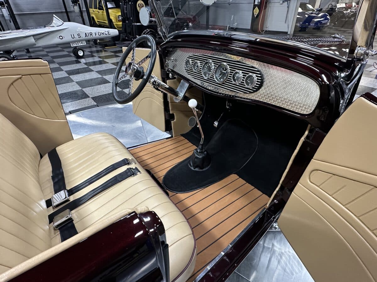 It doesn’t get more classic in the classic car/hot rod world than a 1932 Ford Model A Roadster, and MaxMotive has a top tier example here for you. Completed in 2022 by the previous owner, this hot rod has seen just 1308 miles. The classicness continues with a 350ci small block Chevrolet V8 engine pumping out an estimated 450 horsepower through a Turbo 350 transmission to a 9-inch rear with 3.50 gears. On top are twin 500cfm Edelbrock carburetors The foundation is a body and chassis by the legendary Downs Manufacturing, with a straight axle front suspension, four-link rear suspension, and 4-wheel disc brakes. The body sports a hand-crafted all-aluminum hood with louvers. Harley Davidson Typhoon Maroon makes a nice contrast to the beige vinyl interior. Here you’ll find a Stewart-Warner tach and gauges and a quick release steering wheel for easy entry and exit. A new aftermarket wiring harness handles all the electricals and there’s a 15 gallon aluminum fuel tank with an electric fuel pump. Details such as stainless headers and exhaust and a fully upholstered trunk are further hints to the quality of the build, riding on staggered Coker wide whites on chrome 5-spoke Supreme Wheels. Honoring time-honored hot rod heritage with modern technology in the mix, this 1932 Ford Model A Roadster was recently completed and is ready to show and go. Please see the photos, videos, and details at maxmotive.com.