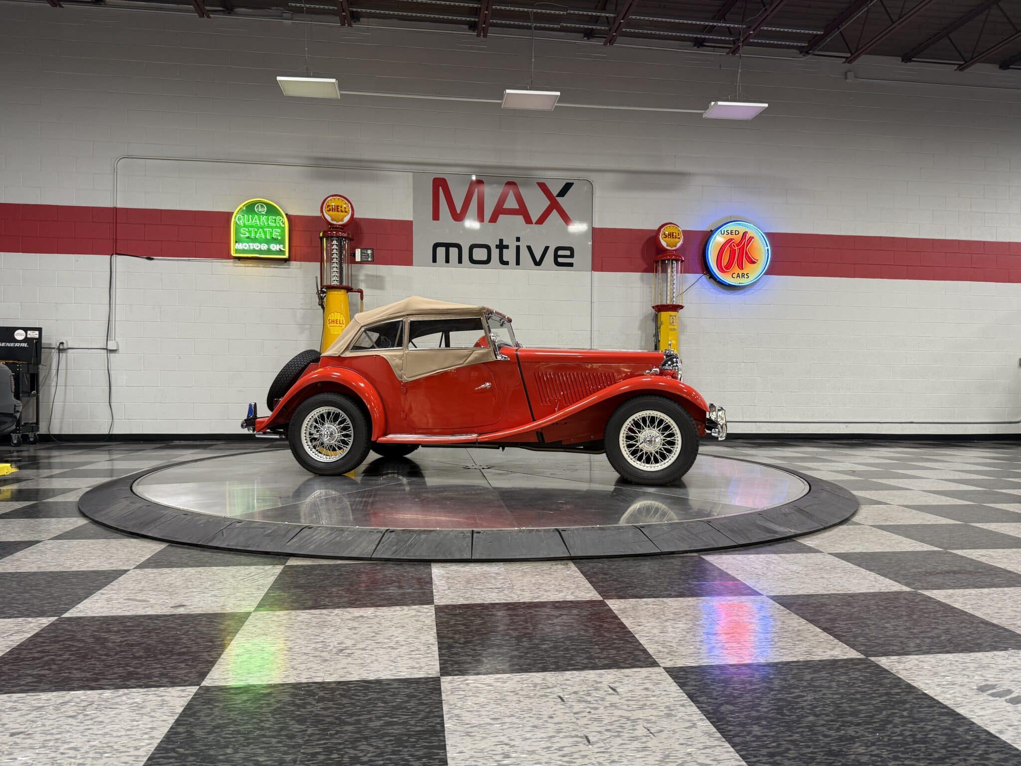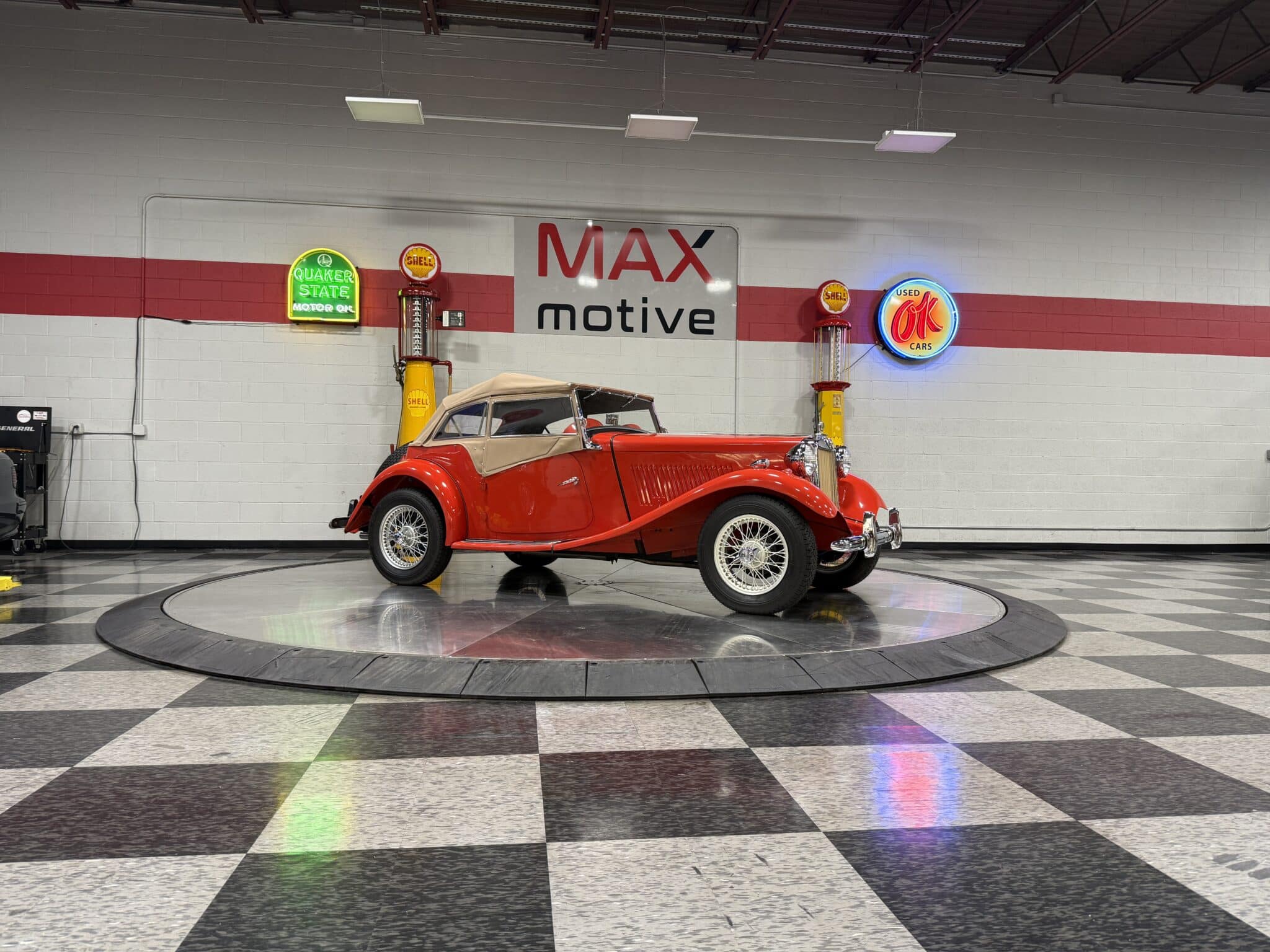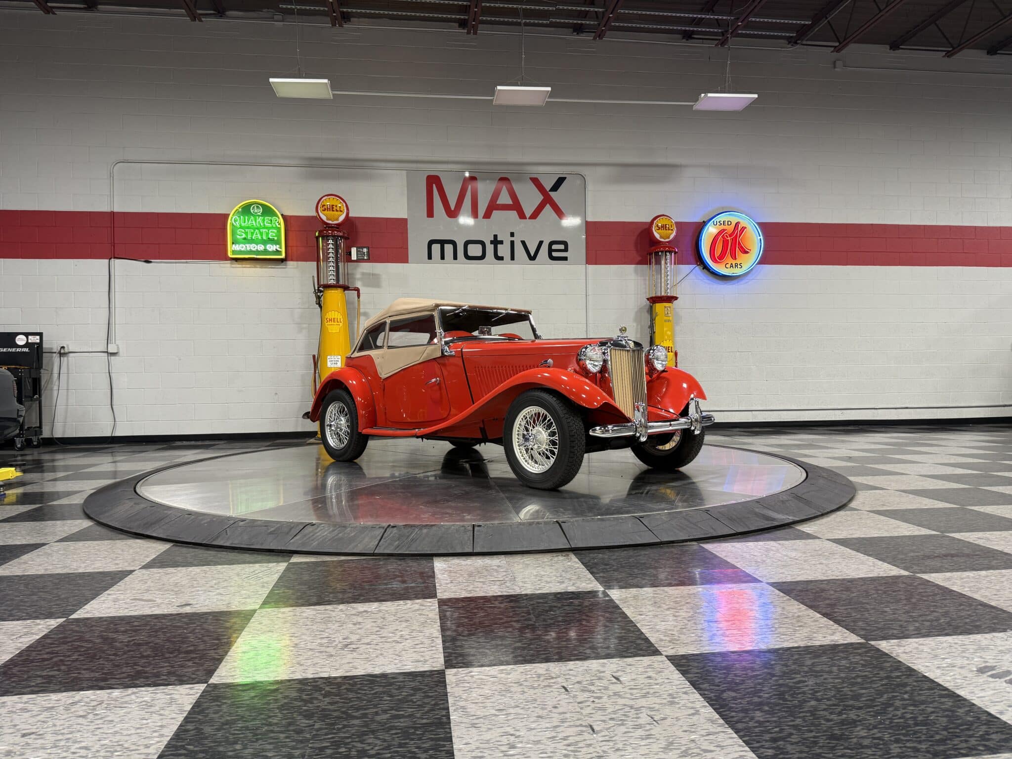Beautifully presented and authentically detailed, this 1951 MG TD Roadster captures the classic charm and spirited driving character that made MG a postwar sports car icon. Finished in a rich, high-gloss red paint with a tan canvas top and matching side curtains — all in excellent condition — this TD is a fine example of British motoring heritage, built at Abingdon-on-Thames for export to the United States.