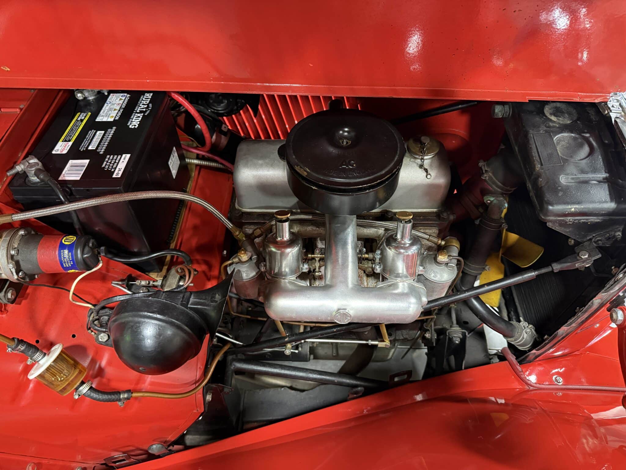 Under the bonnet, the original-style 1250cc XPAG inline-four breathes through its correct twin SU H2 carburetors, delivering crisp throttle response through a 4-speed manual gearbox. The car rides on its traditional 15-inch wire wheels with chrome hubcaps and period-correct Dunlop tires, offering the delightful road feel and nimble handling that defined MG’s golden era.