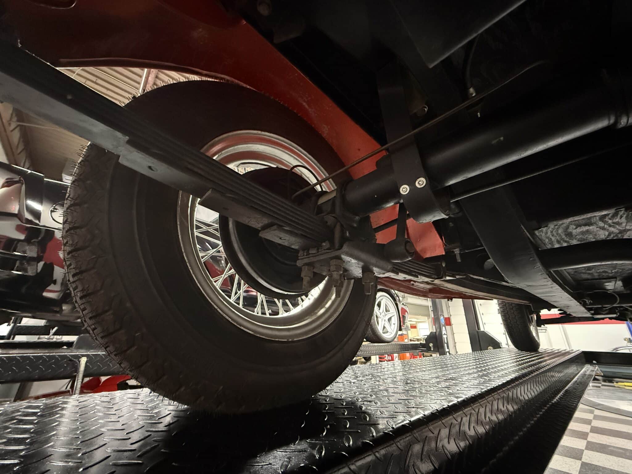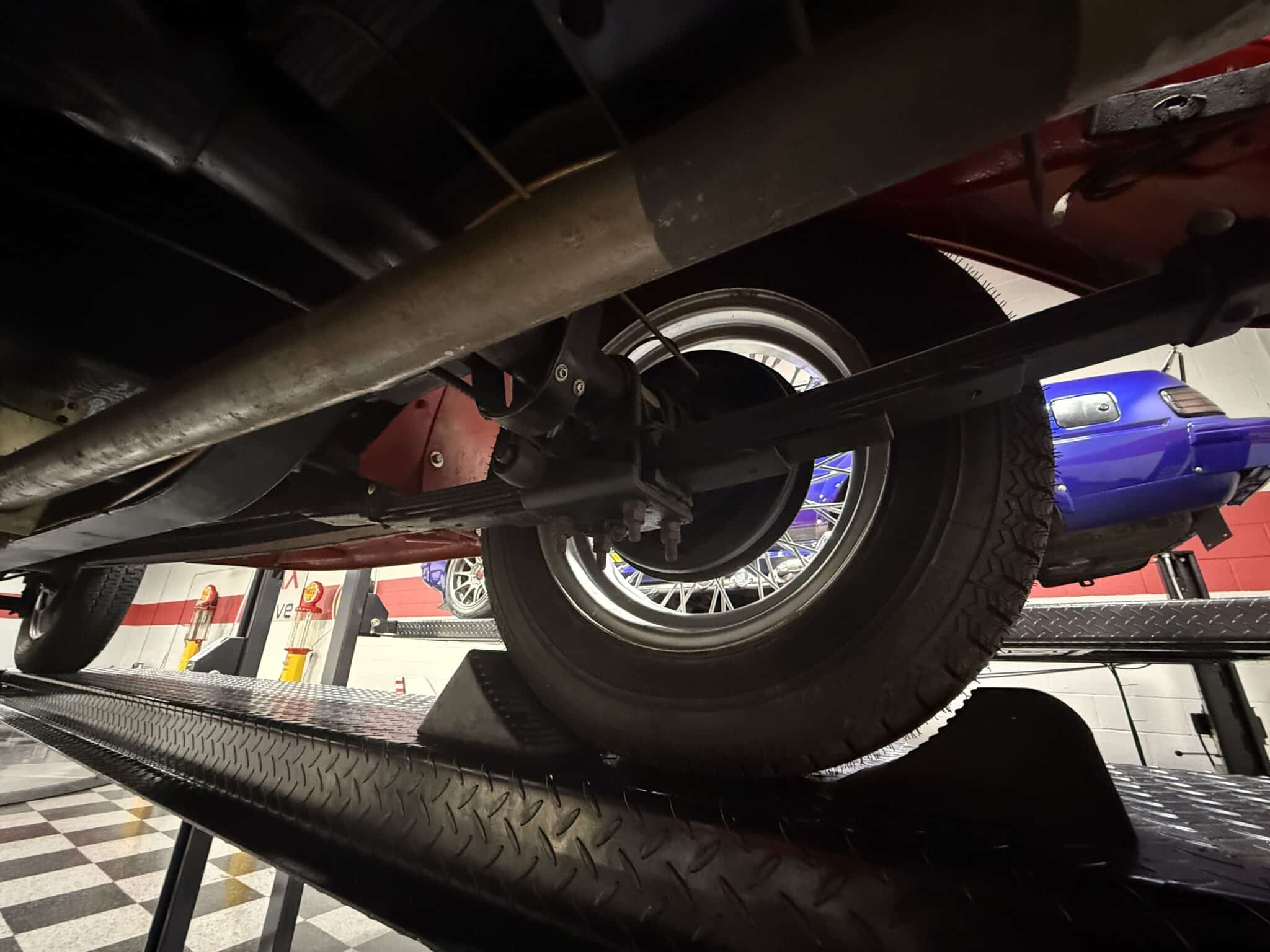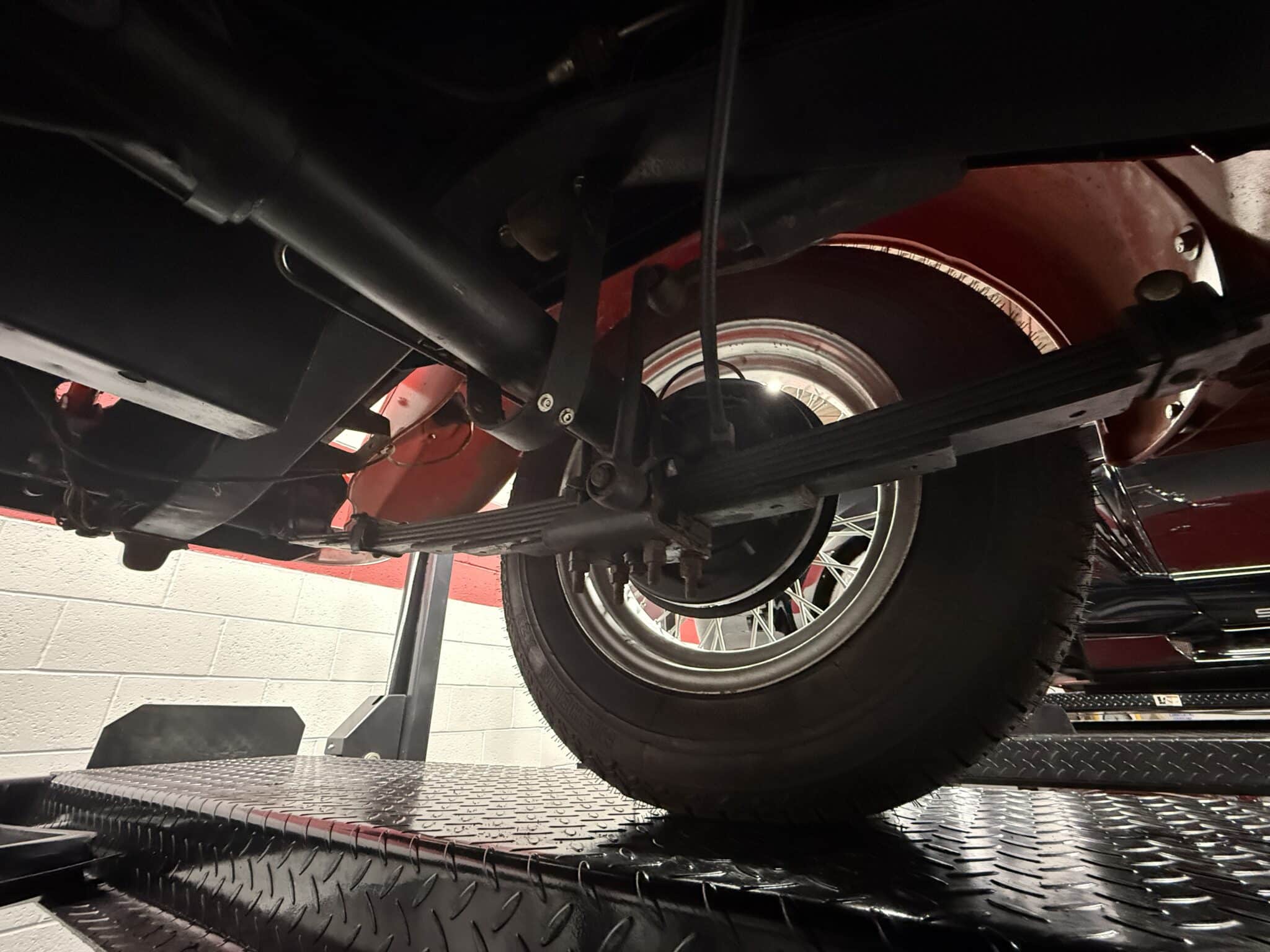 • 15-inch wire wheels with chrome hubcaps and period-style tires