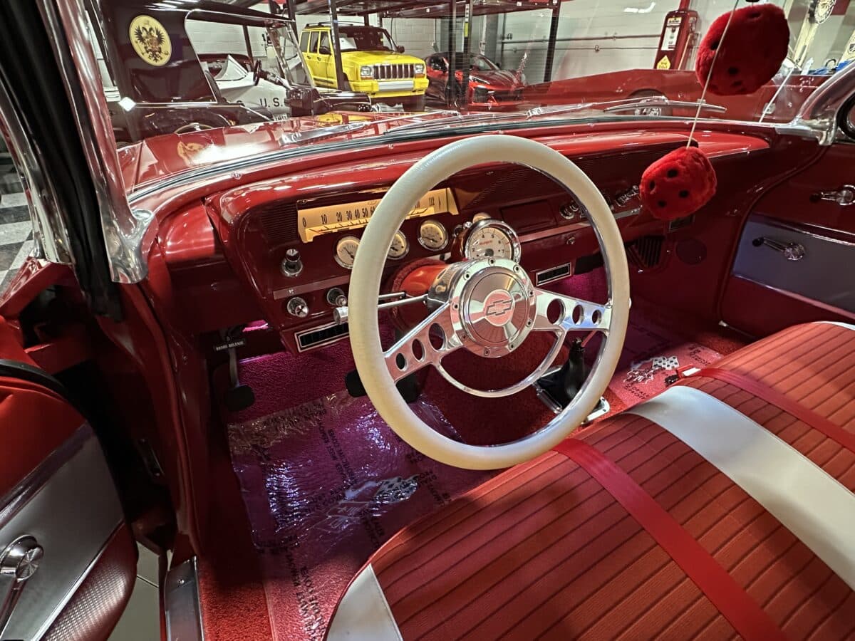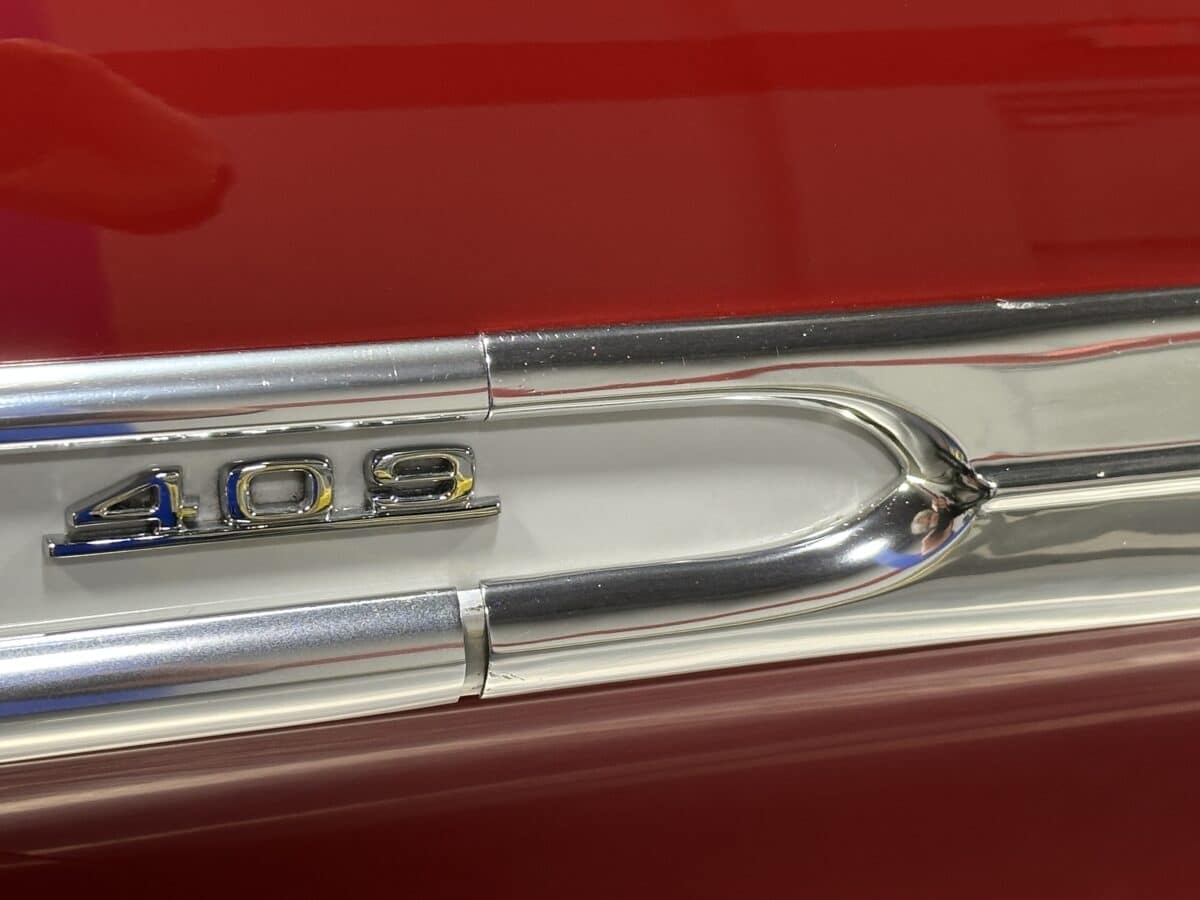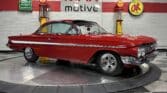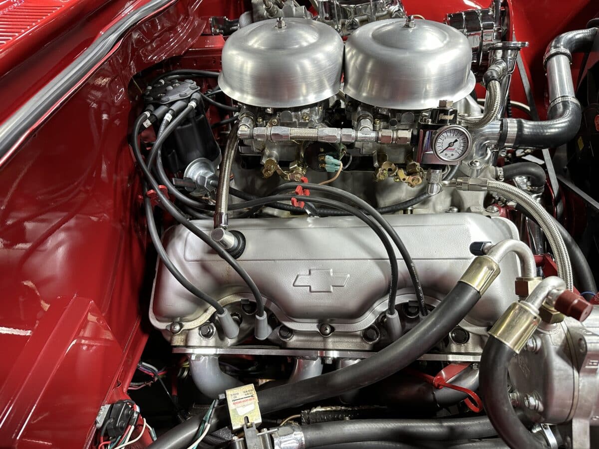 MaxMotive is pleased to present this beautifully turned out 1961 Chevrolet Impala 2dr Sport Coupe aka Bubble Top. The project began with a clean North Carolina car. It was completed in 2020 and driven 2952 miles since. The beautiful paint is Montero Red base with five coats of clear. Under the hood is a .030 over, balanced and blueprinted 409 by Bill Kell Racing Engines in Chester WV. It’s loaded with Ross 10:1 forged pistons and an Isky solid cam. On top are two Edelbrock carbs and Edelbrock aluminum heads. They feed into Doug’s Ceramic-coated headers and a 2.5-inch dual exhaust system. The 409 sends its ample power through a 700R4 automatic transmission with a 2400 stall converter to a new US Gear posi rear with 3.70 gears. Tubular A-arms and a HD front sway bar update the handling nicely along with new rear springs, power steering, and power front disc brakes with hydro boost master. It rides on Cragar Street Star chrome wheels and staggered Goodyear touring tires. The all-new red and white cloth and vinyl interior features Vintage Air, Auto Meter gauges, Ididit tilt steering, and an AM/FM stereo. Yes, this 1961 Chevrolet Impala 2dr Sport Coupe is a genuine four-speed, dual-quad, positraction 409! Please see the photos, videos, and details at maxmotive.com.