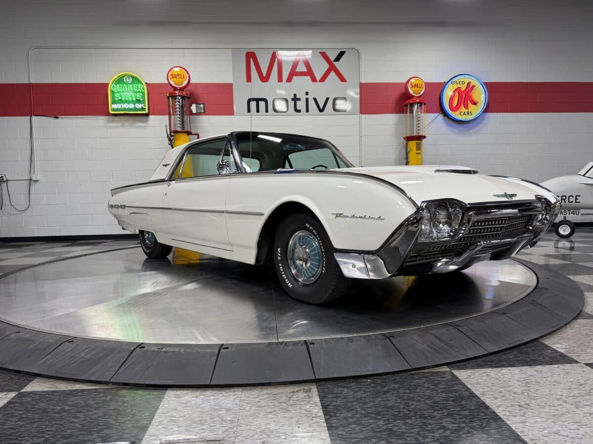 Presenting a graceful blend of iconic early ’60s style and classic V8 power, this 1962 Ford Thunderbird is now available in the MAXmotive Pittsburgh showroom. Under the hood is Ford’s renowned 390ci V8 engine paired with a smooth 3-speed Cruise-O-Matic transmission, delivering the confident, effortless performance these cars are known for. The signature swing-away steering wheel makes entry and exit easy while adding to the car’s distinctive charm. With its original interior lovingly maintained over the years, the cabin presents remarkably well, offering a time-capsule feel that highlights the craftsmanship of the era. From its sculpted body lines to its subtle chrome accents, this Thunderbird commands attention wherever it goes. It’s a classic that invites admiration at every cruise night and car show.