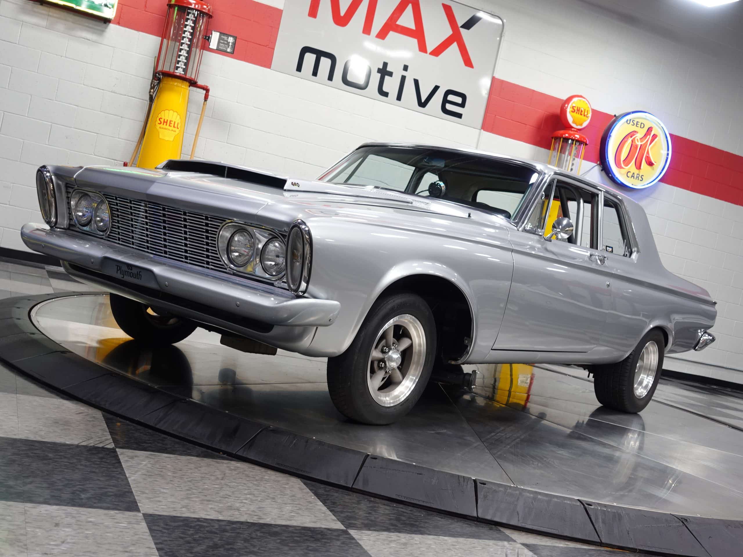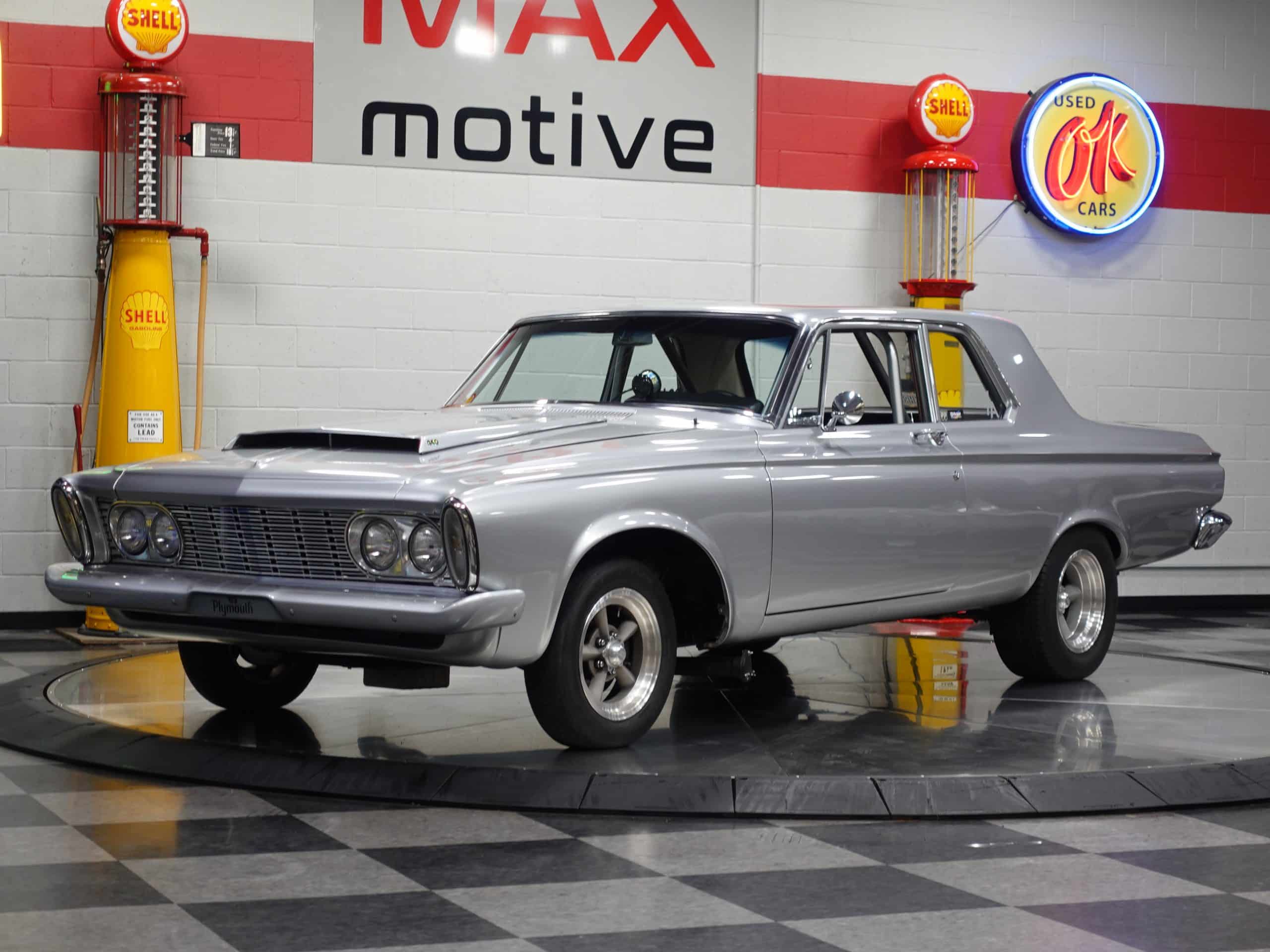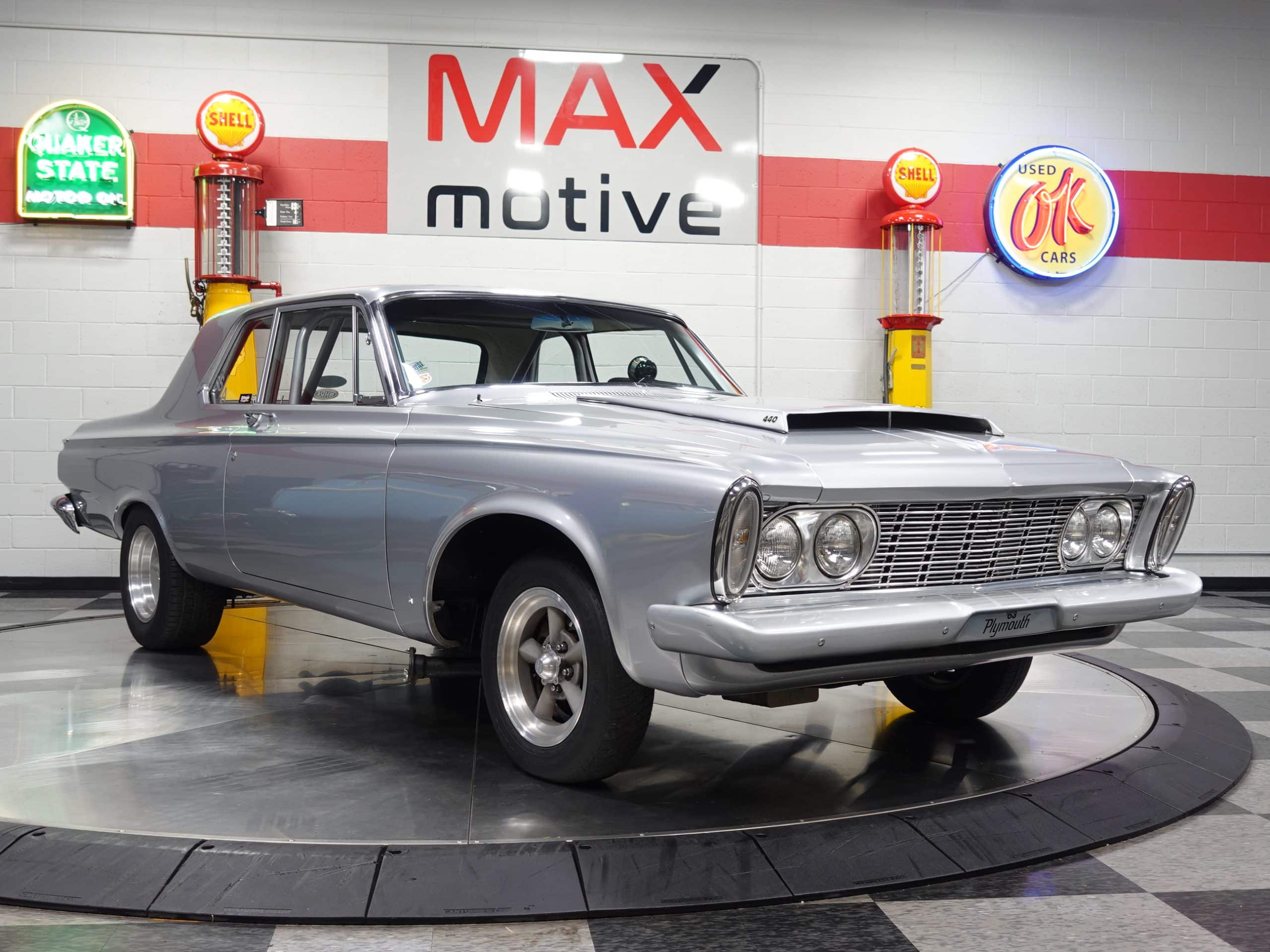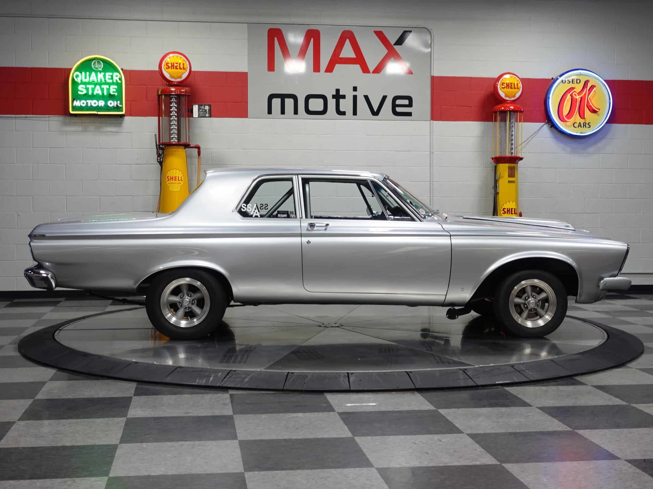 Maxmotive presents this 1963 Plymouth Savoy “drag car”, for sale only at our Pittsburgh showroom. You can’t find many 2-door Savoys that haven’t been modified with a big block and staggered five-spoke mags (this one has American Racing), so it comes as no surprise that this Savoy looks like a dragstrip warrior straight from the 60s. Its also backed by the raw power of a 440 cubic inch engine and 727 Torqueflite transmission. This car is no joke. To top off its 60s drag car nostalgic look is a signed dash from Don Garlits himself. The drag racing world knows the name well, the Garlits legacy stems all the way back to 1949 to now, at 91 years old, still racing and attempting record breaking runs – and of course, signing autographs. Make no mistake, this car does not come with most amenities like a radio, power steering, heat or A/C; it is meant for the raceway. Take this car to your local cruises or nostalgia races and don’t let this one pass you by. Pun intended! Check it out at maxmotive.com