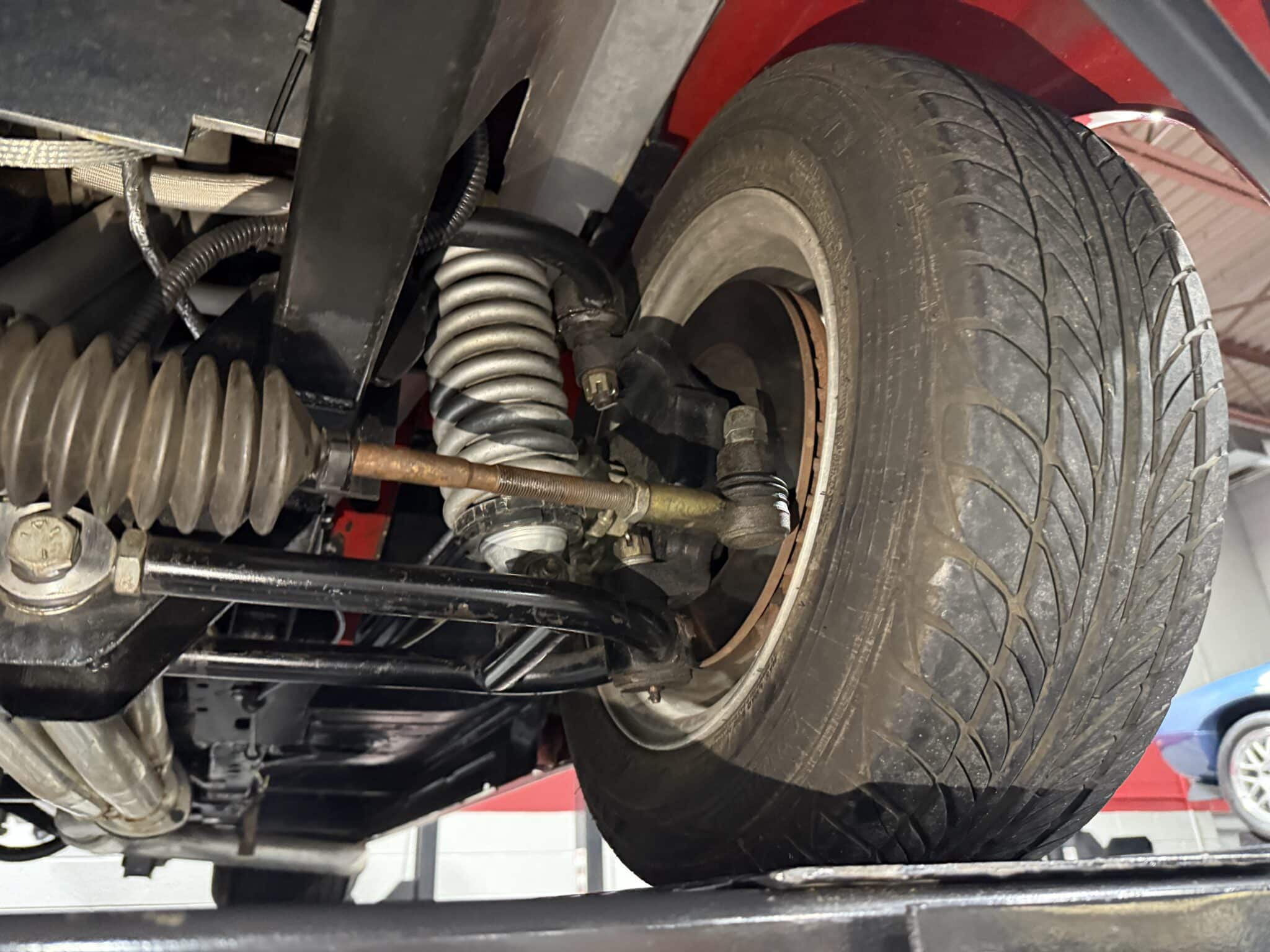 Underneath, a Mustang II front suspension with tubular control arms and coil-overs, paired with a back-half chassis, ladder-bar rear suspension, panhard bar, and rear coil-overs, provides excellent ride quality and traction. The car uses a manual steering rack and four-wheel disc…