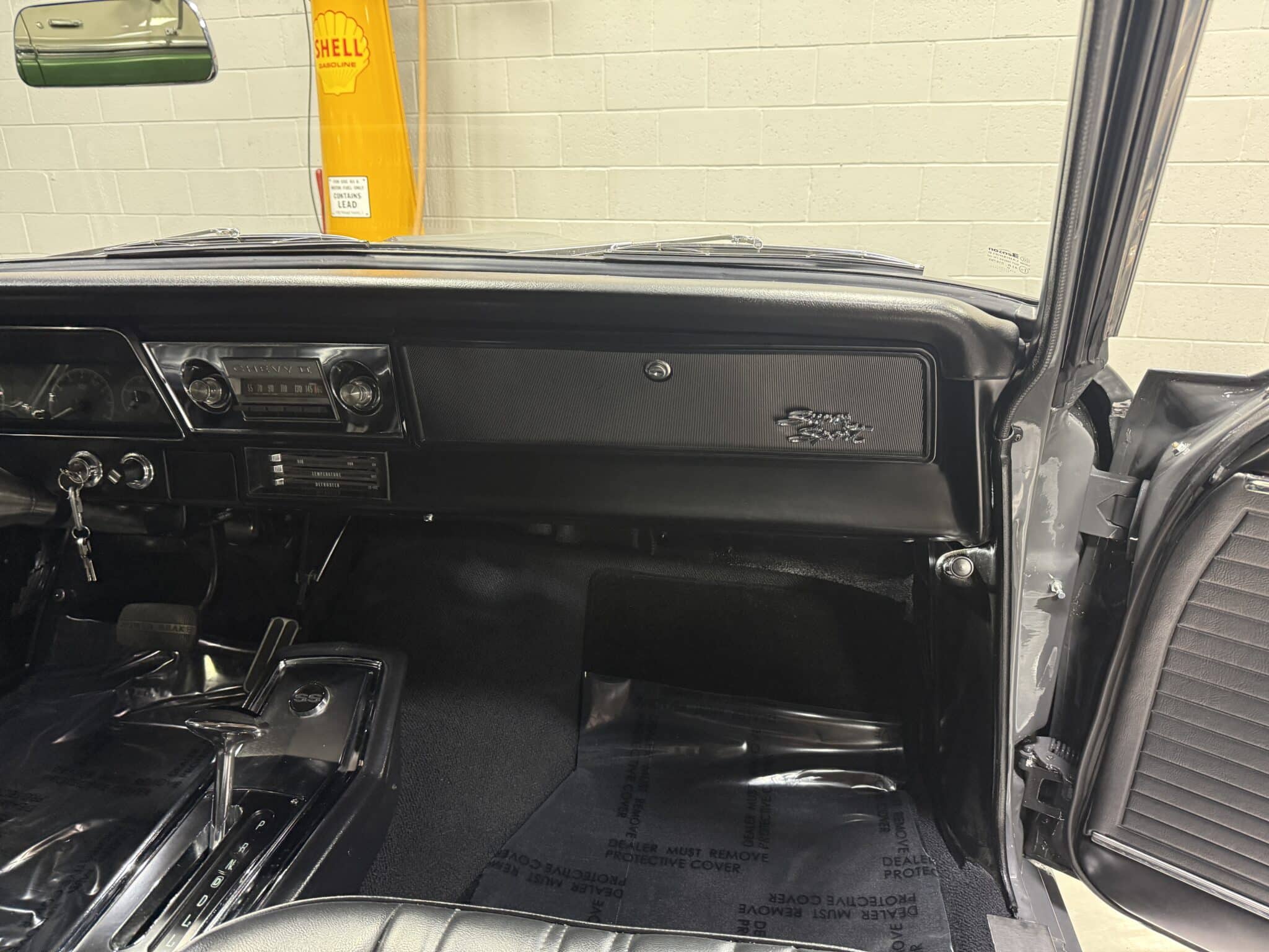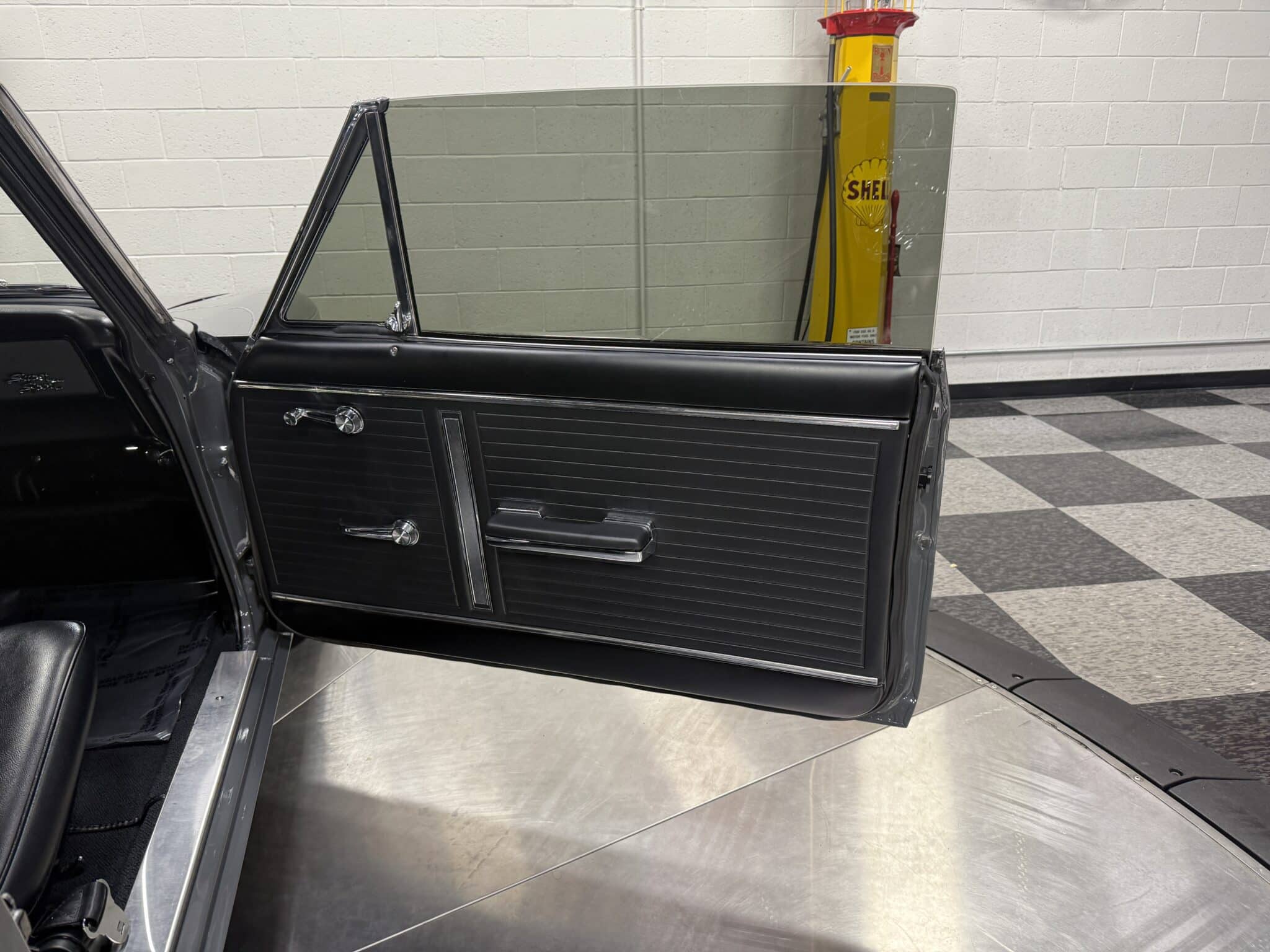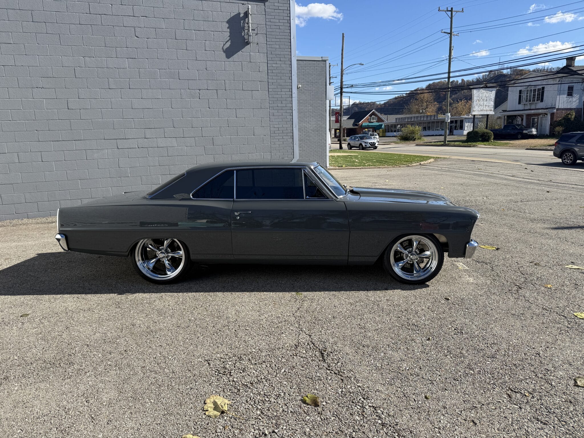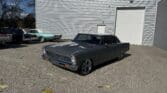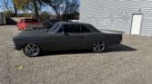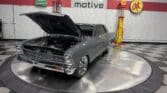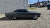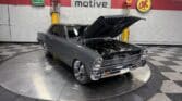 Inside, the Nova retains a clean, classic appearance. The stock seats have been re-covered in new black vinyl, complemented by black carpet and a billet three-spoke steering wheel with a leather wrap. A Dakota Digital dash provides modern instrumentation, while the original AM radio and dash-mounted HVAC controls remain in place for a vintage touch. The car features manual crank windows, chrome bumpers, and…
