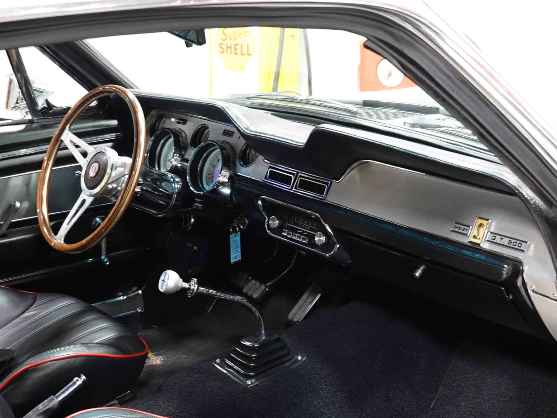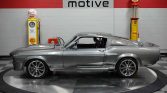 This is the one they saved for last.  This is the elusive Eleanor, a certified Hollywood production ‘67 500E Eleanor Fastback as seen in the Nicolas Cage film “Gone In 60 Seconds.”  That pedigree makes the car collectible, but the quality of the build and all the ultra-performance hardware render this a highly desirable automobile in its own right.  The 428 engine is balanced and features aluminum heads and Roush components. The driveline is built for severe duty and the suspension is so well sorted out that you hardly have to slow for turns.  The interior is decked out with Shelby Signature ProCar Leather front seats and custom made rear seats to match. When you fire it up, you’ll quickly grasp the level of performance built in. Of course you can show her off, but she’ll shine on the street and the track as well.