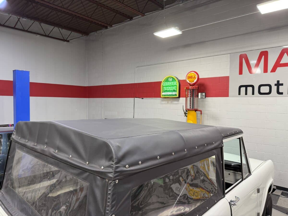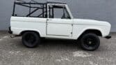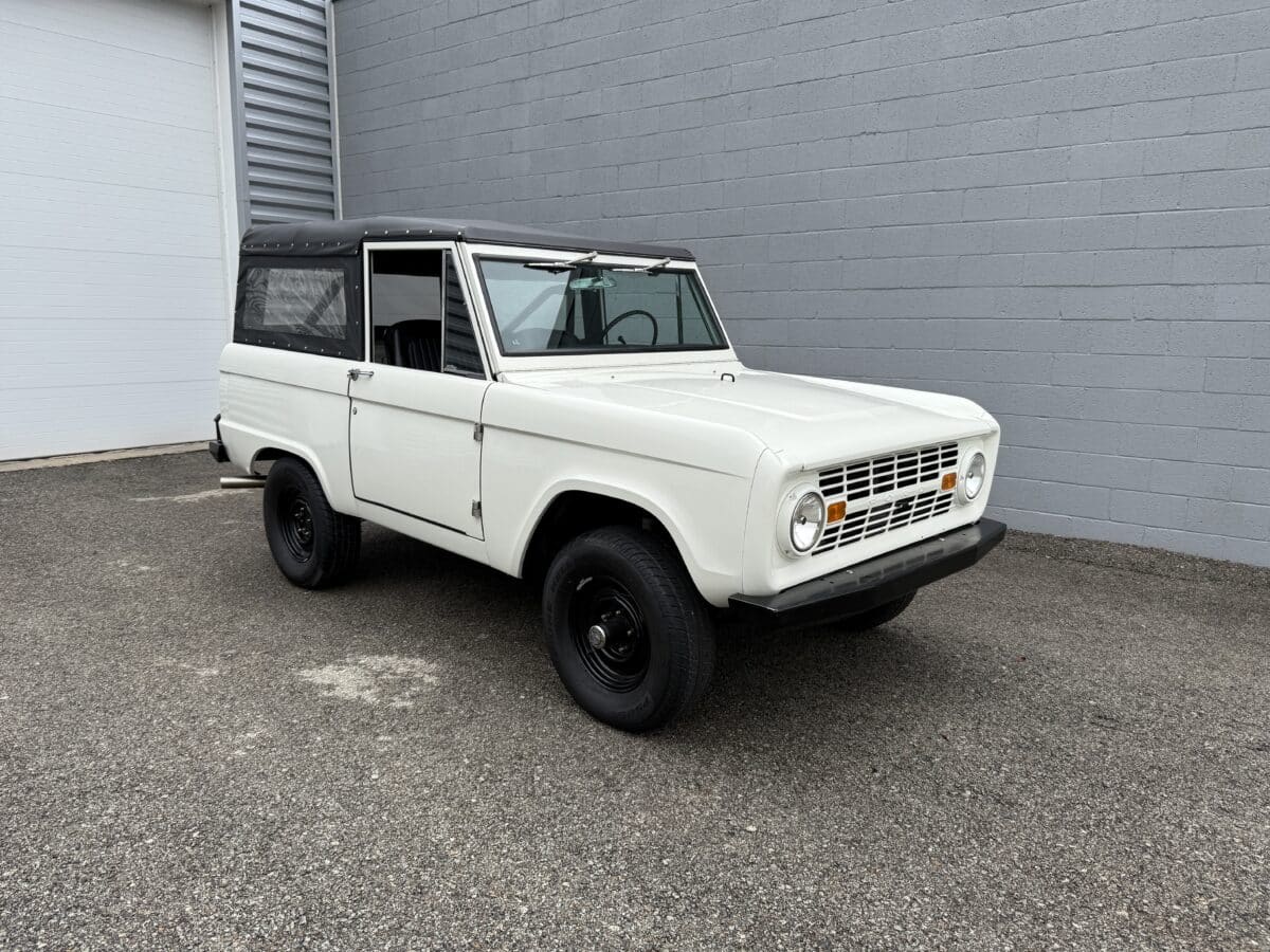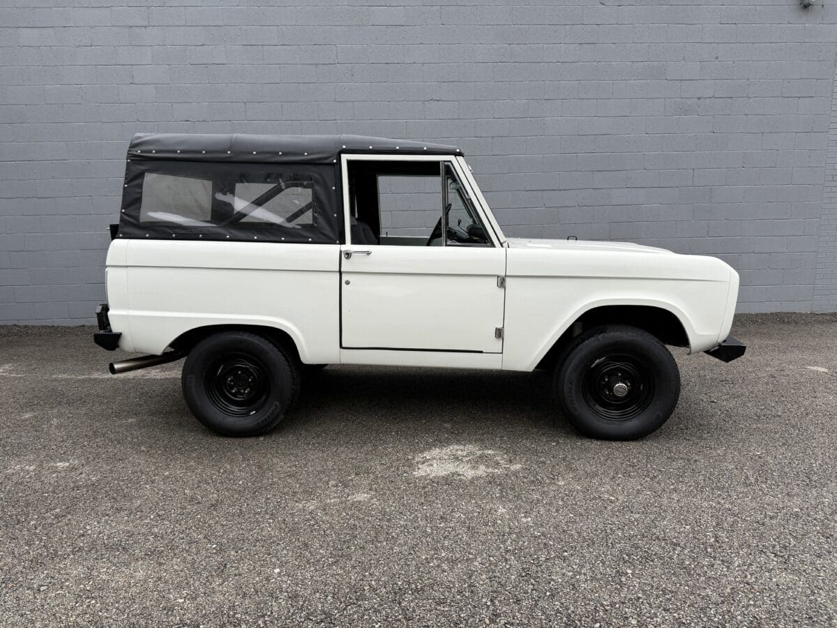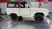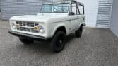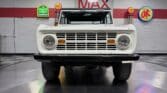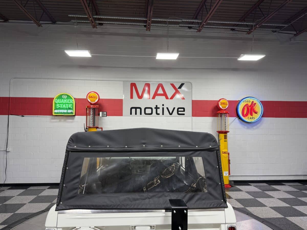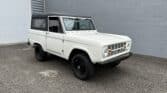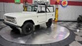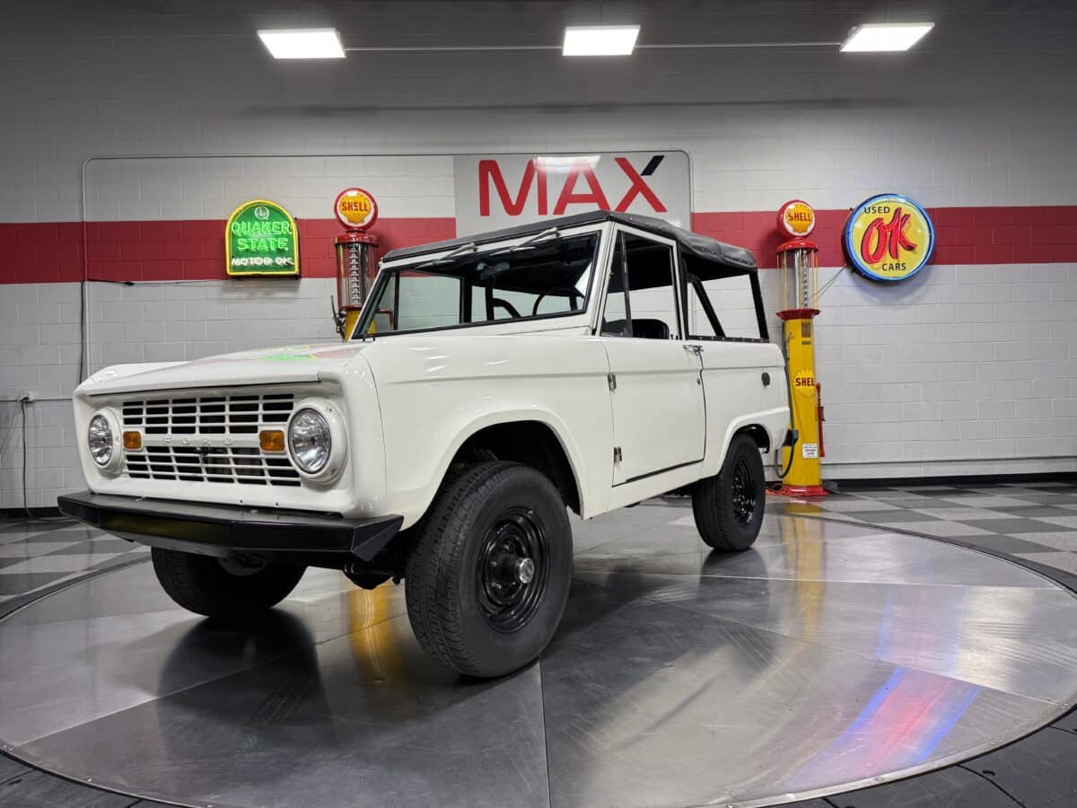 Maxmotive is pleased to offer this stunning, rugged, ready to turn heads 1968 Bronco. This Bronco has received a nice boost in horsepower from the Foxbody 5.0 V-8 engine that was swapped in from a 1989 Mustang. The top end of the engine was gone over prior to install, and shorty headers were added to ensure optimal performance and sound. Speaking of engine sound, the engine proudly rumbles through a Magnaflow muffler. Under the hood, an upgraded aluminum radiator makes sure that 5.0 engine stays nice and cool. The soft top is new, within the last 18 months. The inside rear wheels were texture sprayed in matching white paint. Heavy duty aftermarket bumpers front and rear, with a matching heavy duty fifth wheel spare in the back of the Bronco. New and updated front wiper motor system, Retrosound aftermarket radio, and aftermarket speakers make sure driving the Bronco is just as enjoyable as staring at the Bronco. The front driveshaft is not installed currently, so the Bronco is currently set up as a two wheel drive Bronco. For more pictures and information, please visit our website www.maxmotive.com