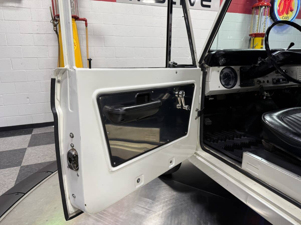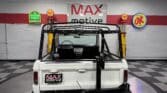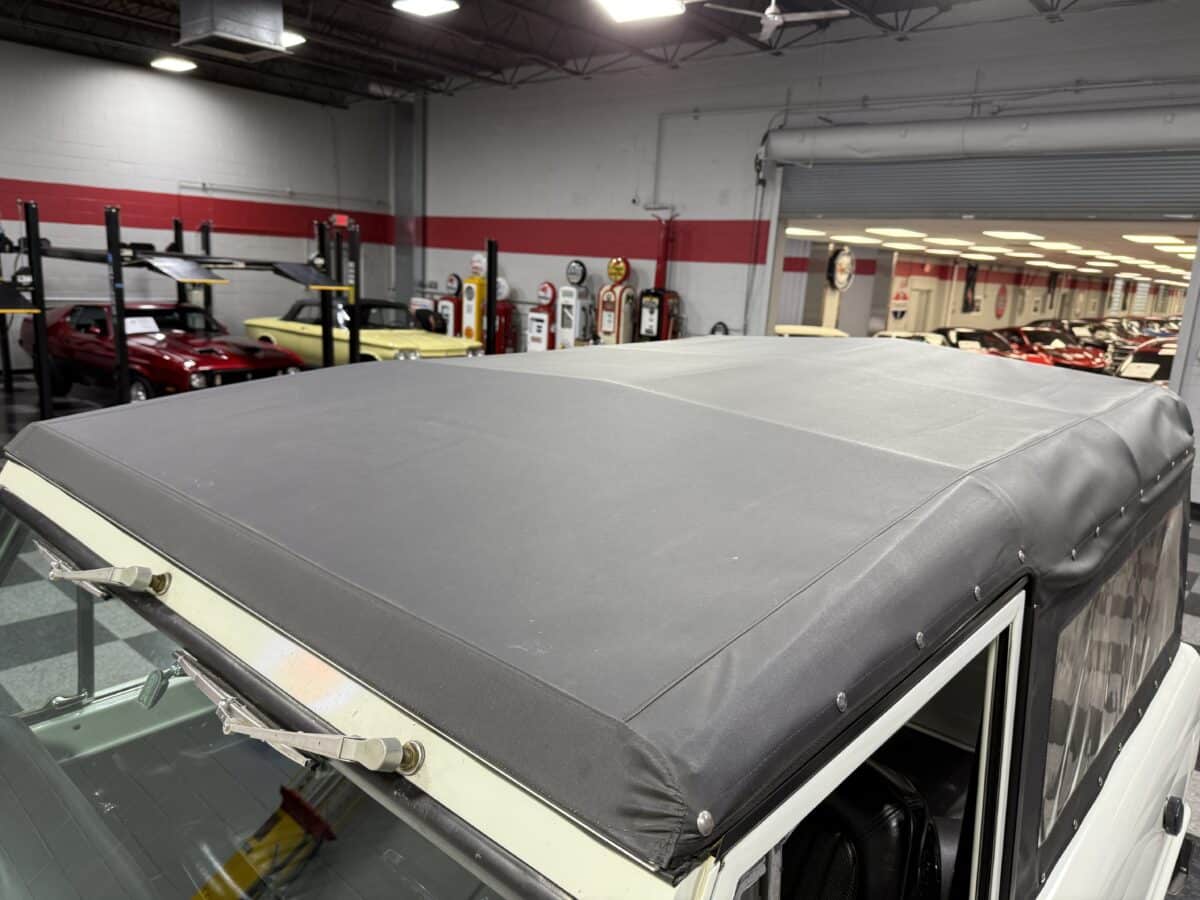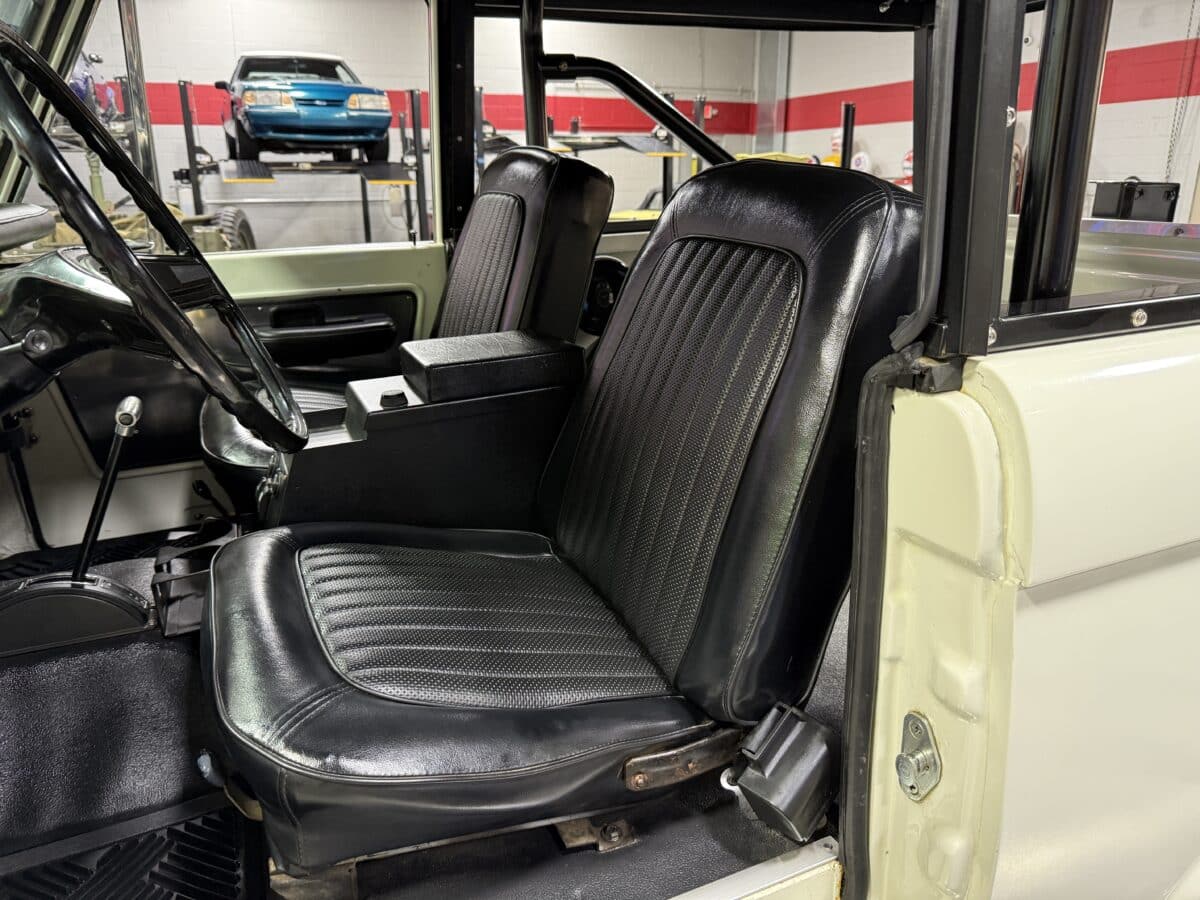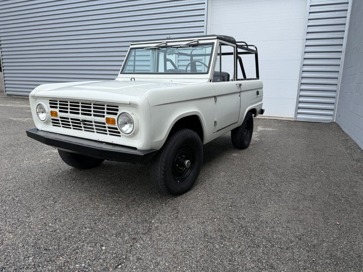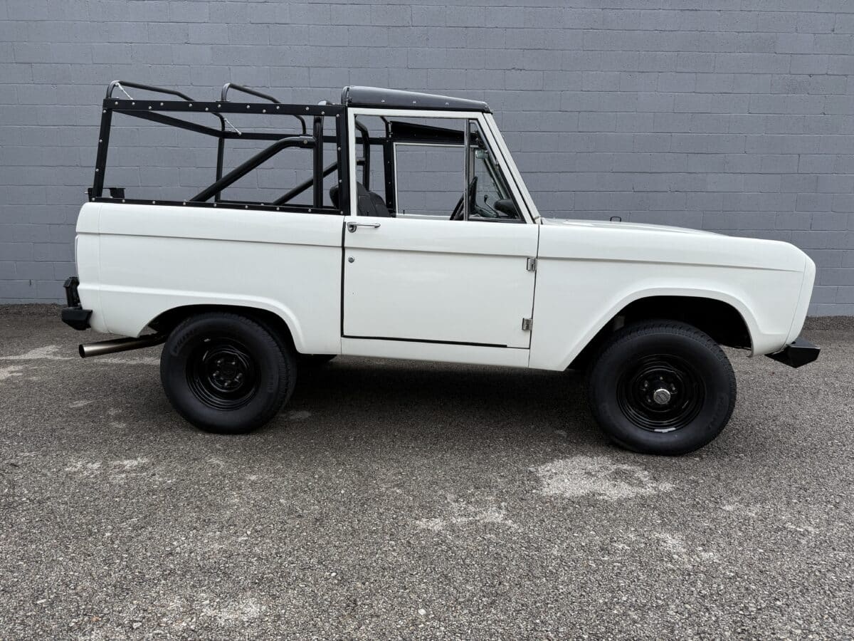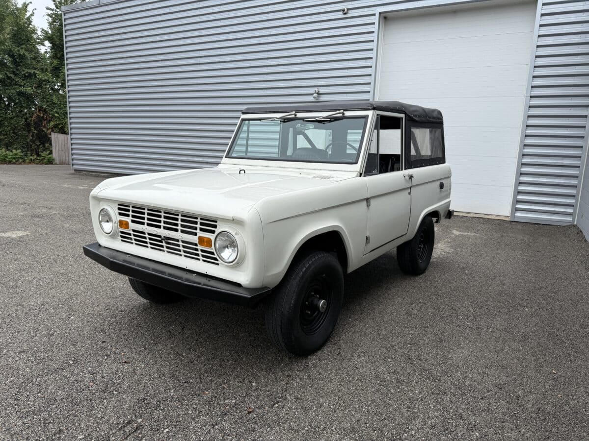 Maxmotive is pleased to offer this stunning, rugged, ready to turn heads 1968 Bronco. This Bronco has received a nice boost in horsepower from the Foxbody 5.0 V-8 engine that was swapped in from a 1989 Mustang. The top end of the engine was gone over prior to install, and shorty headers were added to ensure optimal performance and sound. Speaking of engine sound, the engine proudly rumbles through a Magnaflow muffler. Under the hood, an upgraded aluminum radiator makes sure that 5.0 engine stays nice and cool. The soft top is new, within the last 18 months. The inside rear wheels were texture sprayed in matching white paint. Heavy duty aftermarket bumpers front and rear, with a matching heavy duty fifth wheel spare in the back of the Bronco. New and updated front wiper motor system, Retrosound aftermarket radio, and aftermarket speakers make sure driving the Bronco is just as enjoyable as staring at the Bronco. The front driveshaft is not installed currently, so the Bronco is currently set up as a two wheel drive Bronco. For more pictures and information, please visit our website www.maxmotive.com