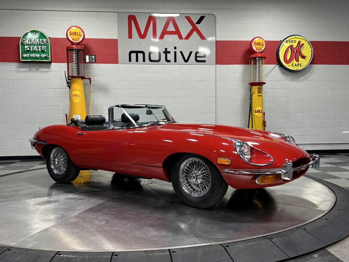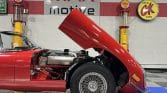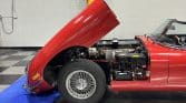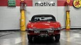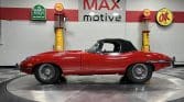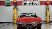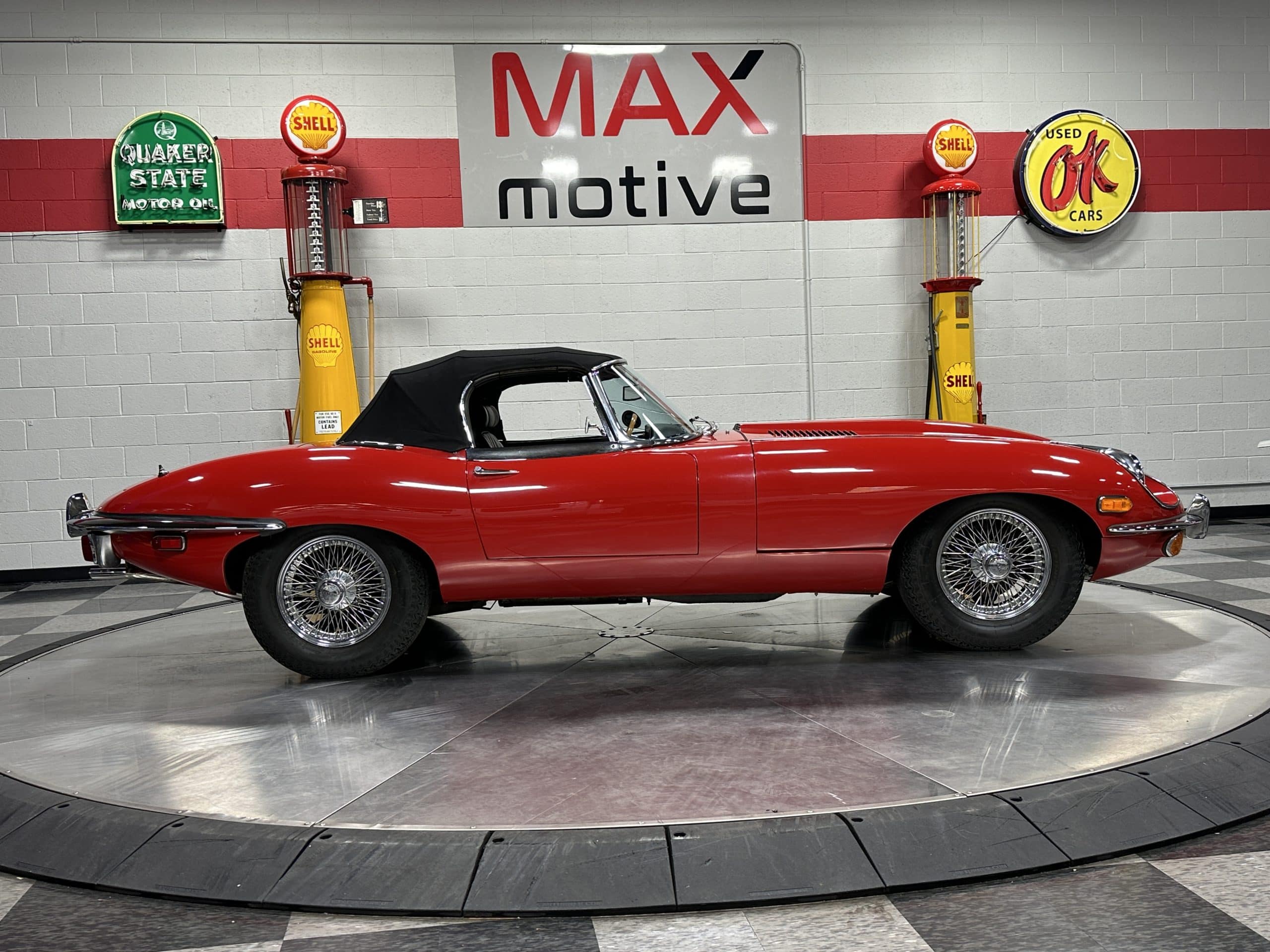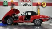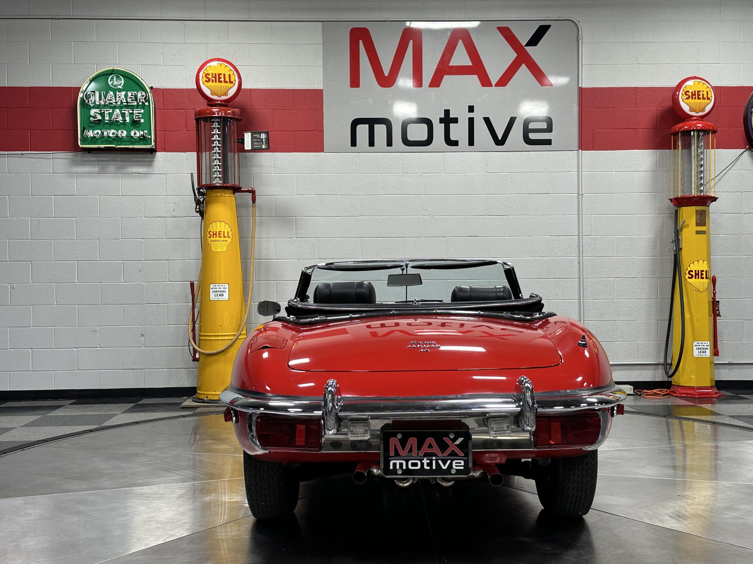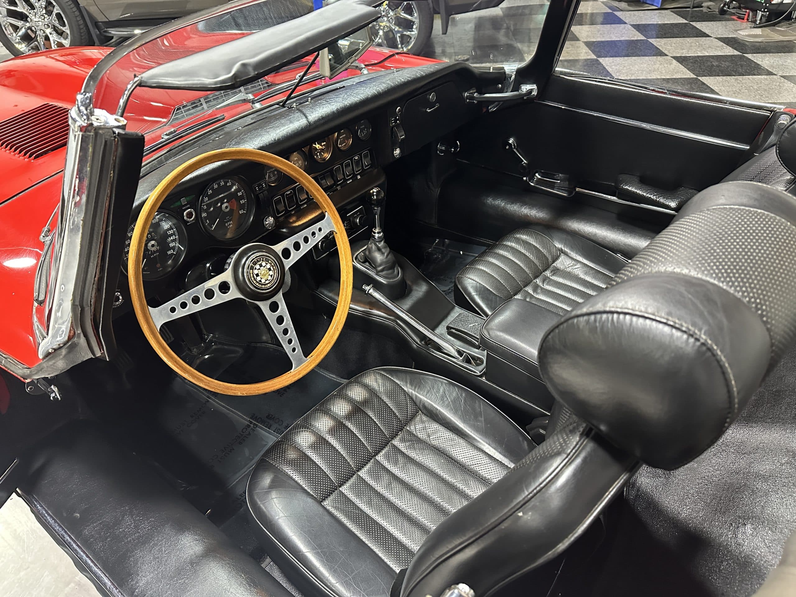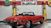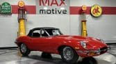 MaxMotive presents this handsome 1970 Jaguar E-Type Series II Convertible. It has been with the same family since 2004 and the odometer shows 32709 miles. The car was treated to a thorough restoration – comprehensive photos included – in which the color was changed to a vibrant Signal Red, contrasting nicely with the beautiful Jaguar chrome wire wheels mounting V-rated Dunlop SP Sport radial tires. Beneath the bonnet is the familiar 4.2L straight-line 6-cylinder engine with dual Stromberg carburetors. It’s paired with the manually shifted 4-speed gearbox. It has a black soft top, while black upholstered leather seats provide comfort and support. A full complement of clearly legible gauges and a wood-rimmed steering wheel round out the interior. Other distinguishing features include the famous tilt front end and the well-engineered independent rear suspension with inboard disc brakes. Along with the car comes a thick binder with restoration photos, a tool kit, extra paint, and a car cover. This 1970 Jaguar E-Type Series II Convertible is complete and available for your collection. Please be sure to see the detailed photos at www.maxmotive.com.