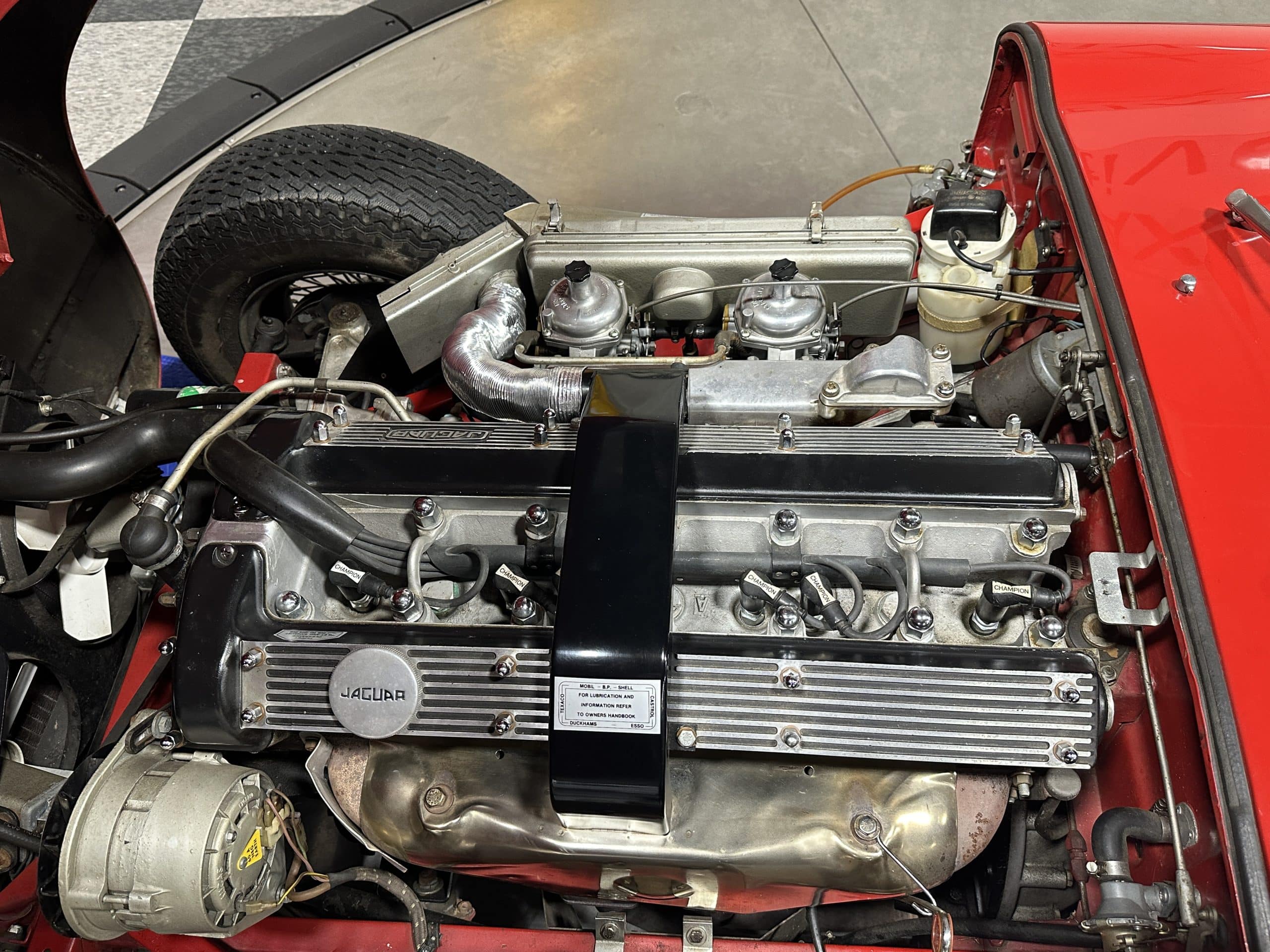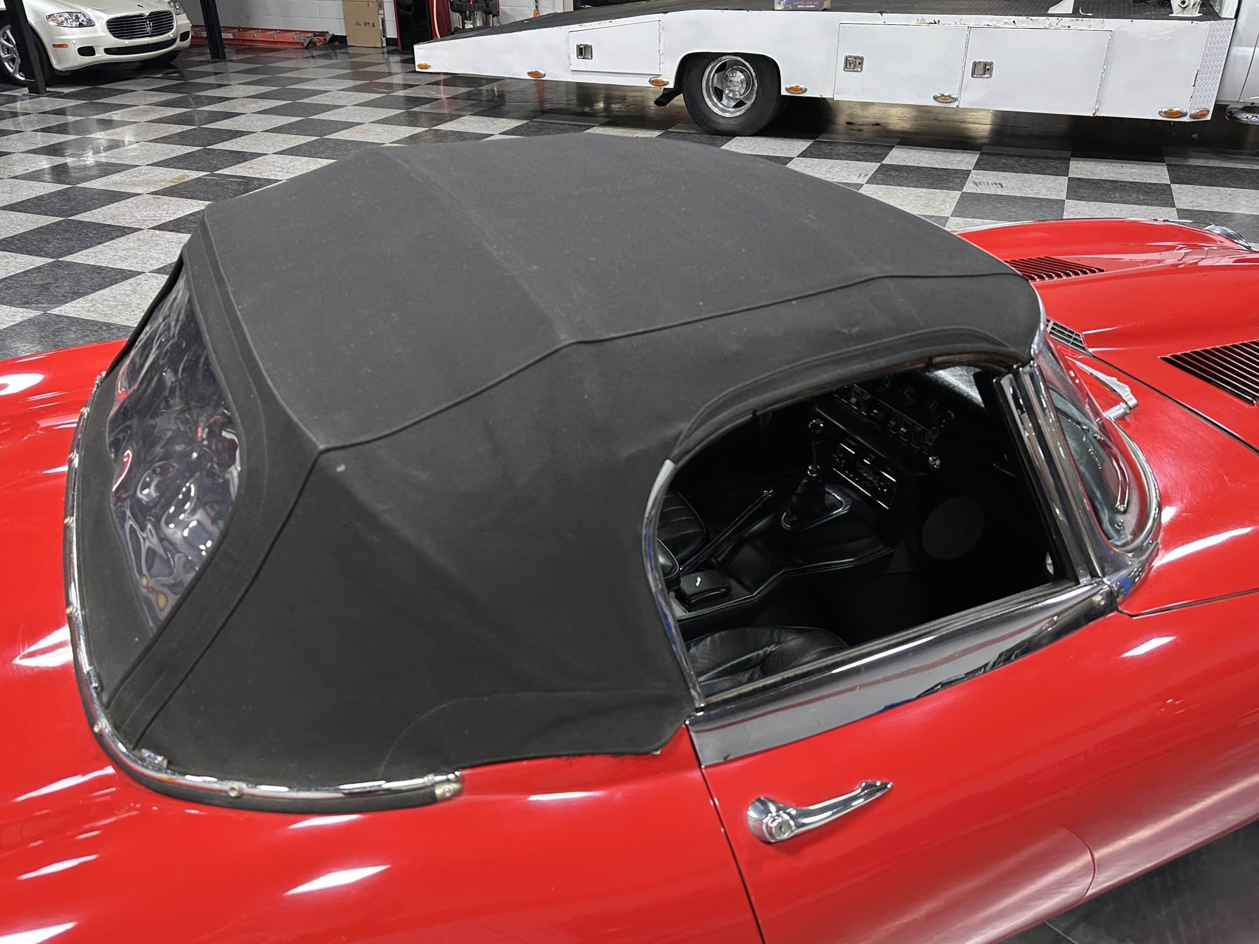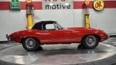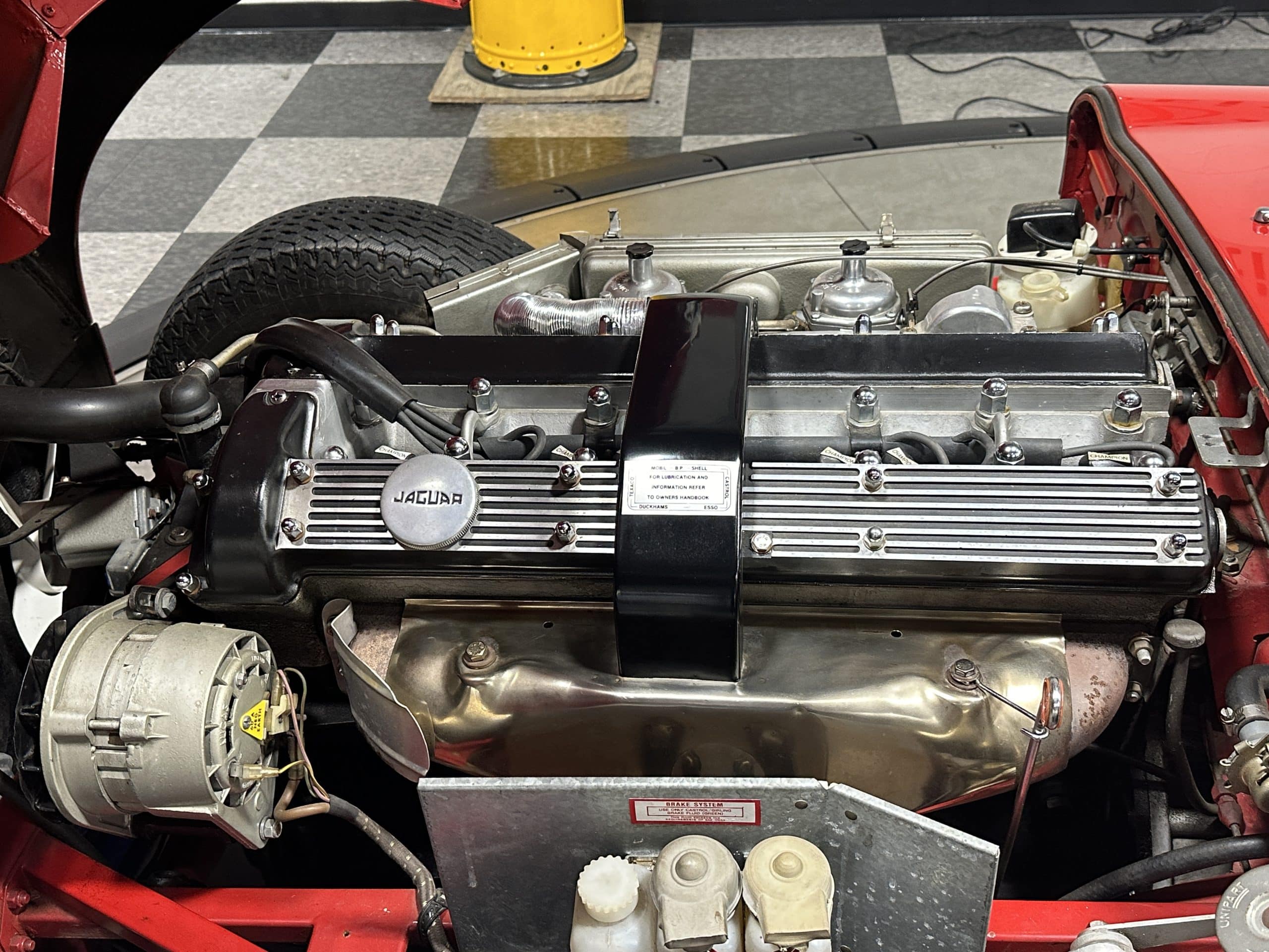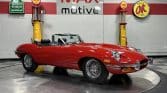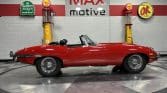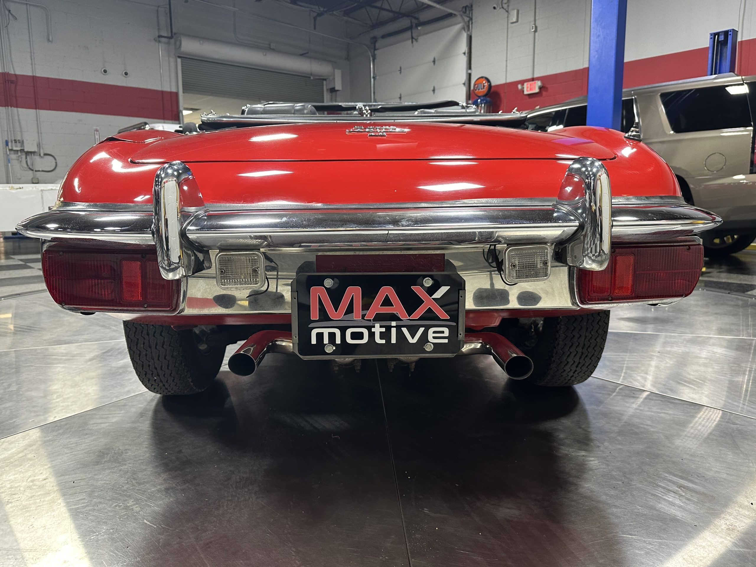 MaxMotive presents this handsome 1970 Jaguar E-Type Series II Convertible. It has been with the same family since 2004 and the odometer shows 32709 miles. The car was treated to a thorough restoration – comprehensive photos included – in which the color was changed to a vibrant Signal Red, contrasting nicely with the beautiful Jaguar chrome wire wheels mounting V-rated Dunlop SP Sport radial tires. Beneath the bonnet is the familiar 4.2L straight-line 6-cylinder engine with dual Stromberg carburetors. It’s paired with the manually shifted 4-speed gearbox. It has a black soft top, while black upholstered leather seats provide comfort and support. A full complement of clearly legible gauges and a wood-rimmed steering wheel round out the interior. Other distinguishing features include the famous tilt front end and the well-engineered independent rear suspension with inboard disc brakes. Along with the car comes a thick binder with restoration photos, a tool kit, extra paint, and a car cover. This 1970 Jaguar E-Type Series II Convertible is complete and available for your collection. Please be sure to see the detailed photos at www.maxmotive.com.