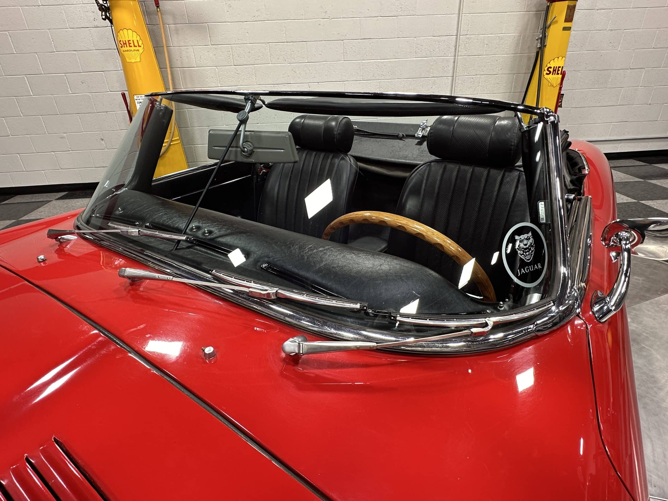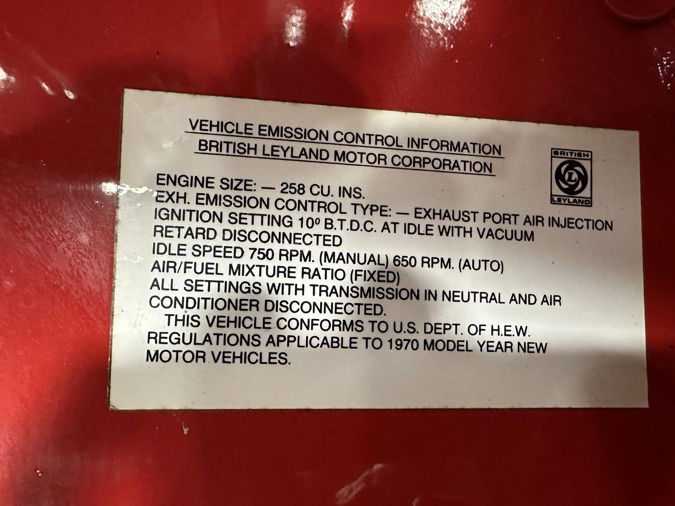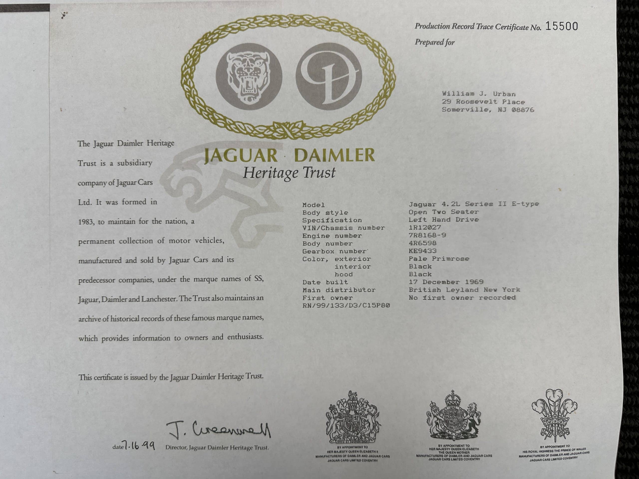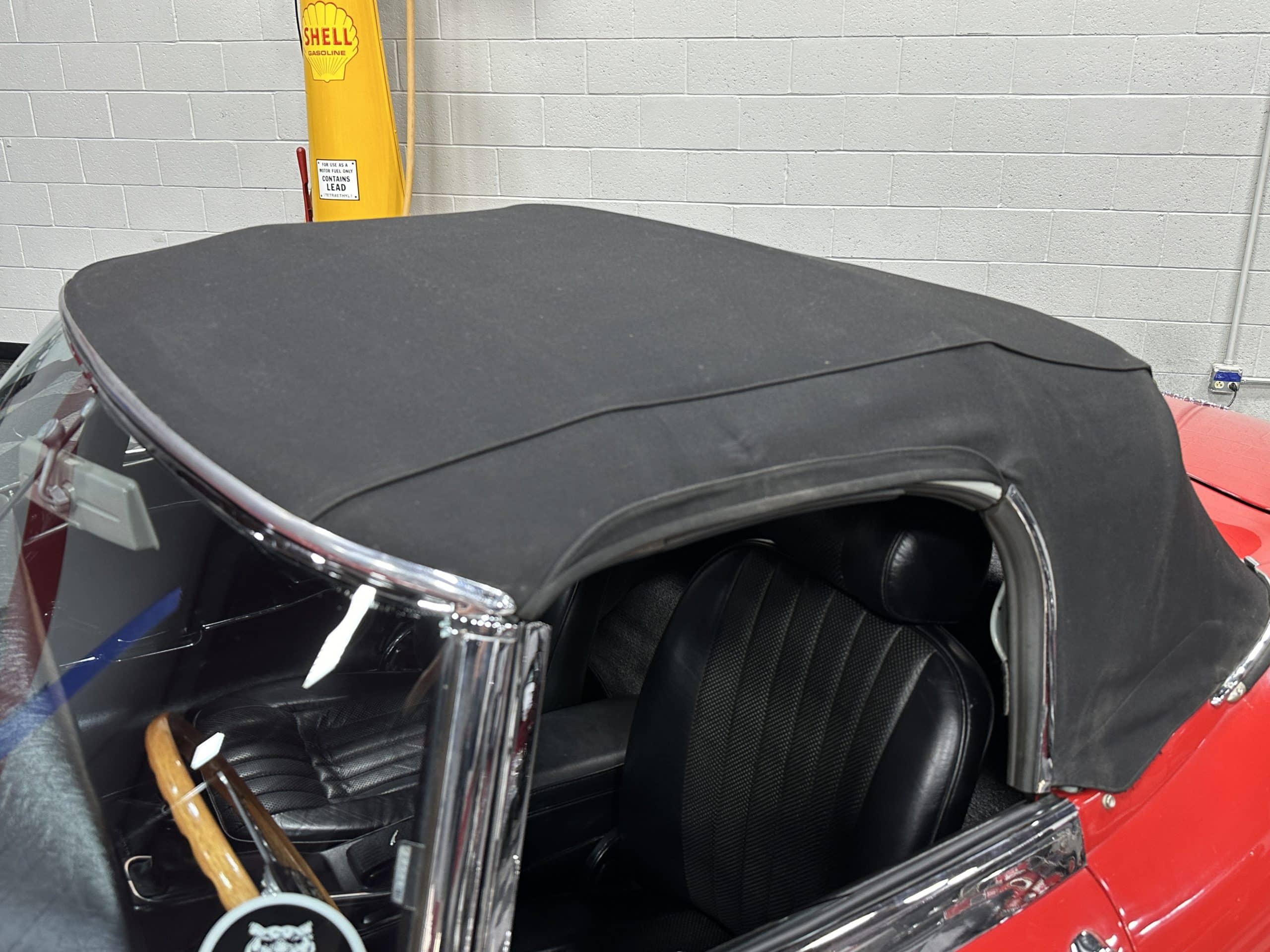MaxMotive presents this handsome 1970 Jaguar E-Type Series II Convertible. It has been with the same family since 2004 and the odometer shows 32709 miles. The car was treated to a thorough restoration – comprehensive photos included – in which the color was changed to a vibrant Signal Red, contrasting nicely with the beautiful Jaguar chrome wire wheels mounting V-rated Dunlop SP Sport radial tires. Beneath the bonnet is the familiar 4.2L straight-line 6-cylinder engine with dual Stromberg carburetors. It’s paired with the manually shifted 4-speed gearbox. It has a black soft top, while black upholstered leather seats provide comfort and support. A full complement of clearly legible gauges and a wood-rimmed steering wheel round out the interior. Other distinguishing features include the famous tilt front end and the well-engineered independent rear suspension with inboard disc brakes. Along with the car comes a thick binder with restoration photos, a tool kit, extra paint, and a car cover. This 1970 Jaguar E-Type Series II Convertible is complete and available for your collection. Please be sure to see the detailed photos at www.maxmotive.com.