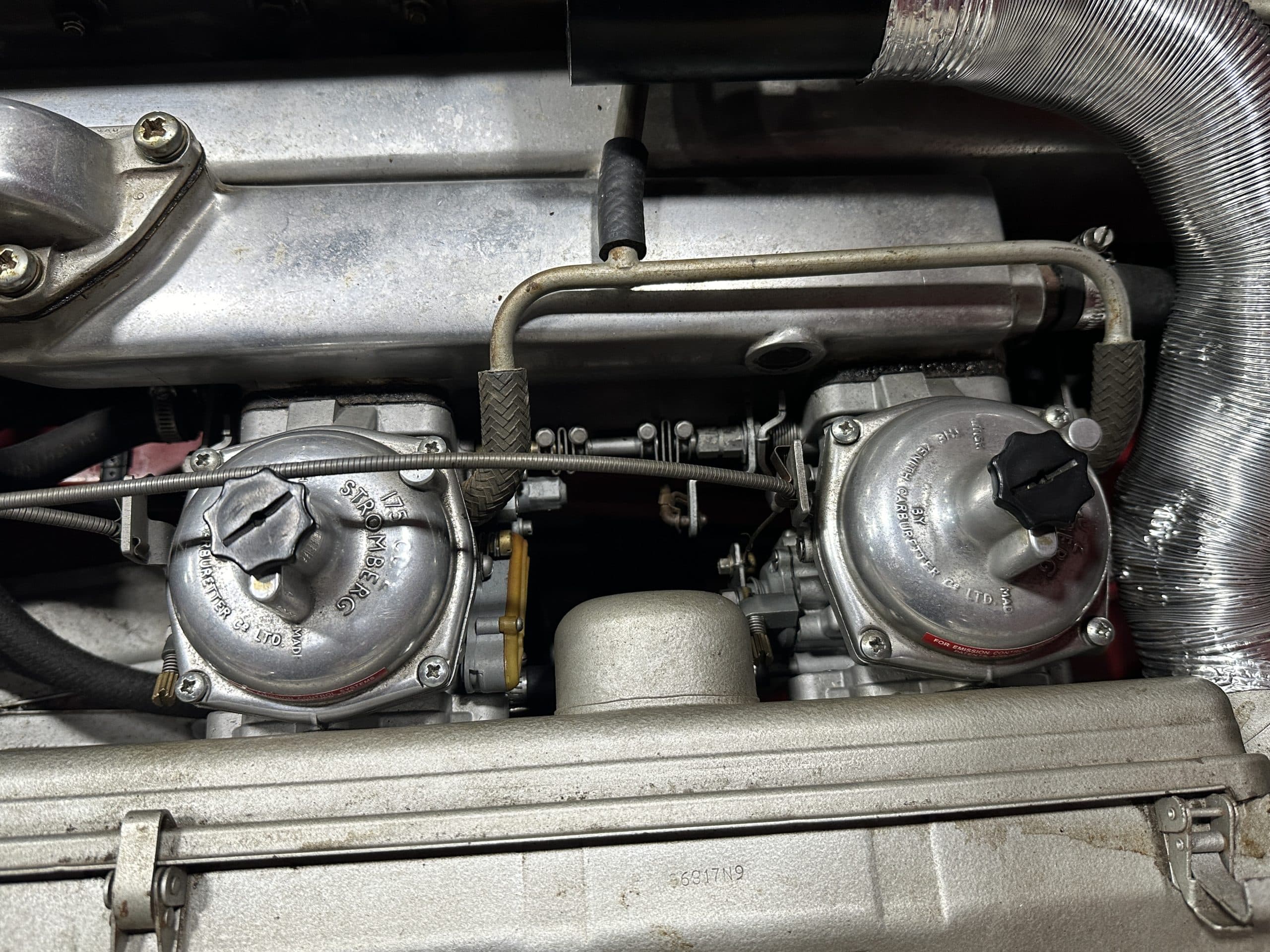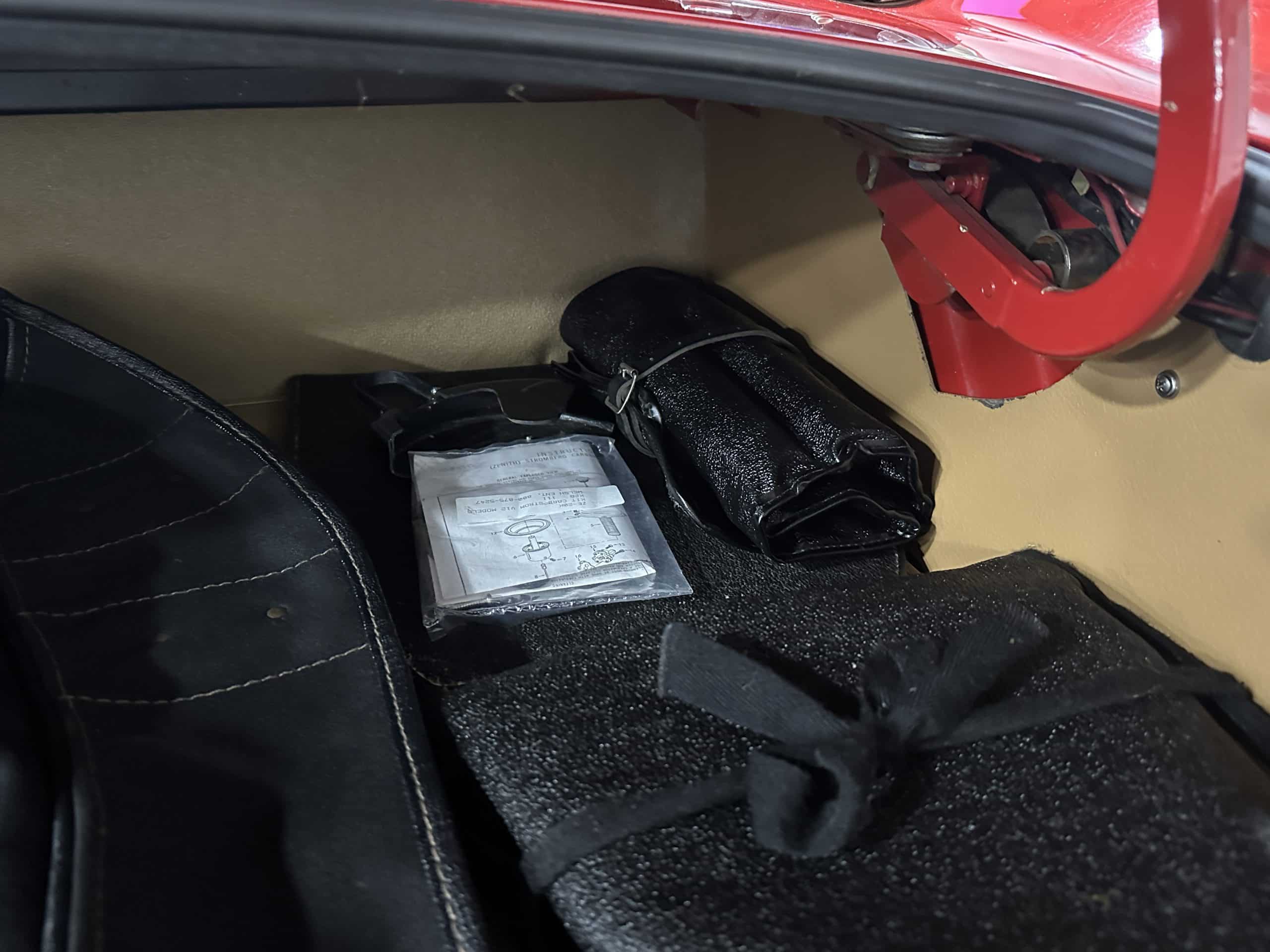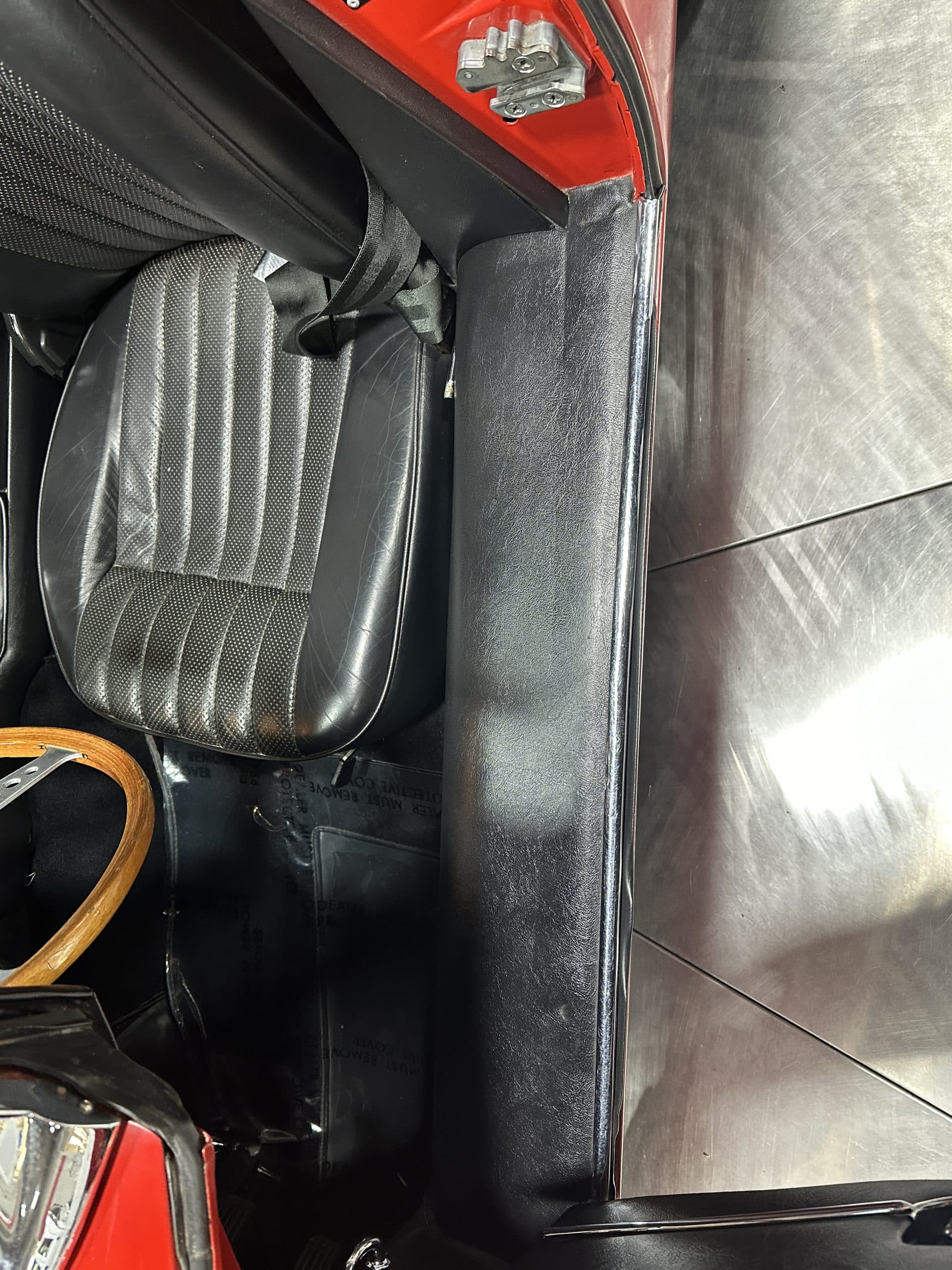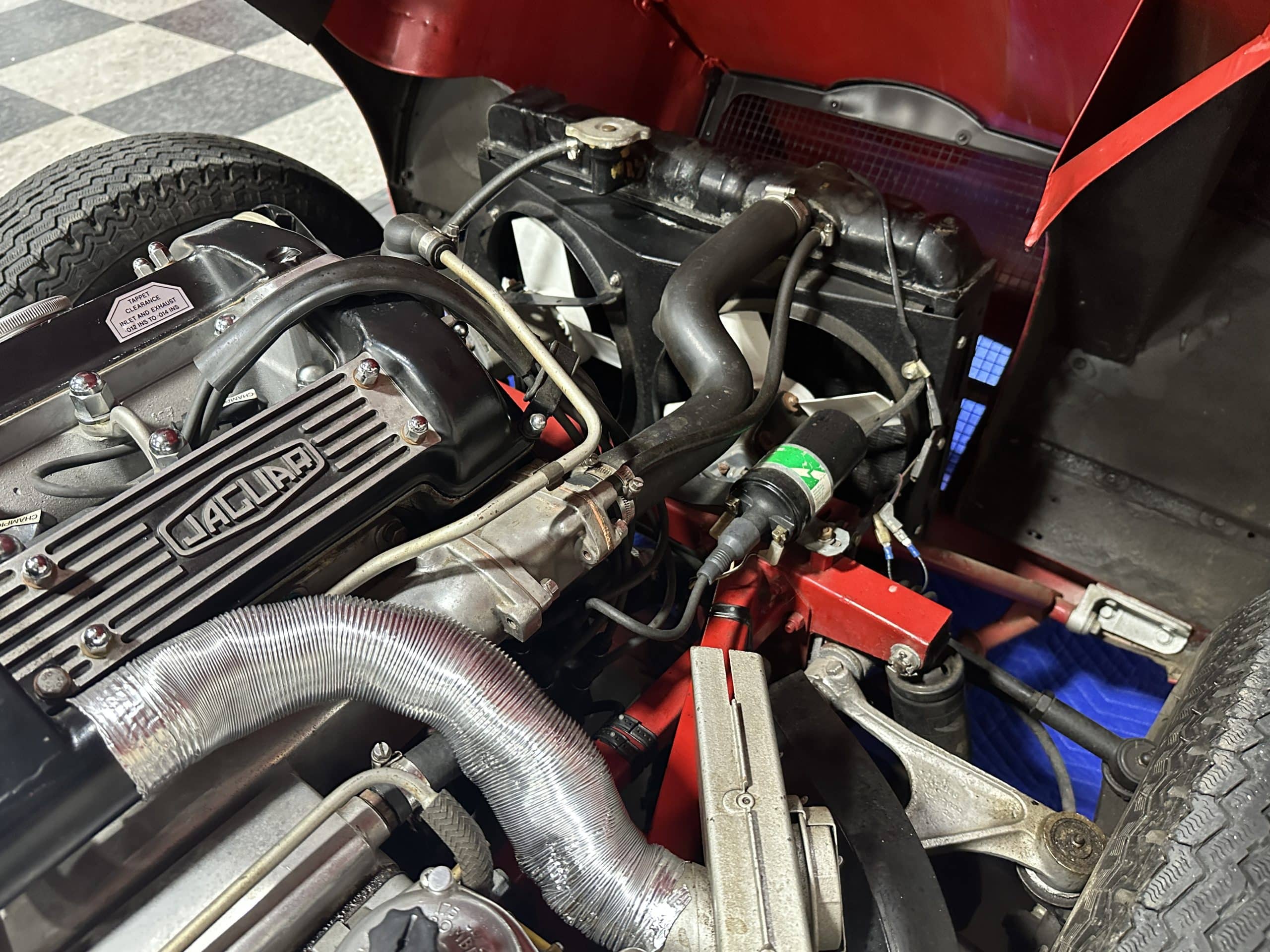 MaxMotive presents this handsome 1970 Jaguar E-Type Series II Convertible. It has been with the same family since 2004 and the odometer shows 32709 miles. The car was treated to a thorough restoration – comprehensive photos included – in which the color was changed to a vibrant Signal Red, contrasting nicely with the beautiful Jaguar chrome wire wheels mounting V-rated Dunlop SP Sport radial tires. Beneath the bonnet is the familiar 4.2L straight-line 6-cylinder engine with dual Stromberg carburetors. It’s paired with the manually shifted 4-speed gearbox. It has a black soft top, while black upholstered leather seats provide comfort and support. A full complement of clearly legible gauges and a wood-rimmed steering wheel round out the interior. Other distinguishing features include the famous tilt front end and the well-engineered independent rear suspension with inboard disc brakes. Along with the car comes a thick binder with restoration photos, a tool kit, extra paint, and a car cover. This 1970 Jaguar E-Type Series II Convertible is complete and available for your collection. Please be sure to see the detailed photos at www.maxmotive.com.