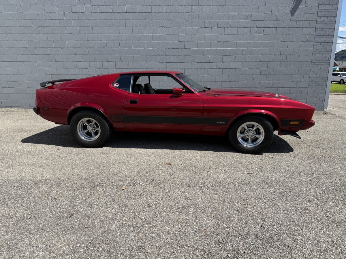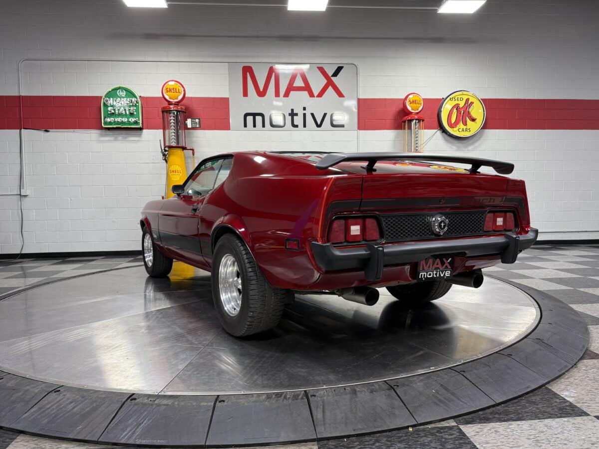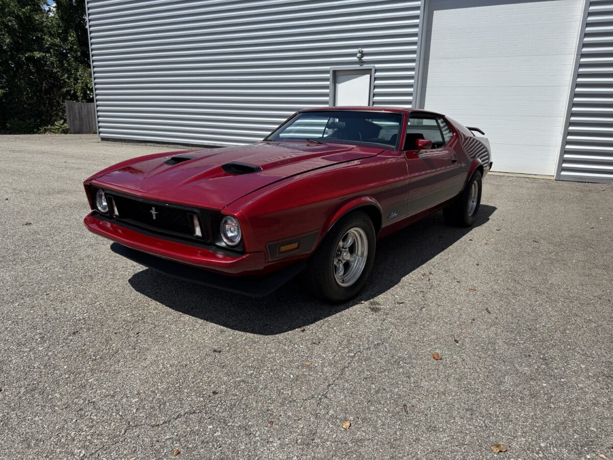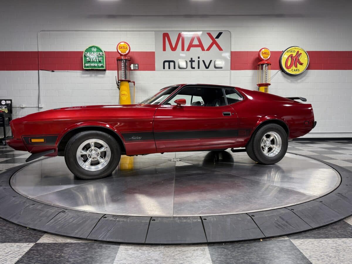 Maxmotive is proud to offer this 1973 Mustang Mach 1 Mustang. Sporting a 351 Windsor V-8 engine under the hood paired to a Tremec 5 speed manual transmission. Shifting is enjoyed through the Hurst shifter. The engine has some nice upgrades including AFR Aluminum cylinder heads, a Holley Pro Form 750 CFM carburetor. The engine has long tube headers allowing it to breathe into a dual exhaust system with aftermarket mufflers. There are QTP exhaust cutouts installed as well, allowing the exhaust to go from a mild to wild sound with a flip of the switch inside the cabin. A Moser 4.11 gear set has been installed into the Ford 9” rear axle. With all of the power, rigidity and body strength become a key component. Welded in sub-frame connectors, in addition to rear leaf spring helpers keep the Mustang body secure. Disc brakes at all 4 corners handle the stopping power. The front calipers are Wilwood, while the rear are a standard OEM set up. A new proportioning valve and brake reservoir were installed within the last year. Red LED halo rings in the headlights help give the stylish Mustang an aggressive, but recognizable look. The heater system and windshield wiper motor are not hooked up, so both systems are currently inoperable. For more pictures and information, check out our website www.maxmotive.com