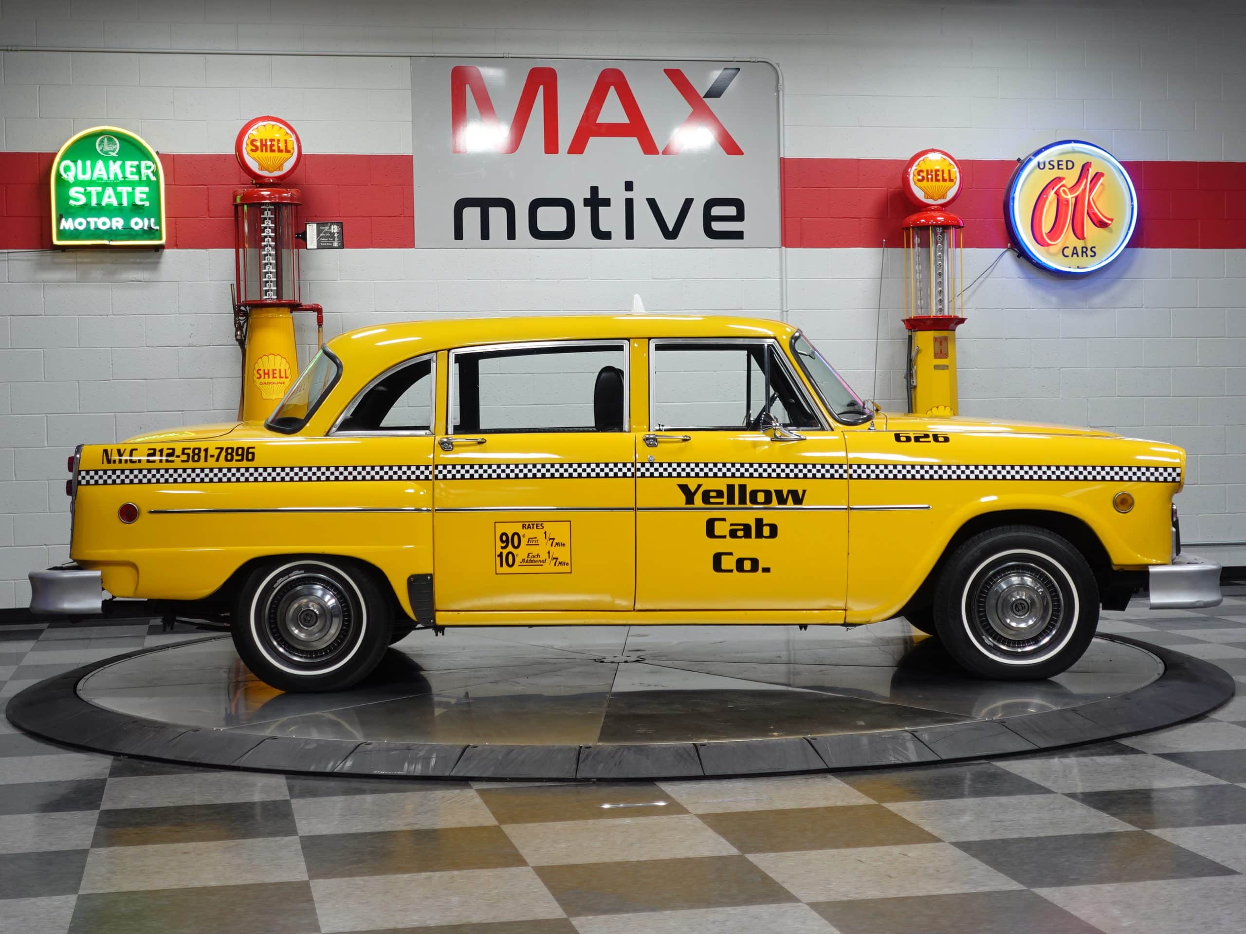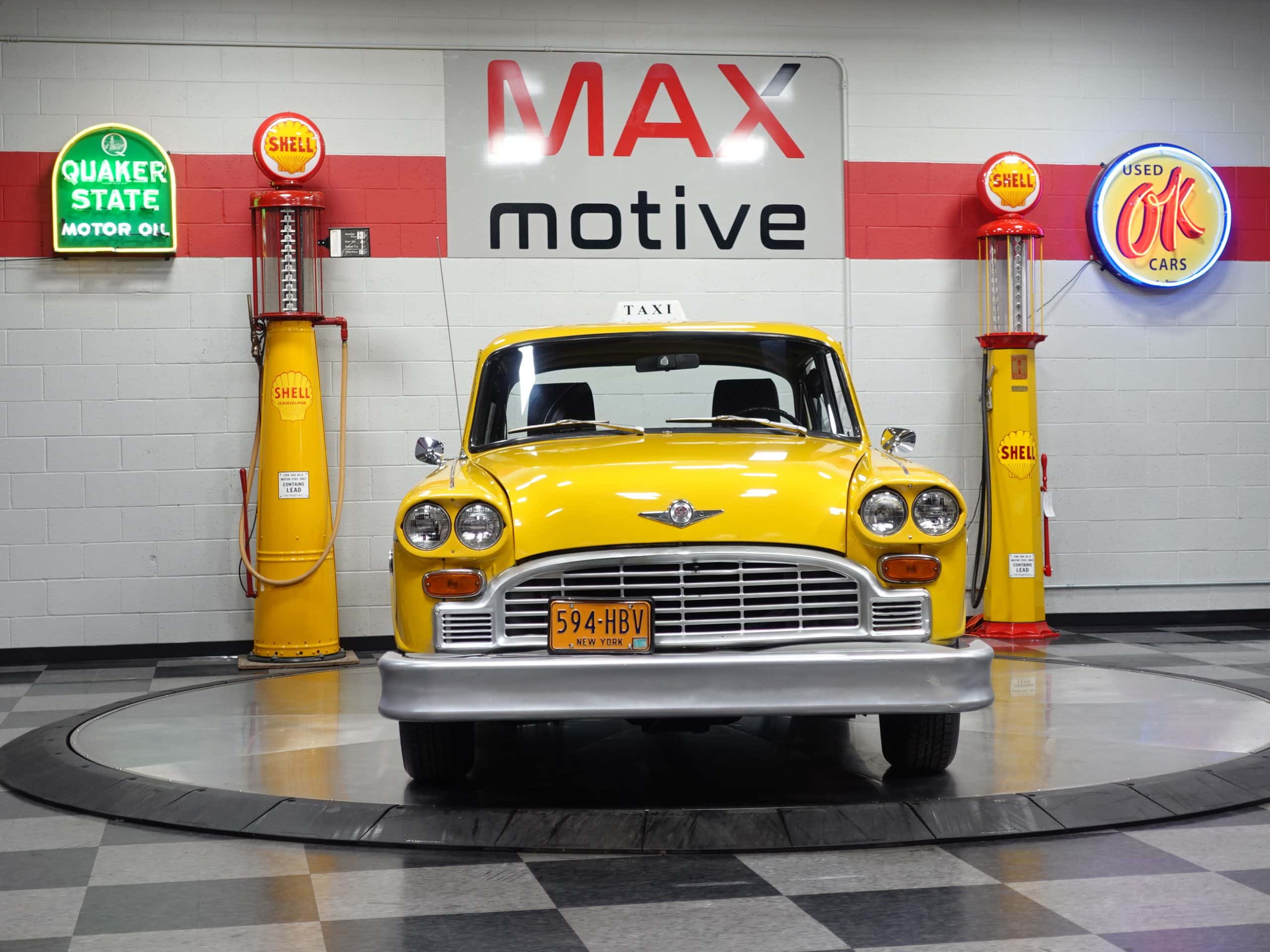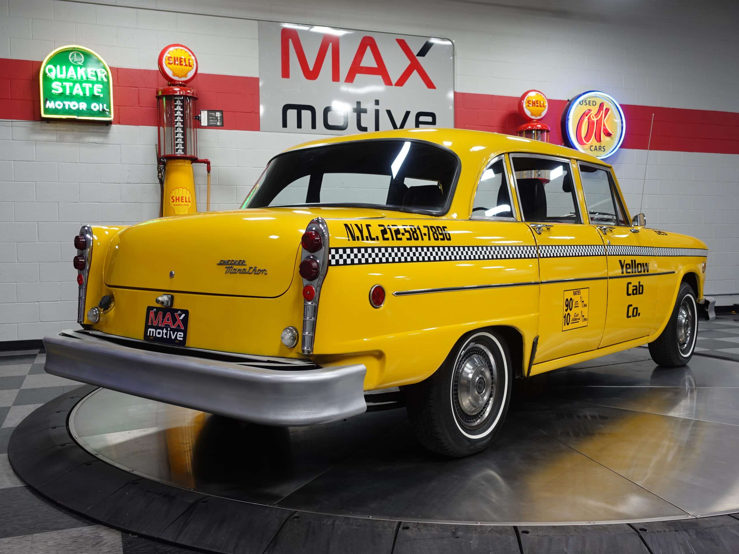 Fewer than 2000 Checker Marathons are said to exist today, due to their heavy duty work, famously as New York City taxicabs. This example was originally a personal vehicle of the president of the Yellow Cab Company, and has been preserved as an important part of automotive history. Marathon is an appropriate name for a vehicle with a truck-like body on frame construction and drivetrain components designed for high performance vehicles and trucks. The Turbo 400 automatic transmission and Dana 60 rear end are more than a match for the thrifty Chevrolet inline 6. Long hours of operation are easier with power steering and power front disc brakes. Actual taxi equipment including the Rockwell fare meter and Motorola two-way radio remain on board. The paint is Yellow Cab Yellow with authentic taxicab graphics. The cab rides on fresh Hankook white stripe radials. Many have asked for a no-frills car designed for durability. From 1961 to 1982 that car was the Checker Marathon. See the detailed photos at www.maxmotive.com.