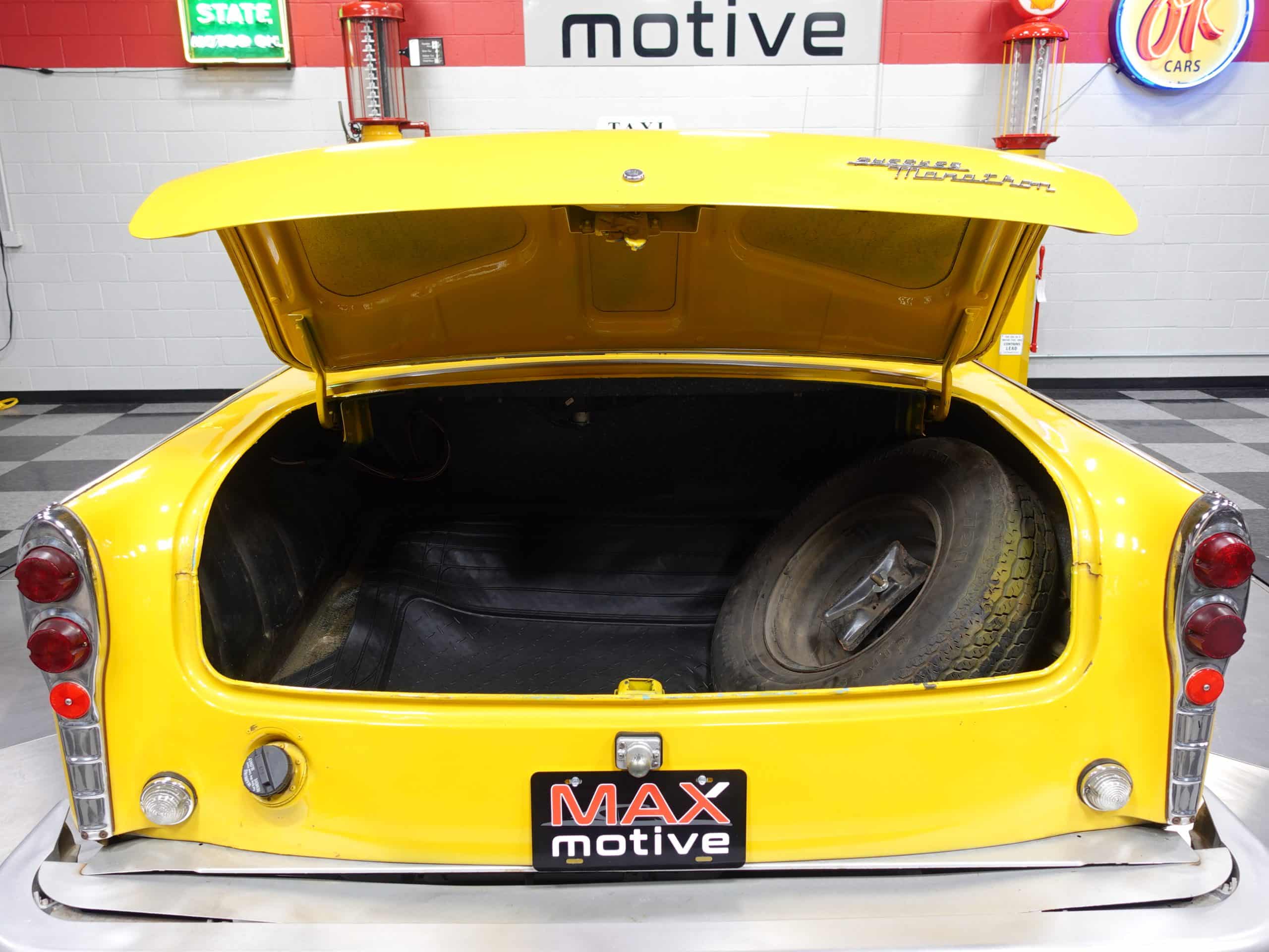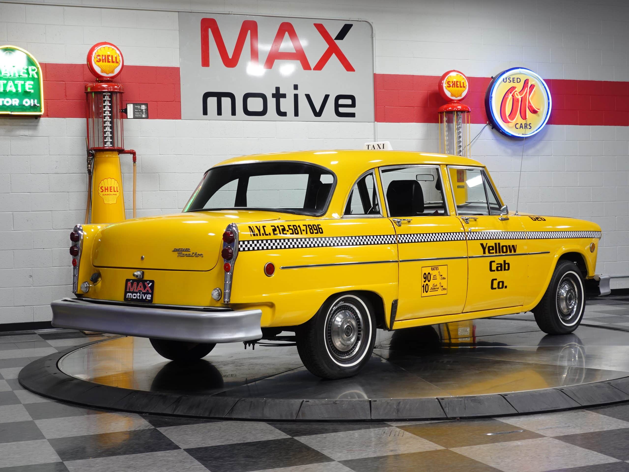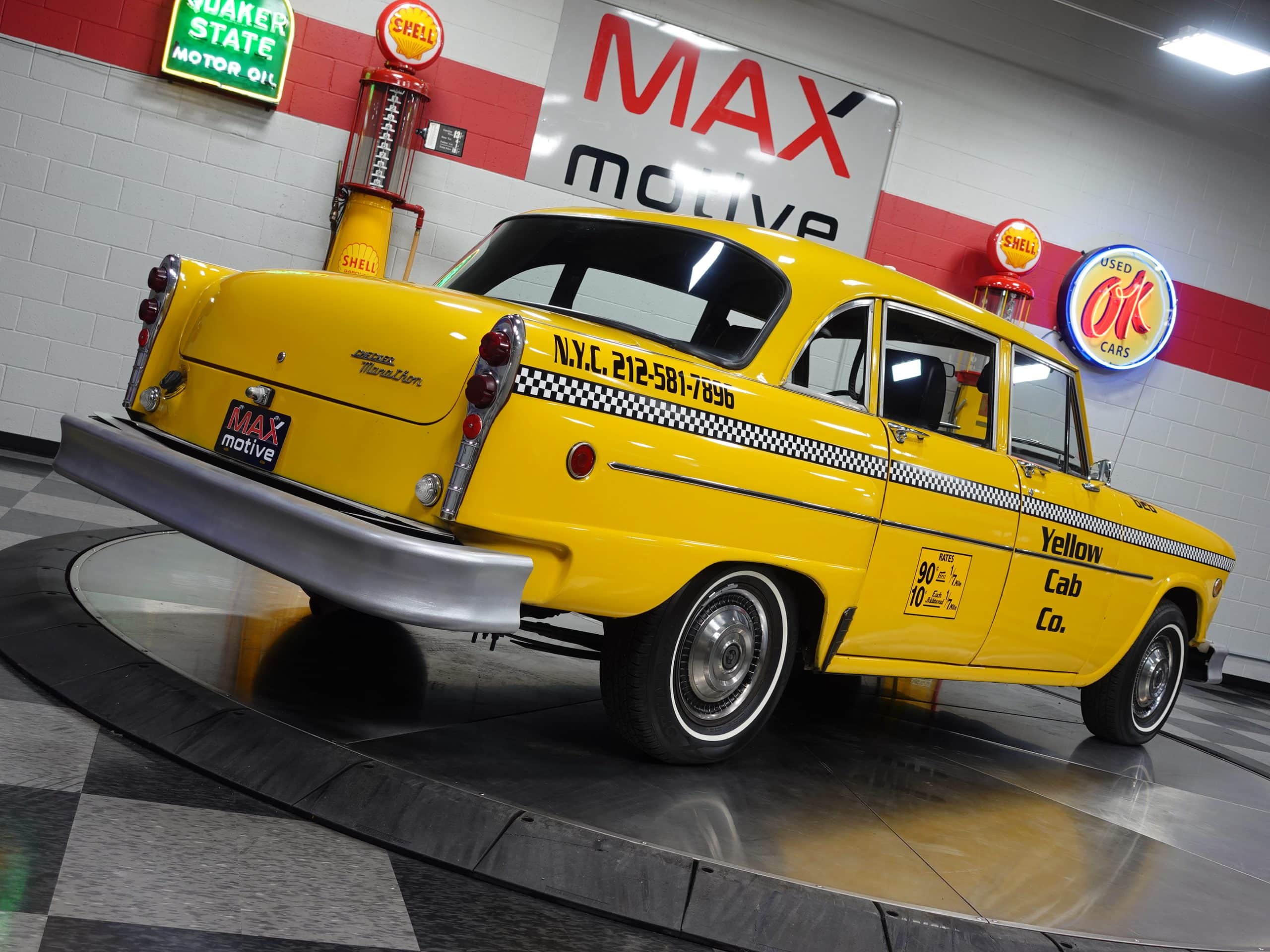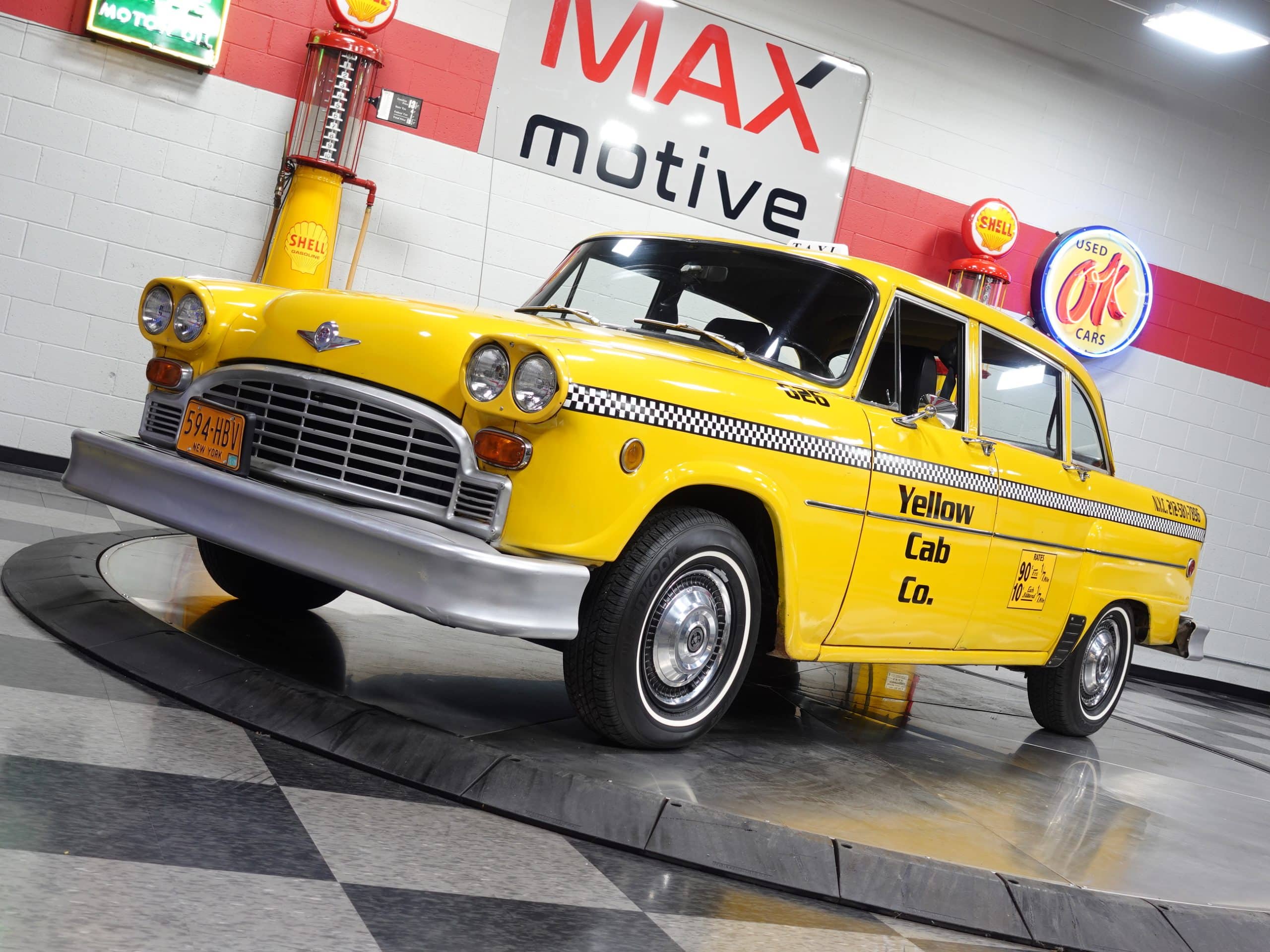 Fewer than 2000 Checker Marathons are said to exist today, due to their heavy duty work, famously as New York City taxicabs. This example was originally a personal vehicle of the president of the Yellow Cab Company, and has been preserved as an important part of automotive history. Marathon is an appropriate name for a vehicle with a truck-like body on frame construction and drivetrain components designed for high performance vehicles and trucks. The Turbo 400 automatic transmission and Dana 60 rear end are more than a match for the thrifty Chevrolet inline 6. Long hours of operation are easier with power steering and power front disc brakes. Actual taxi equipment including the Rockwell fare meter and Motorola two-way radio remain on board. The paint is Yellow Cab Yellow with authentic taxicab graphics. The cab rides on fresh Hankook white stripe radials. Many have asked for a no-frills car designed for durability. From 1961 to 1982 that car was the Checker Marathon. See the detailed photos at www.maxmotive.com.