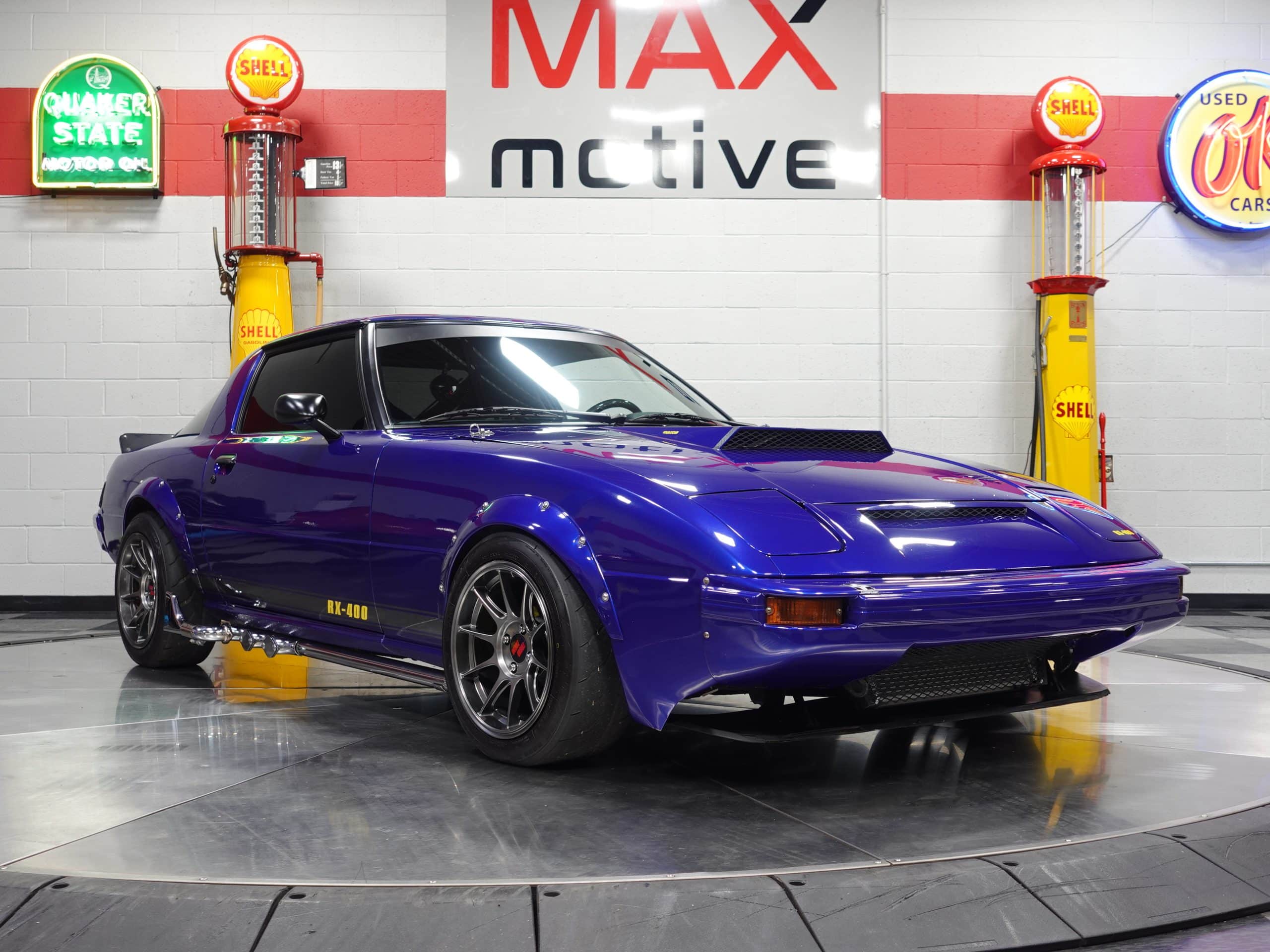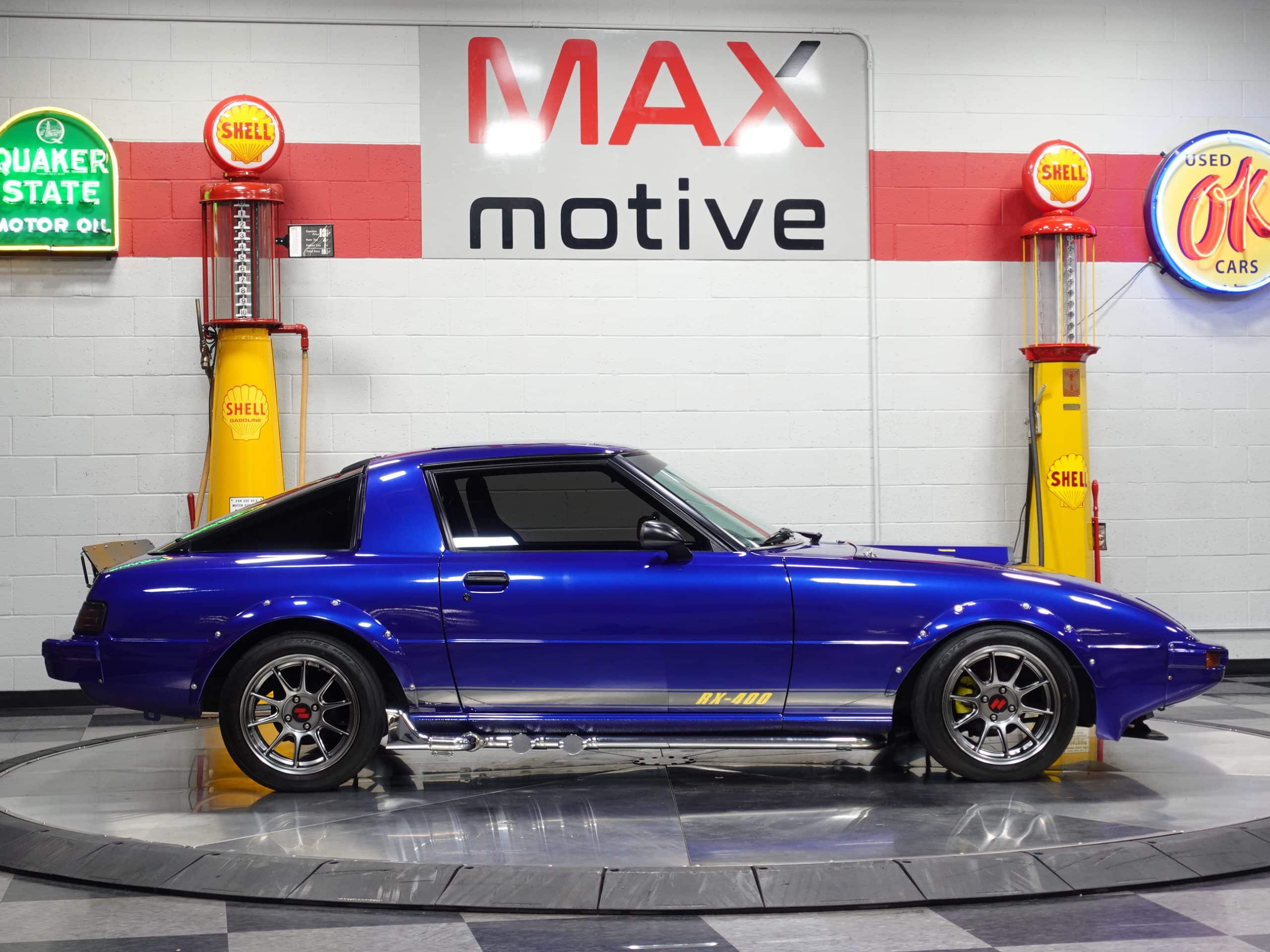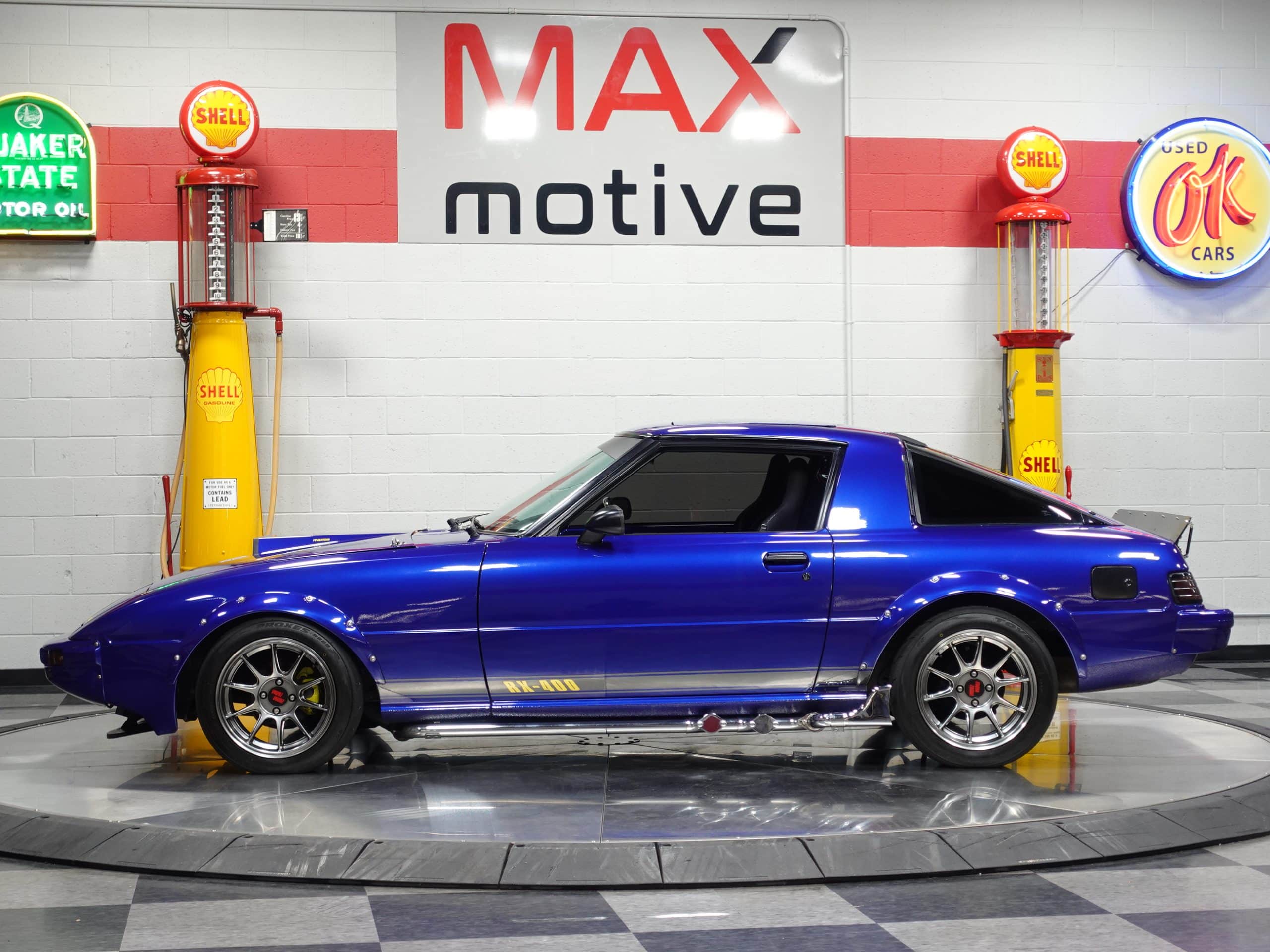MaxMotive is pleased to offer this ultra-sporty 1982 Mazda RX-7 from our Pittsburgh Showroom. The “ultra” comes courtesy of several performance enhancing ingredients including a 350 cubic inch crate motor, a Tremec 6-speed manual transmission, and even manual aluminum rear locking brakes, if you catch our drift. The 350 has a tried and true Holley 4-barrel on top along with Fast Burn aluminum heads. Exhaust exits via lake style Corvette side pipes with removable fish tails. The hydraulic clutch was rebuilt by the previous owner and a new throwout bearing installed. T3 coilovers provide added control. The car is equipped with professional level equipment such as Simpson bucket seats with 5-point harnesses, a roll cage, and a quick-release carbon fiber steering wheel. For non-side-pipe sounds, there are Boss Bluetooth speakers with a Kicker amplifier and a 10-inch subwoofer. Other nice details include the LED lights and turn signals and a handsome set of 15-inch aluminum wheels wrapped in Toyo performance tires. A quality build for cruising, drifting, or show, this 1982 Mazda RX-7 2D Coupe is ready to play. Please be sure to see the detailed photos at www.maxmotive.com.