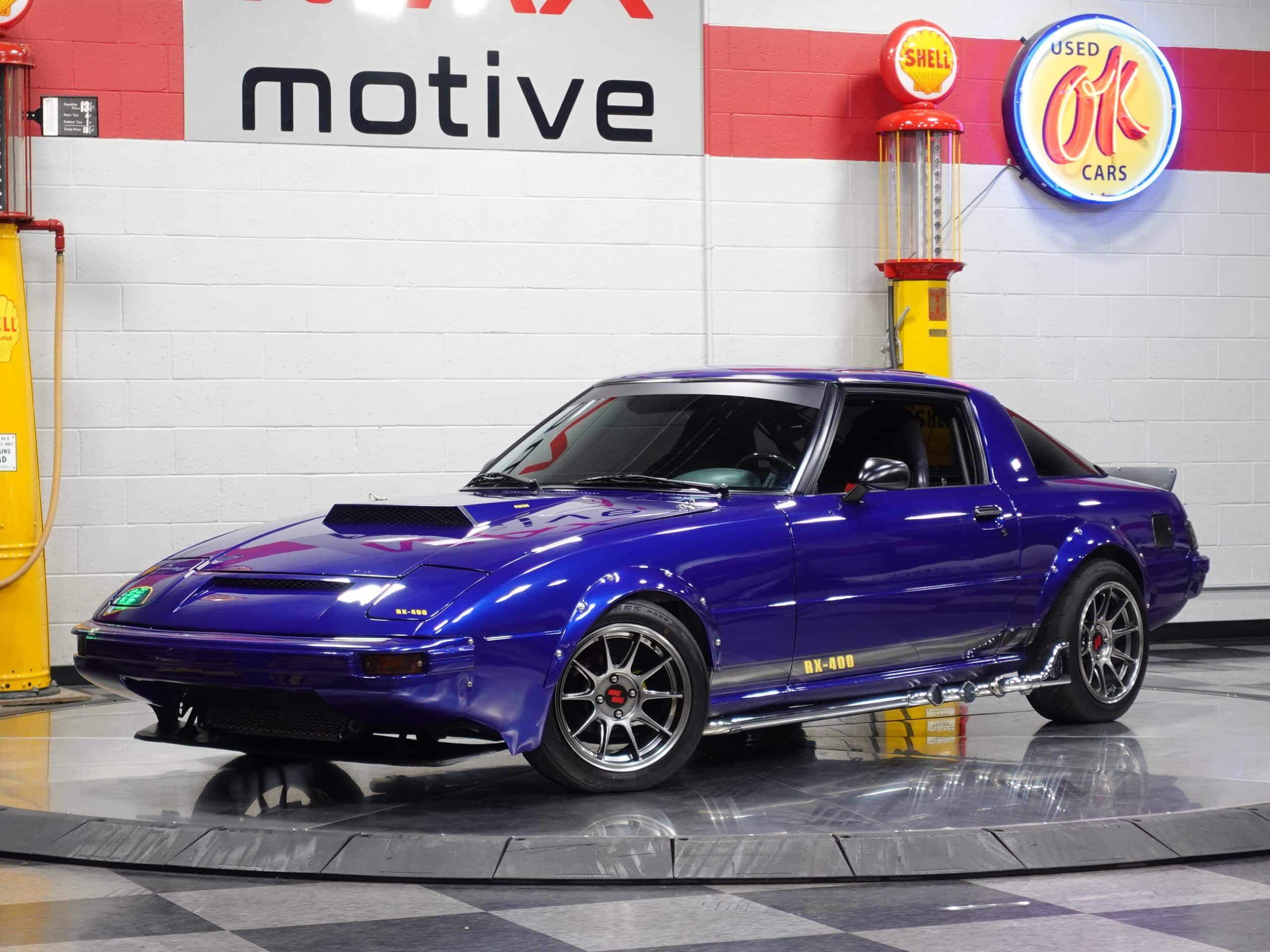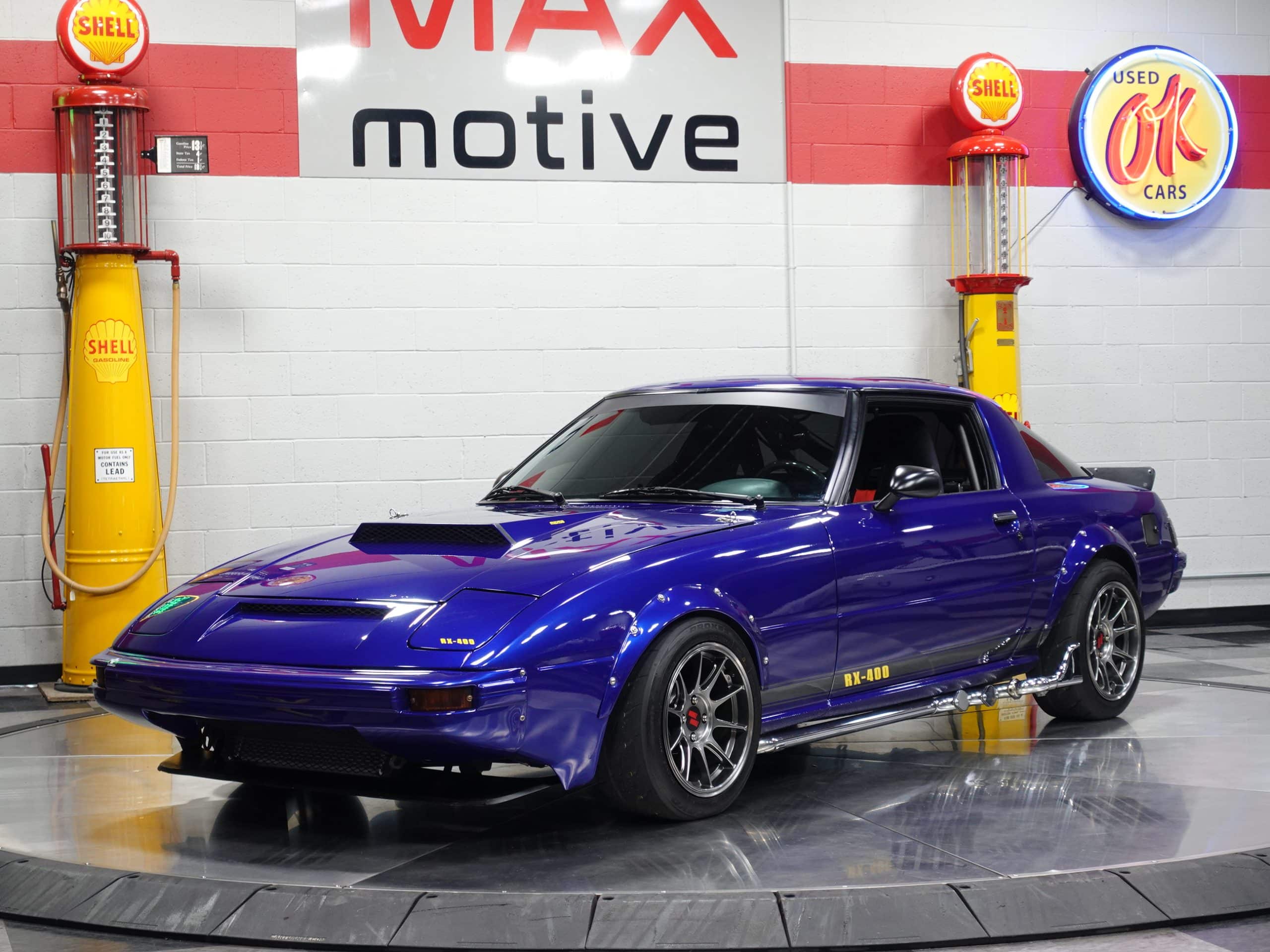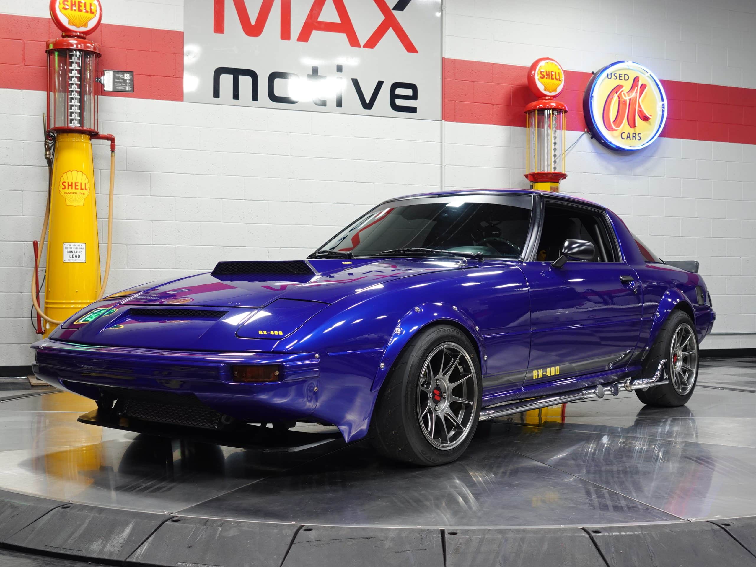 MaxMotive is pleased to offer this ultra-sporty 1982 Mazda RX-7 from our Pittsburgh Showroom. The “ultra” comes courtesy of several performance enhancing ingredients including a 350 cubic inch crate motor, a Tremec 6-speed manual transmission, and even manual aluminum rear locking brakes, if you catch our drift. The 350 has a tried and true Holley 4-barrel on top along with Fast Burn aluminum heads. Exhaust exits via lake style Corvette side pipes with removable fish tails. The hydraulic clutch was rebuilt by the previous owner and a new throwout bearing installed. T3 coilovers provide added control. The car is equipped with professional level equipment such as Simpson bucket seats with 5-point harnesses, a roll cage, and a quick-release carbon fiber steering wheel. For non-side-pipe sounds, there are Boss Bluetooth speakers with a Kicker amplifier and a 10-inch subwoofer. Other nice details include the LED lights and turn signals and a handsome set of 15-inch aluminum wheels wrapped in Toyo performance tires. A quality build for cruising, drifting, or show, this 1982 Mazda RX-7 2D Coupe is ready to play. Please be sure to see the detailed photos at www.maxmotive.com.