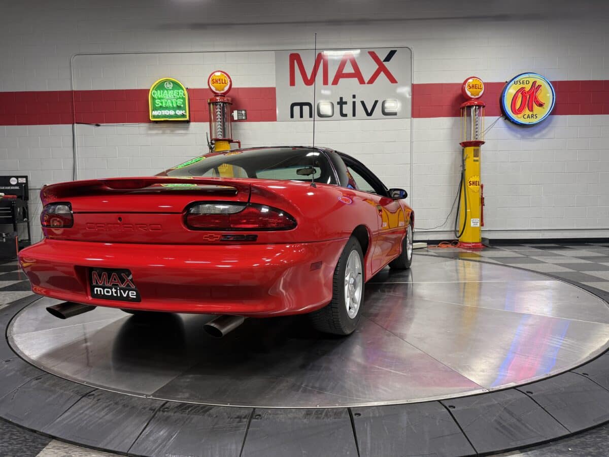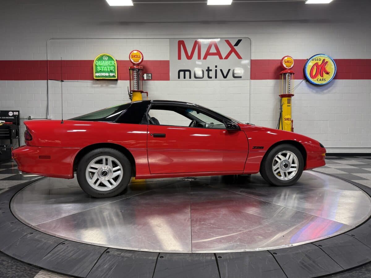 Maxmotive is proud to present this very low mileage 1996 Camaro Z-28. This stunner presents itself very well in its original condition. The current owner has preserved and enjoyed the Camaro for the last 10 years or so, and it is now ready for its next owner and chapter to start. The red paint is still nice and glossy, and the interior’s shape shows the level of care and preservation this Camaro has been under. The plastic original upper dash pad is still intact showing how much garage time this Camaro received. This Camaro was equipped from the factory with factory T-Tops, power windows and mirrors, cruise control, and a Bose CD player. The 16” aluminum double spoke rims give the Camaro the appropriate stance, but the LT1 V-8 engine is still fully ready and capable of roasting the rear tires. The factory original window sticker is included as well. The air conditioning compressor spins freely, but the A/C does not blow cold. The passenger window motor can be lazy going up. You can see more pictures and videos at www.maxmotive.com