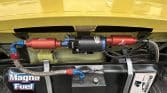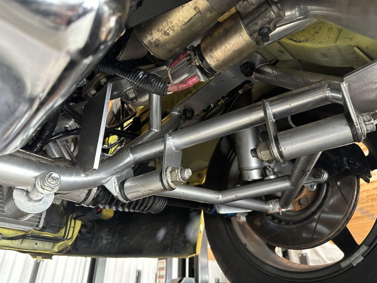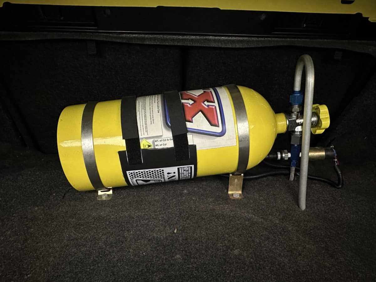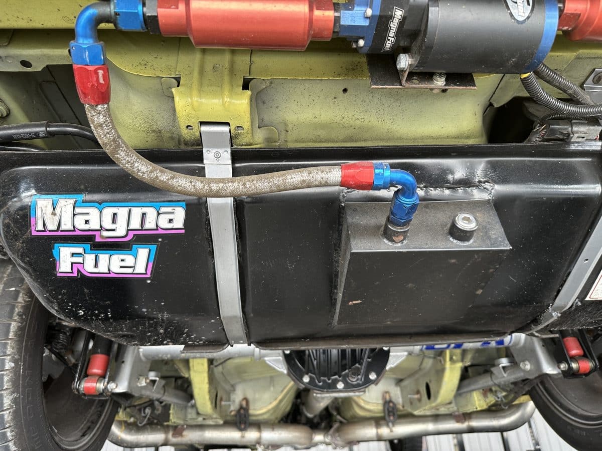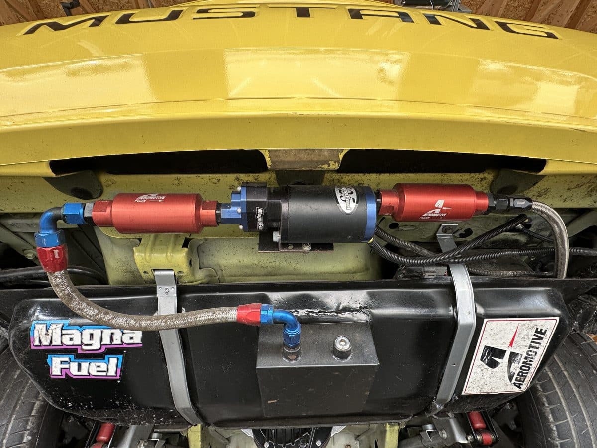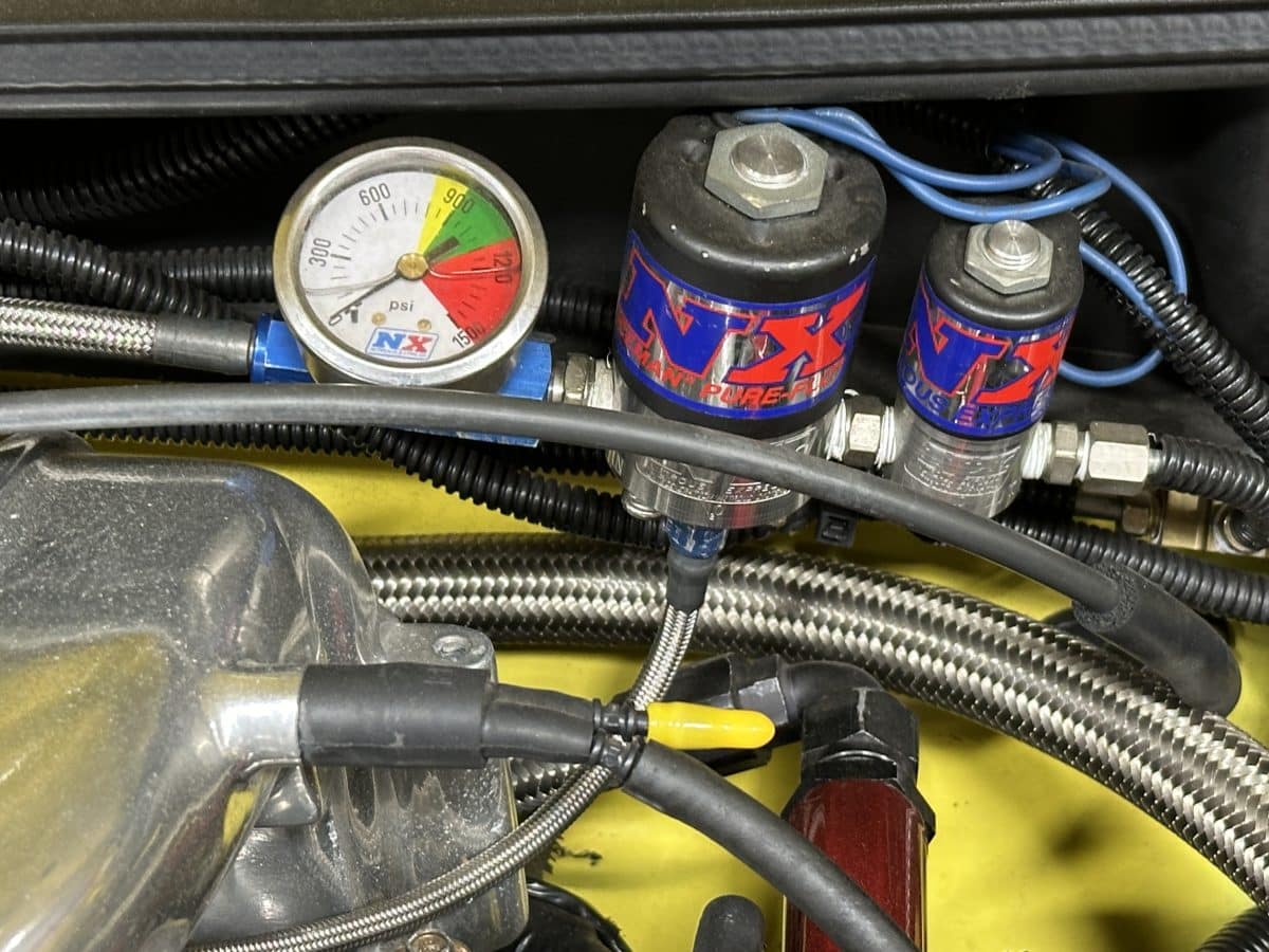 This thoroughly tricked out 2000 Ford Mustang GT Coupe is now available at MaxMotive. With special equipment ranging from NX nitrous oxide to a tubular front suspension, the car is sorted out and ready for action. A fully forged shortblock from Modular Motorsports Racing with an upgrade to ARP main studs provides a solid foundation. It’s the MMR Street Mod 900 SE 4.75 L Stroker. Also on board is a Stage 3X MMR S/C cam plus an MMR stainless SOHC valve kit. Chassis mods include tubular a-arms and Lakewood coilovers. Rolling stock consists of Continental ExtremeContact DW ultra performance 3-season tires in the rear, size 285/40ZR17 and trick M&H Racemaster fronts, 185/55R17, on staggered blacked-out Race Star five-spoke alloy wheels. It comes with an SCT tuner, a pillar mounted fire bottle, plus an AutoMeter Carbon Fiber Monster Tach with shift light and AutoMeter auxiliary gauges.