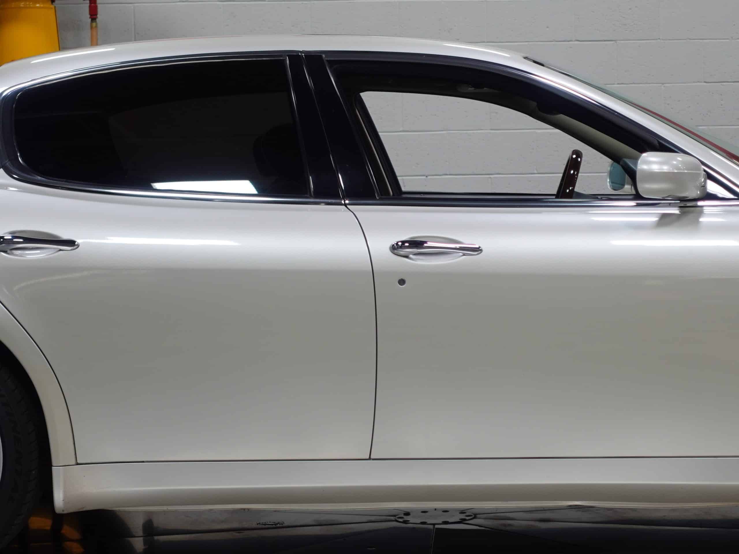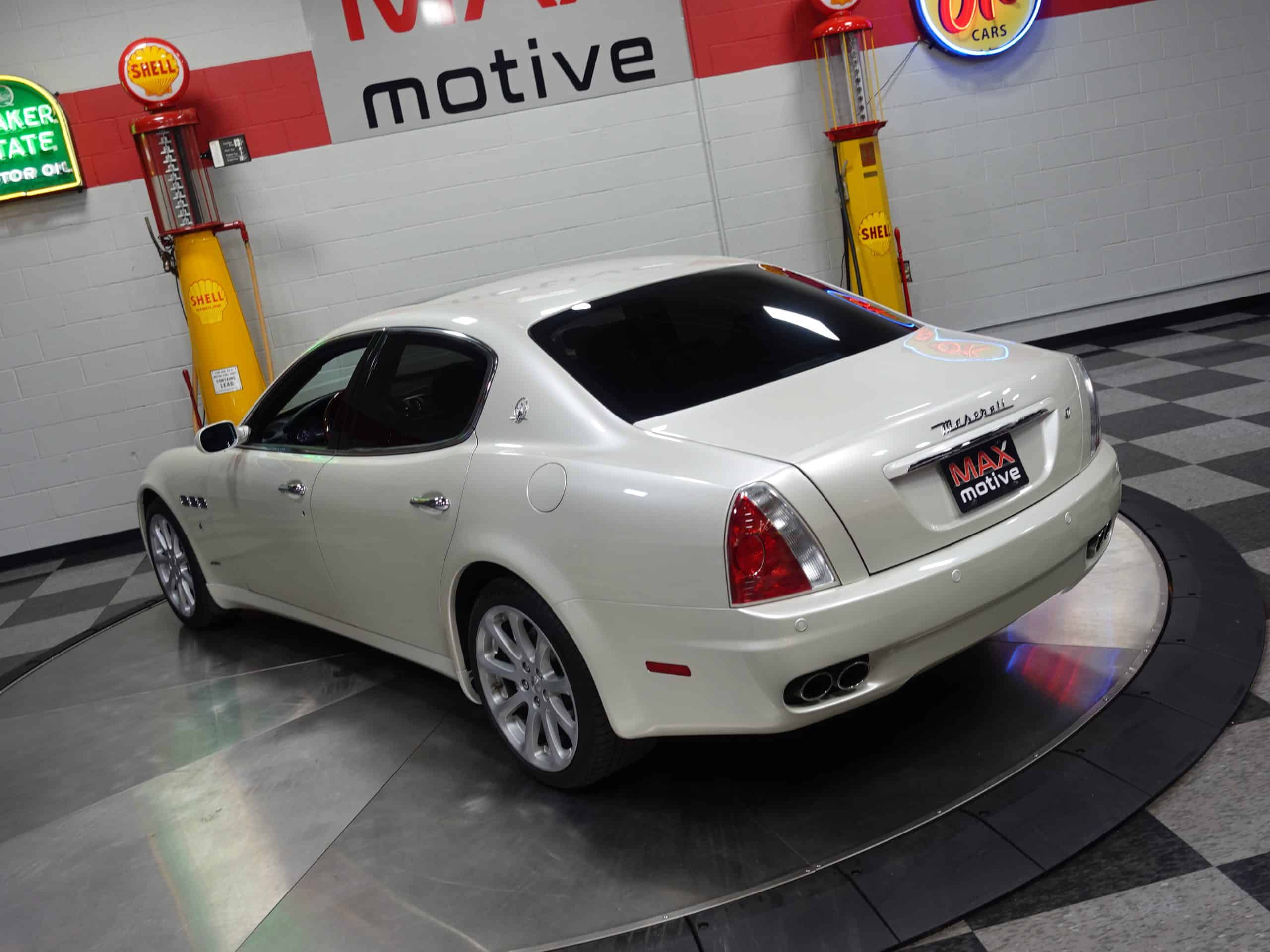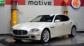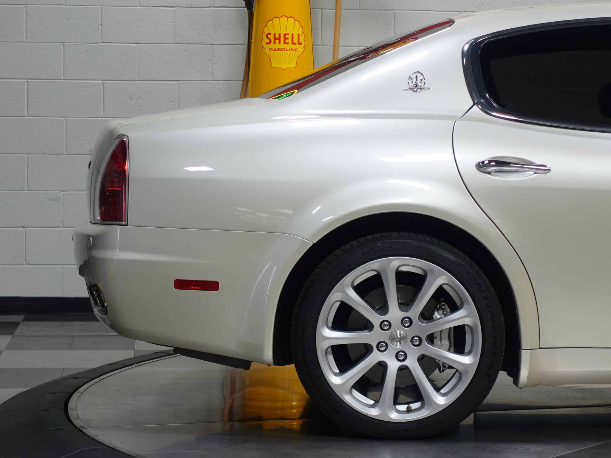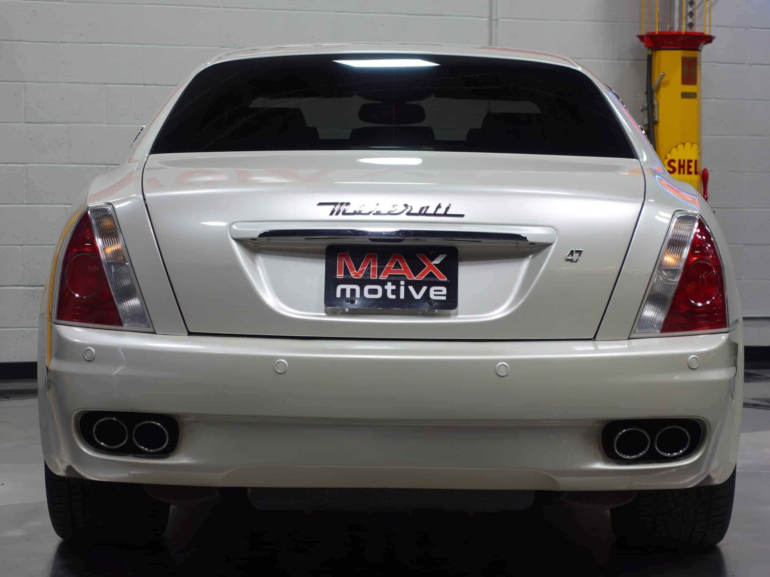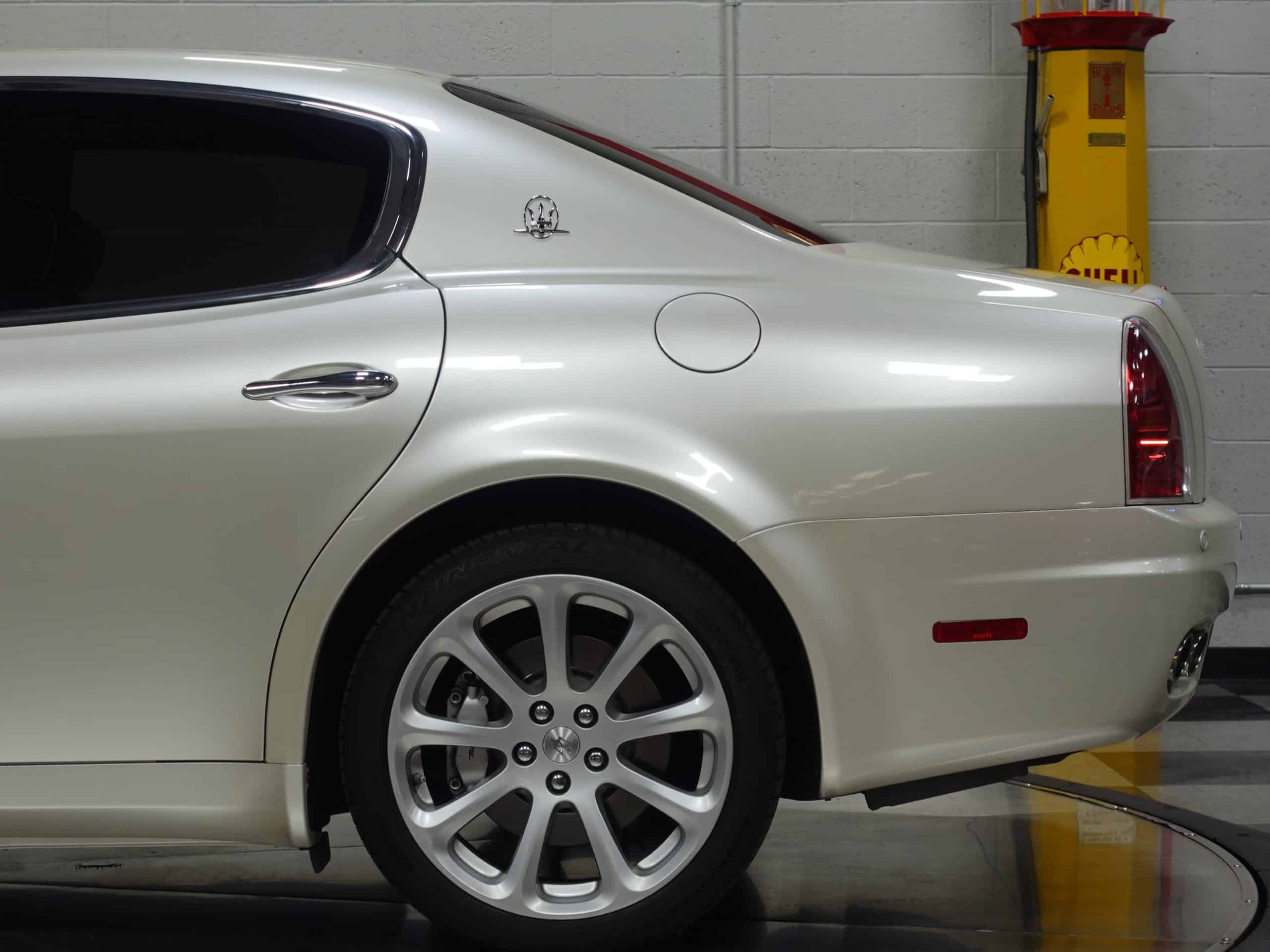 This is a 2008 Maserati Quattroporte Executive GT Sedan, which is now available from the MaxMotive Pittsburgh Showroom. Smooth power delivery comes courtesy of 2008’s newly developed 4.7L 4-valve V8 generating 439 horsepower. A ZF sourced electronic automatic gearbox features 6 speeds, sport mode, Ice (low grip) mode, and manual mode. The car shows off the unique Bianco Fuji Pearlescent exterior paint in combination with the Blu Navy leather interior. Special features include power seats front AND rear, navigation, electronic climate control front and rear, and a Bose digital sound system with automatic equalization that will also compensate for ambient noise reaching the cabin. The rear seat passengers can also regulate the climate in the rear of the cabin. Rich wood trim highlights the interior as well. 19-inch aluminum wheels are wrapped in staggered Continental Extreme Contact tires with massive 285/35ZR19s in the rear. Included is the Original Owner’s Package, the original tire inflator kit, and the original tool kit. A true Gran Turismo, this 2008 Maserati Quattroporte Executive GT Sedan represents a formidable combination of high-end luxury and sports car performance. Please be sure to see the detailed photos and videos at www.maxmotive.com.