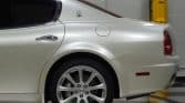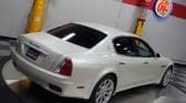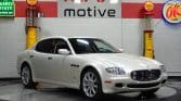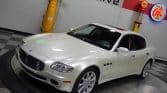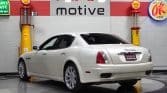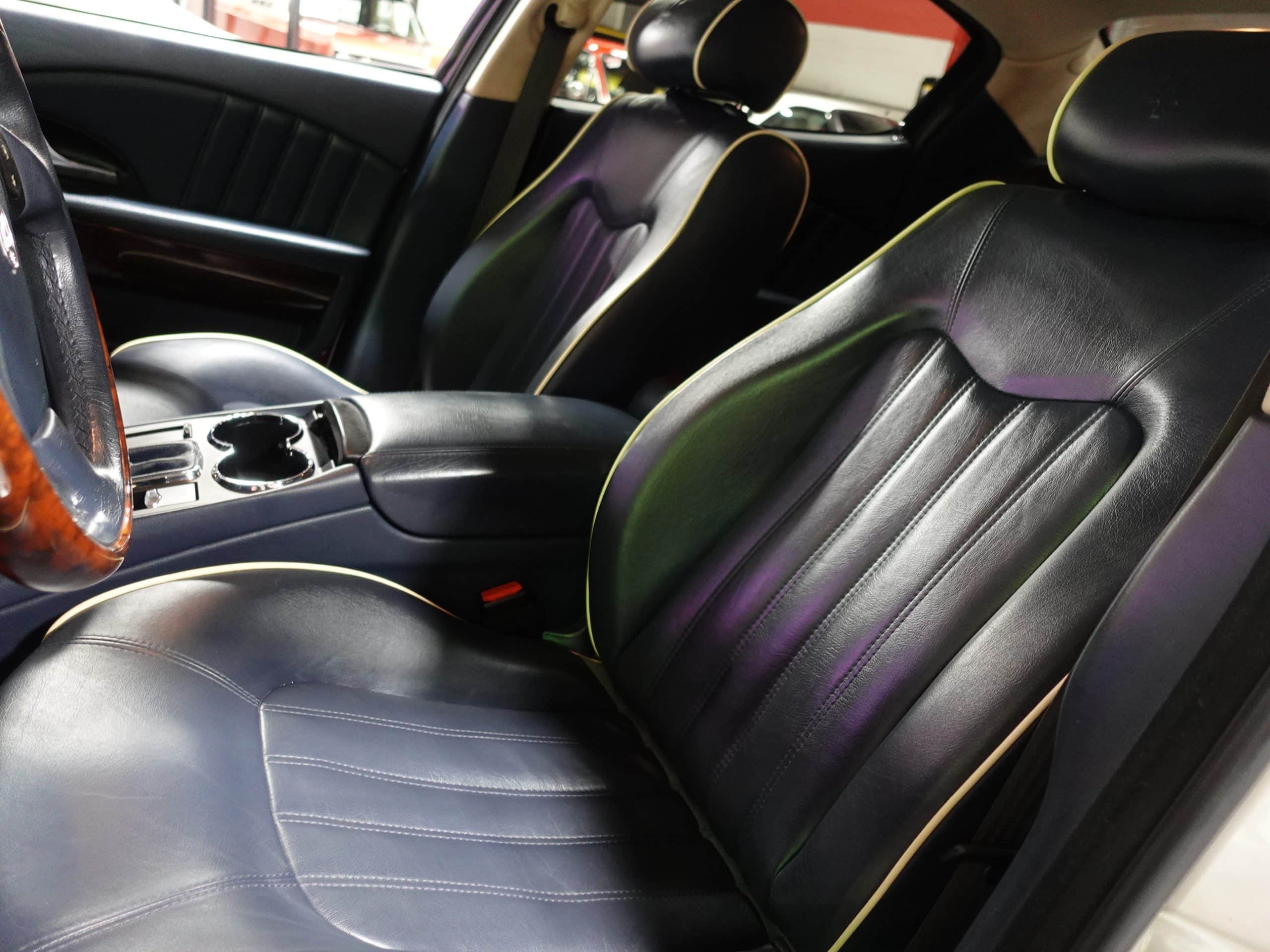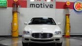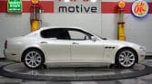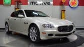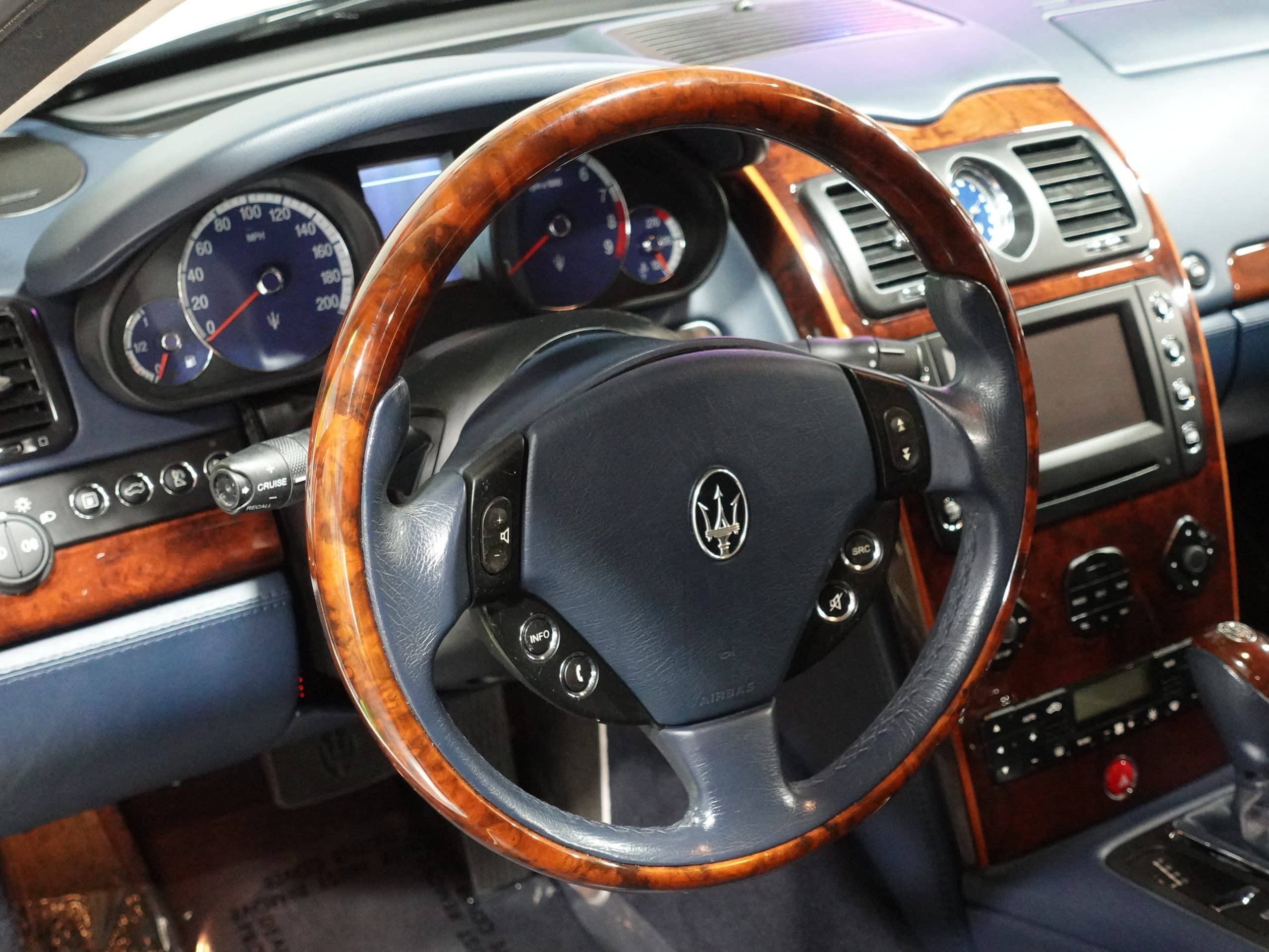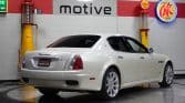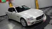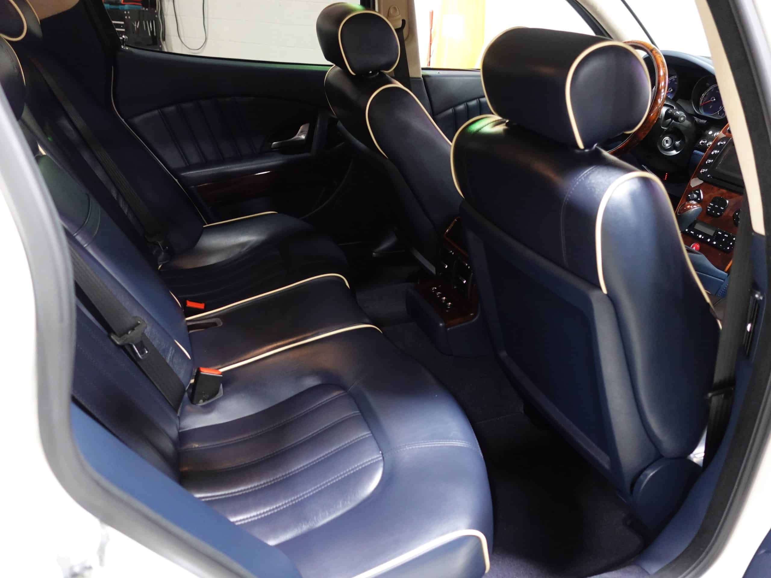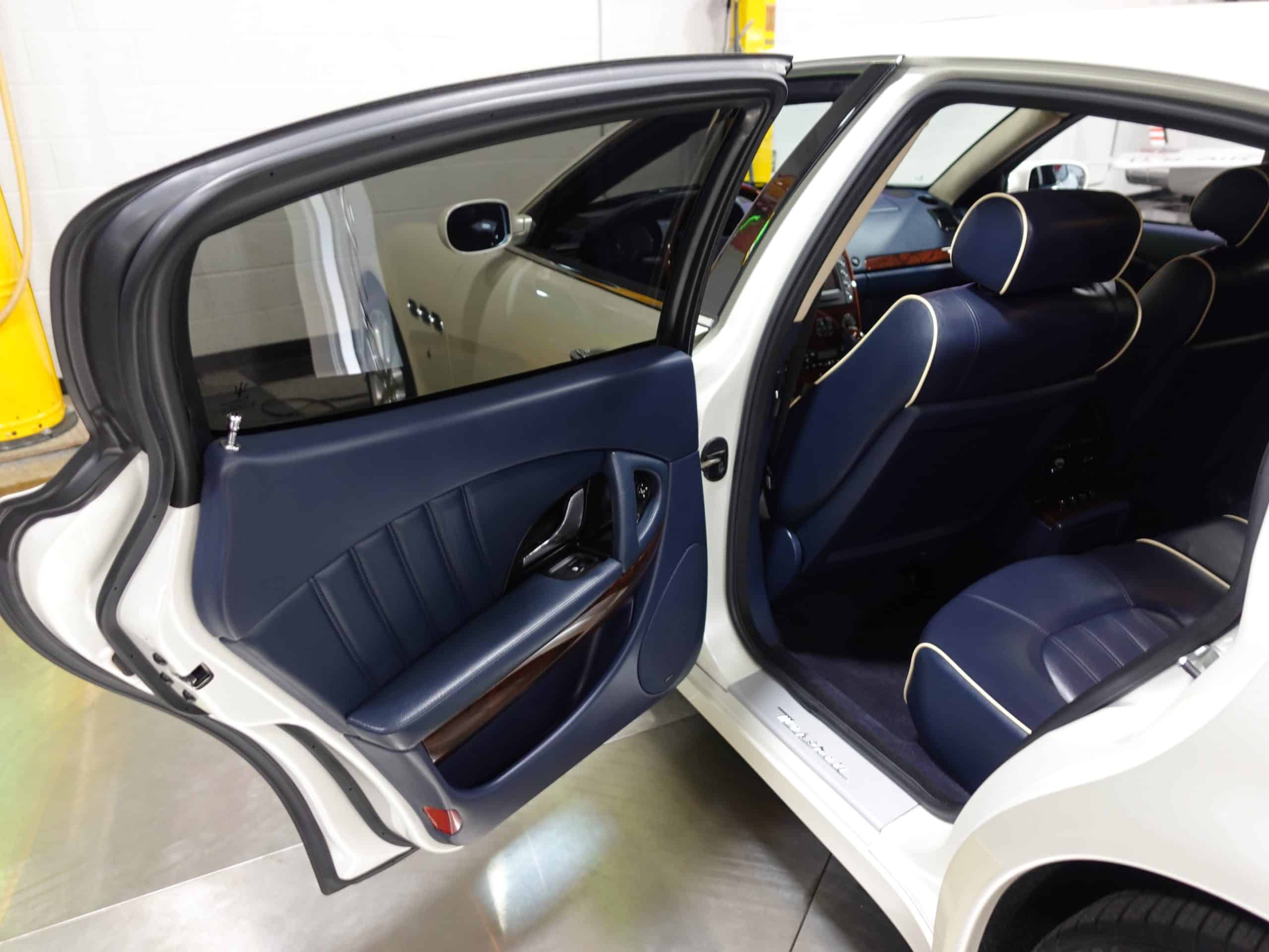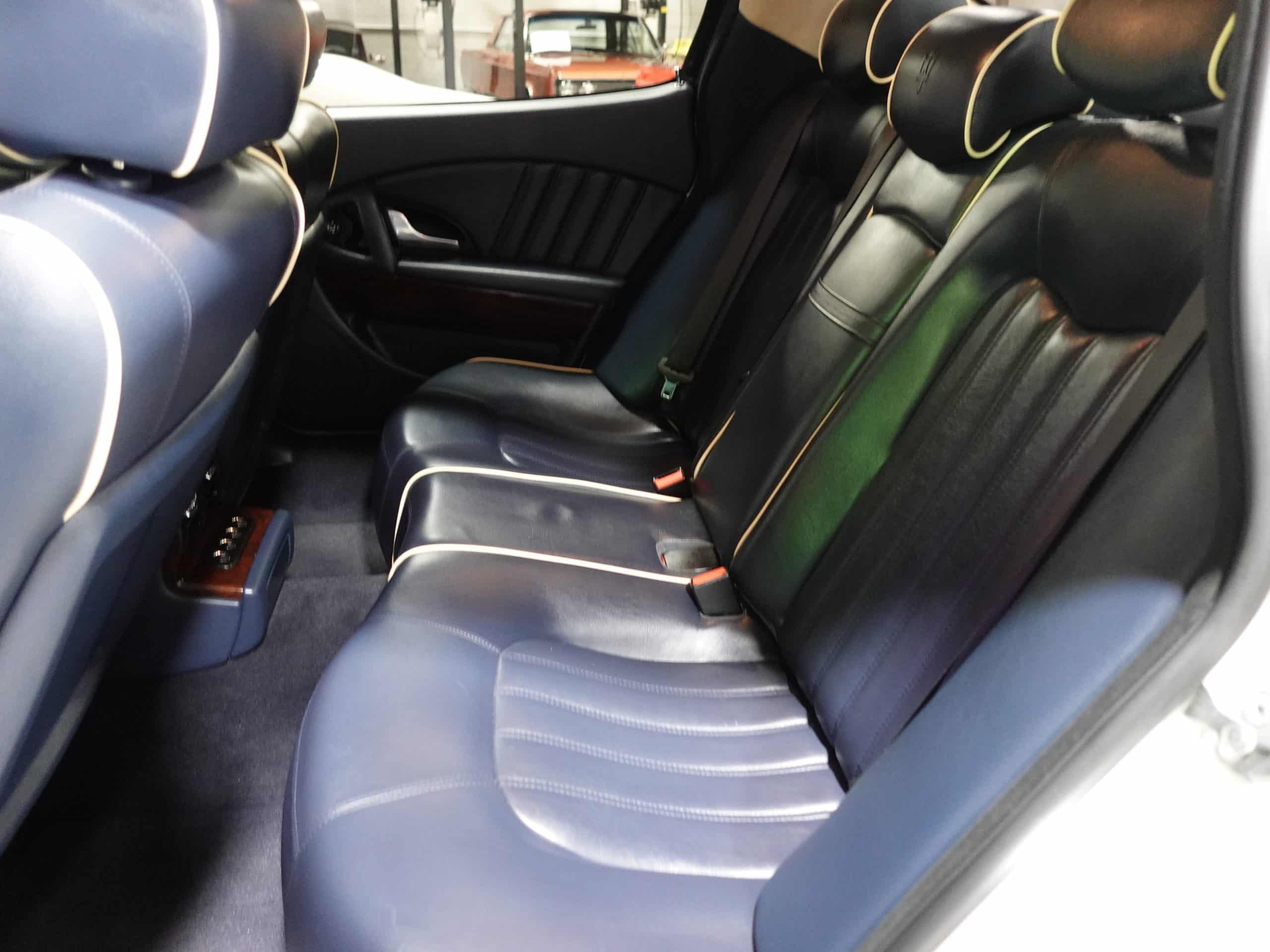 This is a 2008 Maserati Quattroporte Executive GT Sedan, which is now available from the MaxMotive Pittsburgh Showroom. Smooth power delivery comes courtesy of 2008’s newly developed 4.7L 4-valve V8 generating 439 horsepower. A ZF sourced electronic automatic gearbox features 6 speeds, sport mode, Ice (low grip) mode, and manual mode. The car shows off the unique Bianco Fuji Pearlescent exterior paint in combination with the Blu Navy leather interior. Special features include power seats front AND rear, navigation, electronic climate control front and rear, and a Bose digital sound system with automatic equalization that will also compensate for ambient noise reaching the cabin. The rear seat passengers can also regulate the climate in the rear of the cabin. Rich wood trim highlights the interior as well. 19-inch aluminum wheels are wrapped in staggered Continental Extreme Contact tires with massive 285/35ZR19s in the rear. Included is the Original Owner’s Package, the original tire inflator kit, and the original tool kit. A true Gran Turismo, this 2008 Maserati Quattroporte Executive GT Sedan represents a formidable combination of high-end luxury and sports car performance. Please be sure to see the detailed photos and videos at www.maxmotive.com.