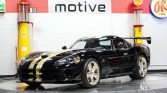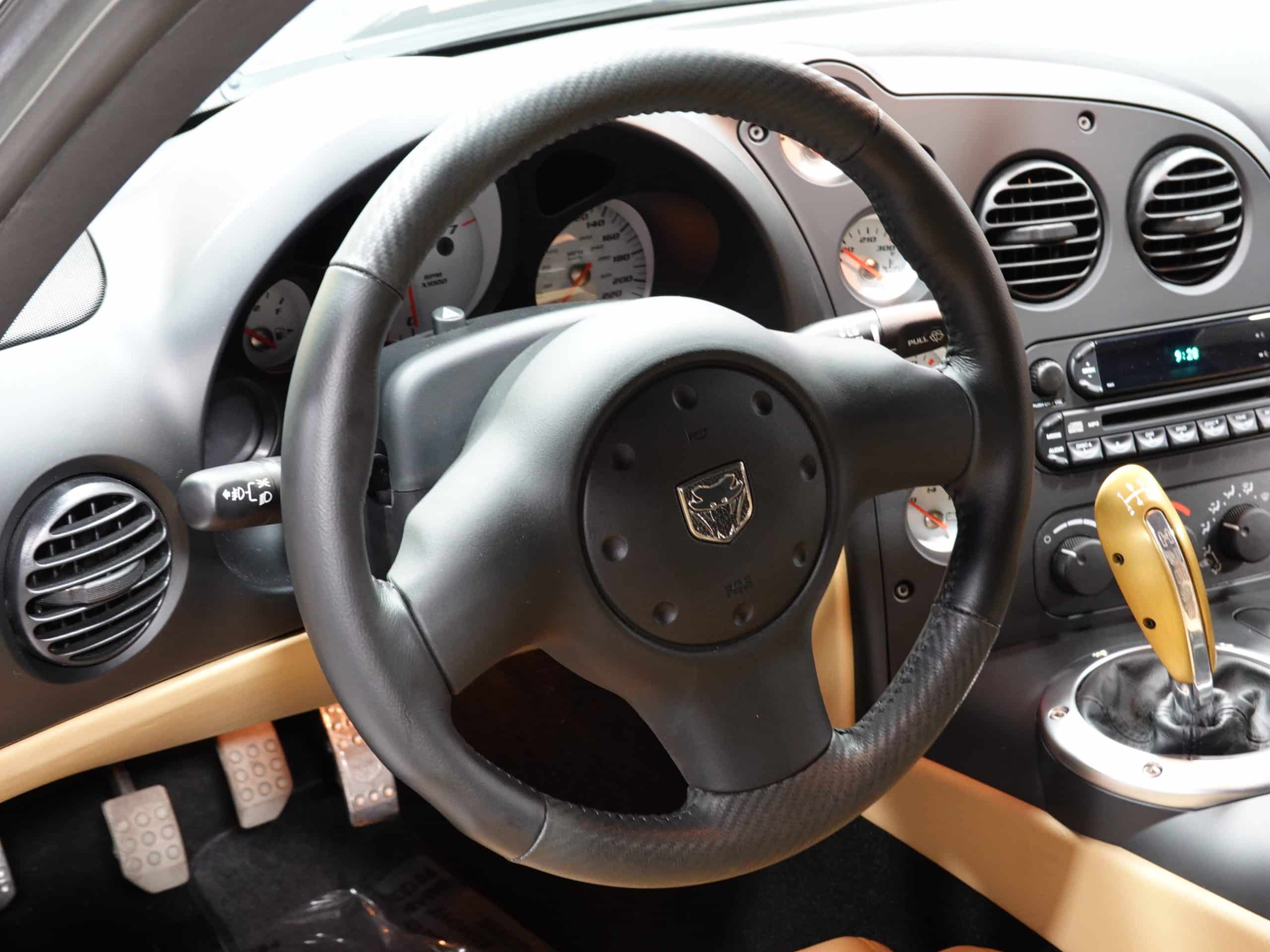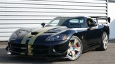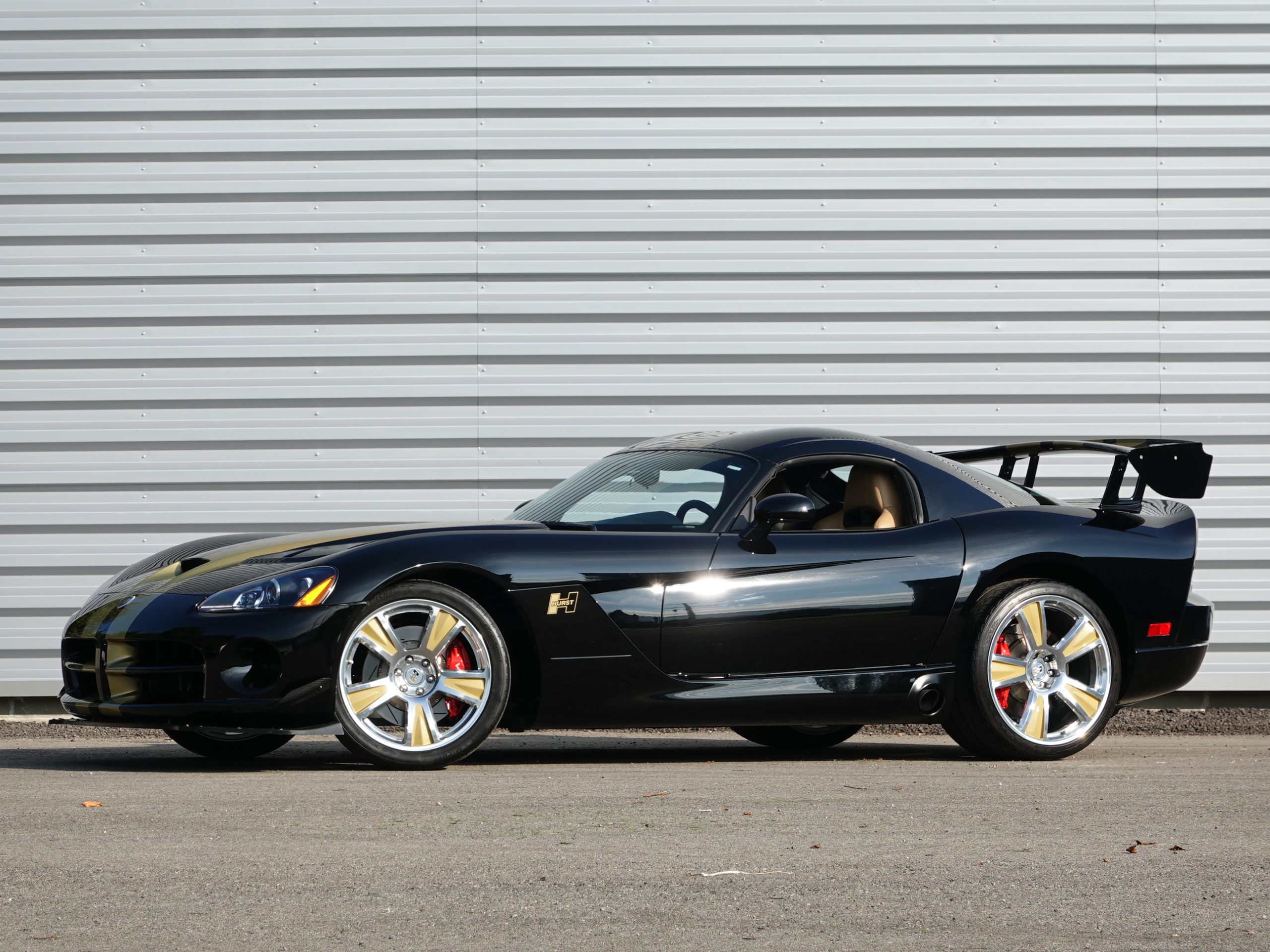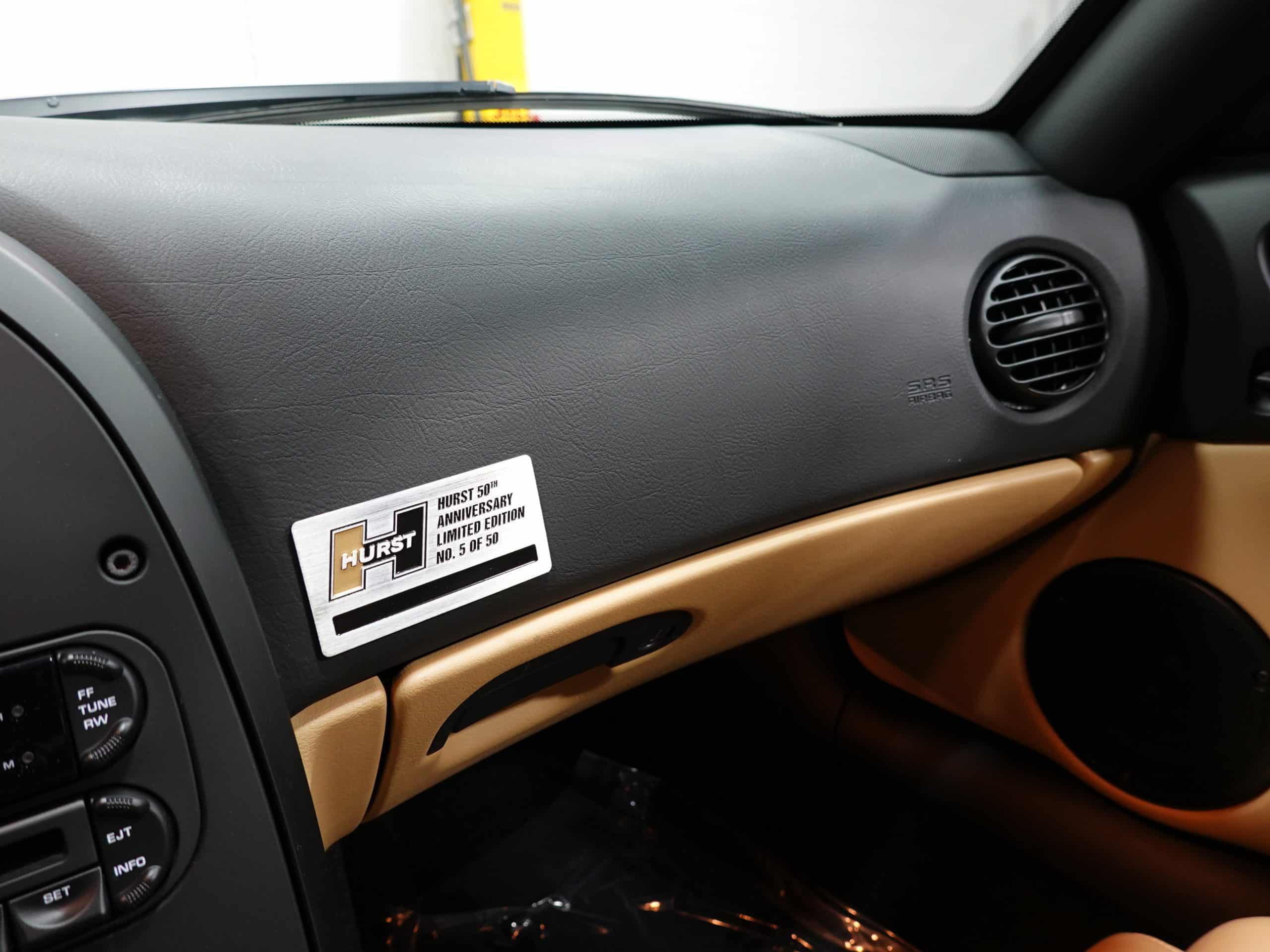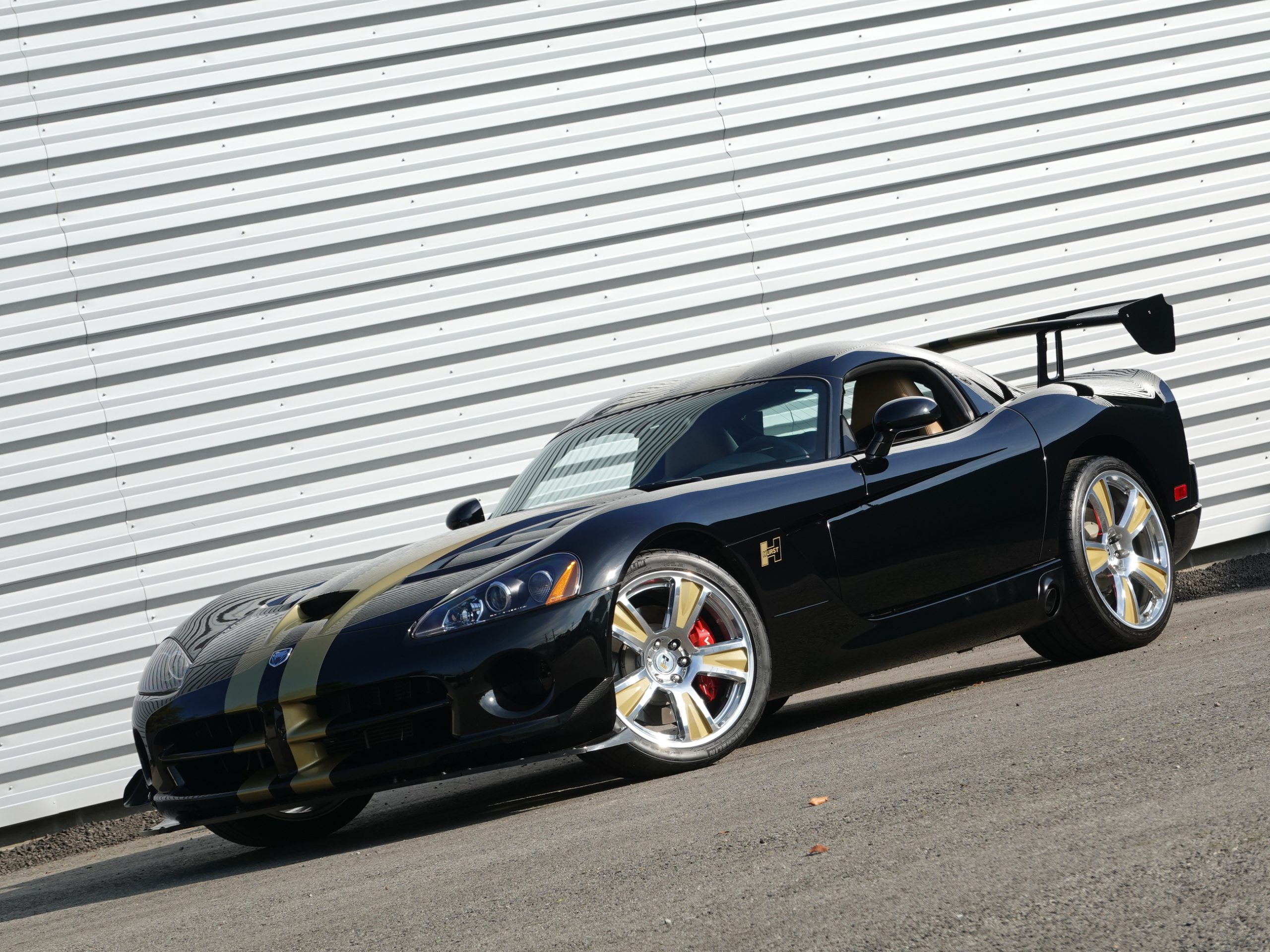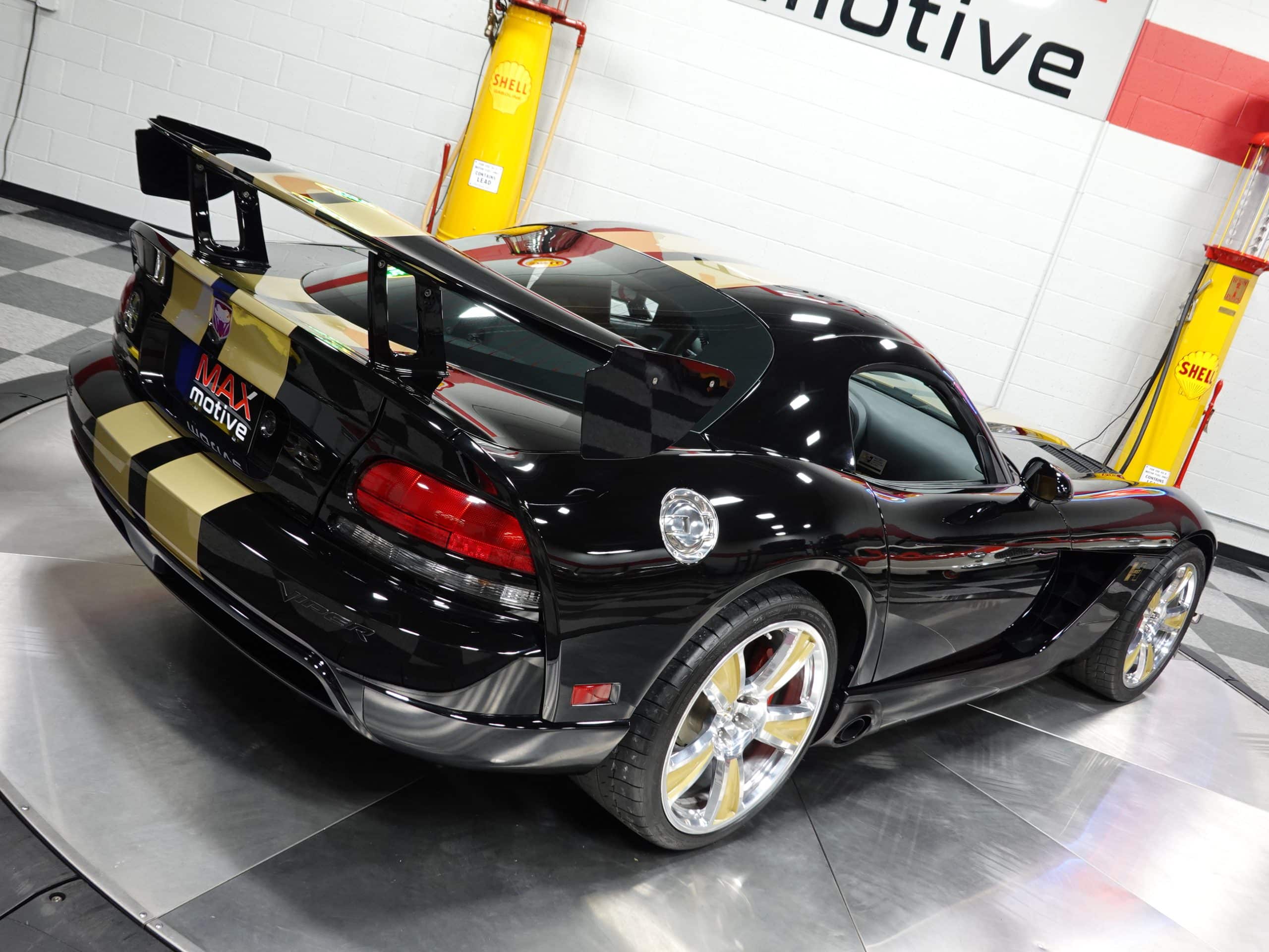 This certified one of one 50th Anniversary Hurst 2009 Dodge Viper SRT10 ACR is now available from MAXmotive as part of an exclusive Last Call Collector Bundle. This special collector package includes this Hurst Viper, a 2018 Challenger SRT Demon with Demon Crate, a Last Call (1 of 300) 2023 Dodge Charger King Daytona, Last Call 2023 Dodge Challenger R/T Scat Pack Widebody Shakedown, and a Last Call 2023 Dodge Challenger Black Ghost (1 of 300). The Viper is the last of just five 2009 Hurst Vipers produced and the only ACR Viper to receive the Hurst Package. The result is a stunning and formidable Viper Black coupe with Hurst gold LeMans stripes and matching gold-trimmed Hurst polished aluminum wheels. A proud part of the MAXmotive collection, this excellent example has had just one previous owner and was driven only 1460 miles. It comes with its original factory window sticker and a Certificate of Authenticity from Hurst Performance Vehicles, along with correspondence from Hurst in Irvine CA verifying the uniqueness of this special car. The now-legendary 8.4 litre aluminum V-10 engine pumps out a lusty 600 horsepower through a 6-speed Tremec gearbox. A special feature is the Hurst shifter, which facilitates the fastest and smoothest gear changes any driver can dish out. The ACR is built to go where it’s pointed. It generates more than 1000 pounds of downforce from its adjustable carbon fiber wing and carbon fiber front splitter at 150mph — according to Motor Trend, this is ten times the downforce of a non-ACR coupe. Even at 50 mph, there are significant aero advantages. The tires are up to the task as well. They are massive Michelin Pilot Sports with 295/30ZR19s in front and 335/25ZR20s (!) in the rear. Two-piece, lightweight, slotted brake rotors complete the ACR package along with a stiffened front stabilizer bar. More documentation includes the original bill of sale, factory assembly stickers, and service receipts. This ultra performance, highly collectible 2009 50th Anniversary Hurst Dodge Viper SRT10 ACR is a rare opportunity to own a one-of-a-kind Hurst vehicle that was, in fact, the last Hurst vehicle of any type produced in Irvine CA. Please see the detailed photos at www.maxmotive.com.