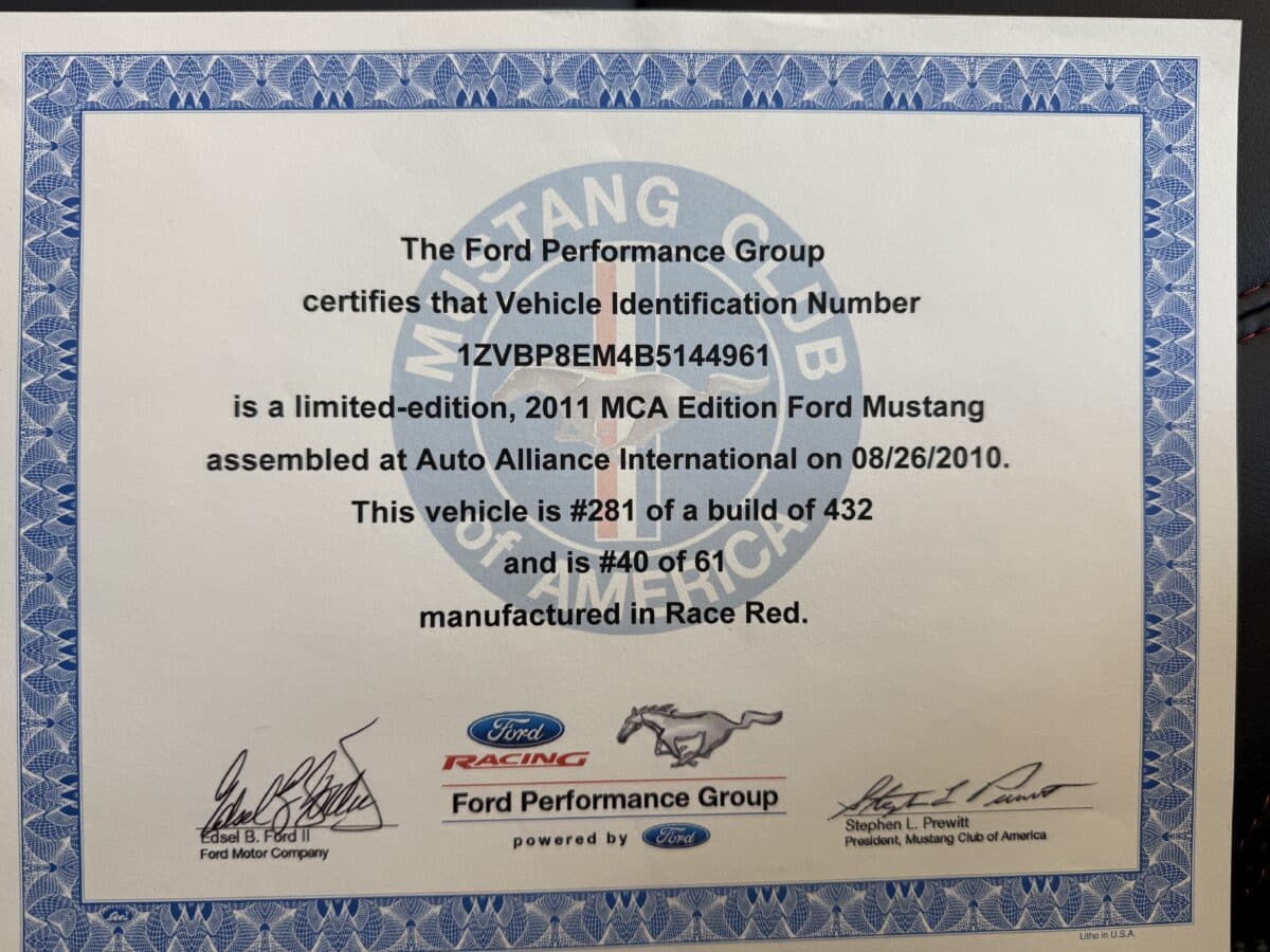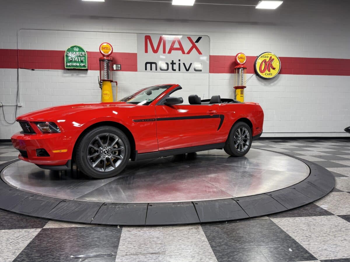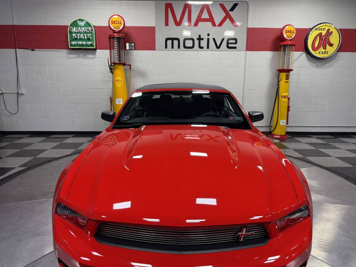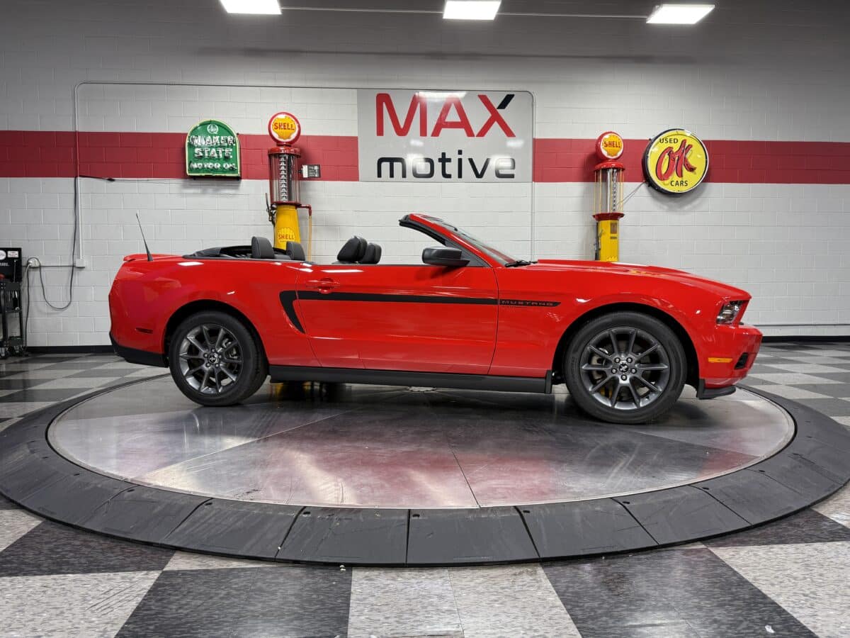 Maxmotive is proud to offer this incredibly low mileage, very well taken care of survivor Mustang. This 2011 Mustang came from the factory with the 3.7L Cyclone V-6 engine paired with a 6 speed automatic transmission. The Mustang has only, 4,353 miles on the car. When this Mustang was built, it was tastefully loaded up with leather seats, power top, Shaker sound system, steering wheel audio controls, and a 6 way power driver side seat to name a few options. The previous owner added catalytic back Corsa rear mufflers for a nice rumble when cruising. This Mustang has the perfect blend of miles for it’s age. It has incredibly low miles, but also has been driven enough to where all of the mechanical components have moved and spun over the last 14 years. This Mustang is ready to be driven and enjoyed, top up or down! We invite you to check out the showroom, and this super low mile, incredibly well preserved convertible Mustang. Please check more pictures at www.maxmotive.com, if you have any questions do not hesitate to reach out to us.