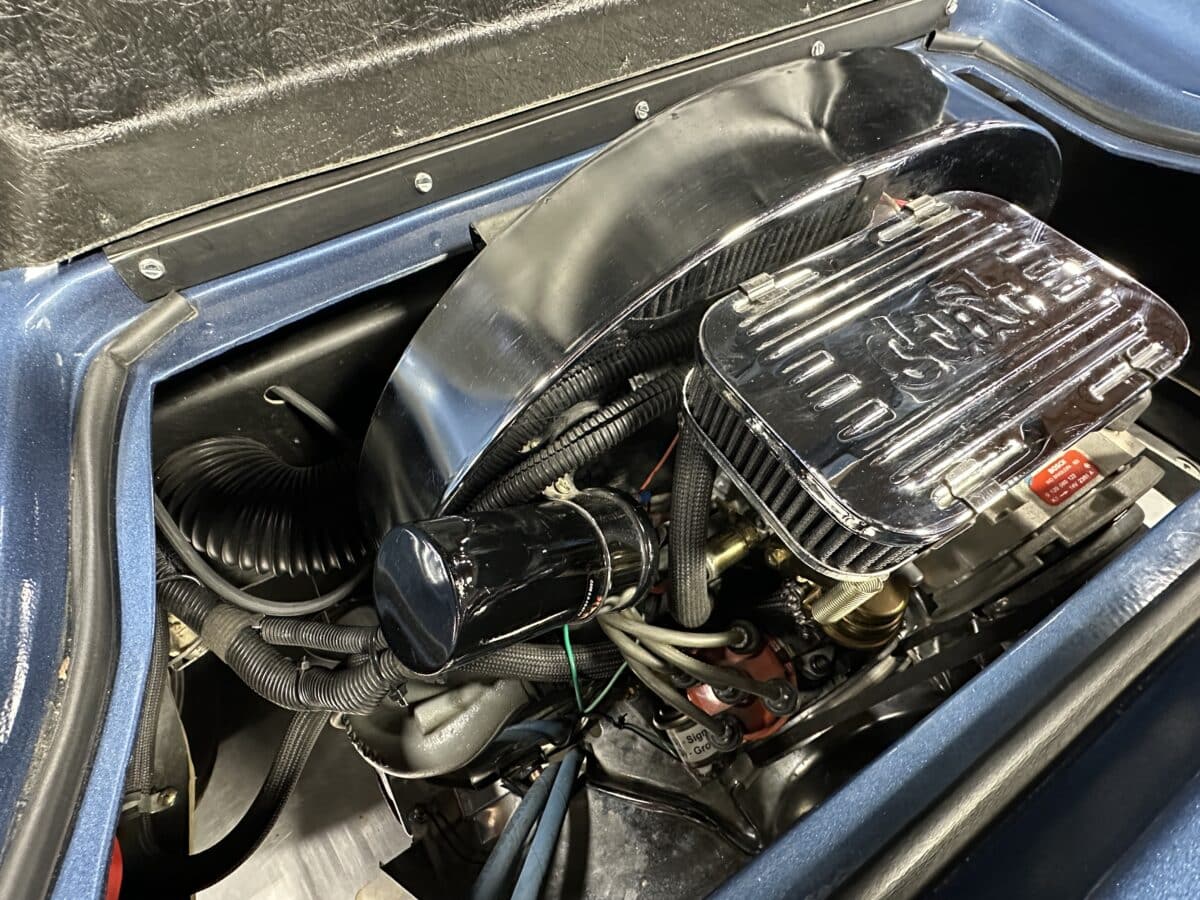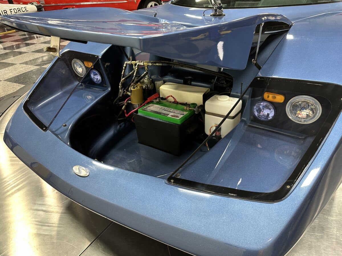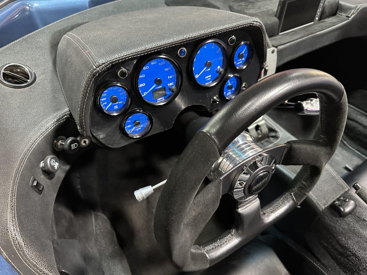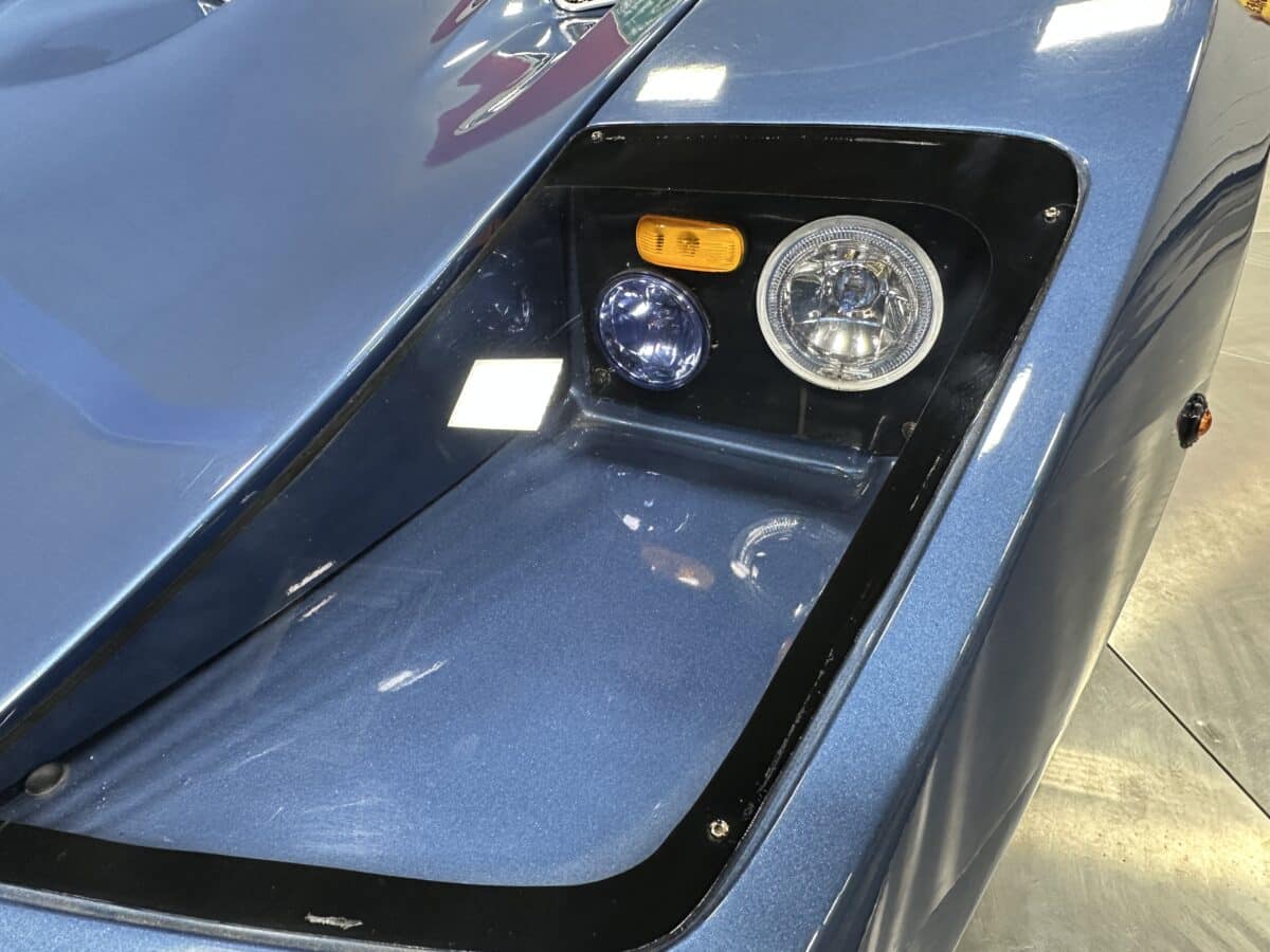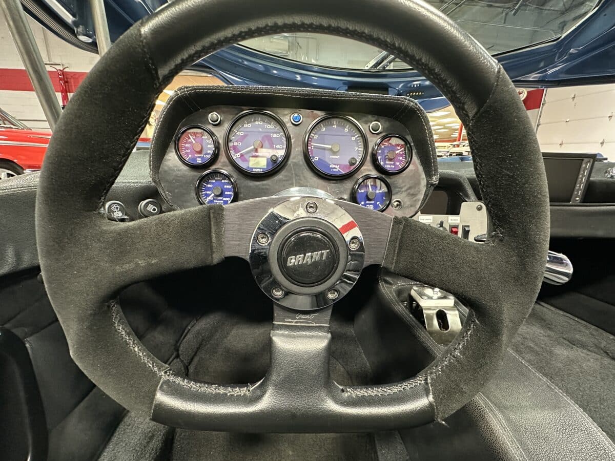 MaxMotive is pleased to offer this sporty Sterling RX Targa, a personal vehicle of Sterling Sports Cars’ CEO. Power comes from the venerable 1600cc VW flat 4 mated to a four-speed manual transmission with a Scat t-handle shifter. The foundation is based on the venerable VW pan chassis, along with more modern suspension technology and four wheel disc brakes. The suspension system includes dual A-arms in front and a four-link setup in the rear among other upgrades. This example was featured in Kit Car Builder and Hot VW magazines plus much of Sterling’s own promotional and advertising literature. The sleek body is formed with a high quality hand-laid resin that circumvents the characteristic scent of lower quality resins, and then coated with PPG Atomic Blue Metallic exterior paint. Open the hydraulic cockpit door to see the black leather bucket seats, flat bottom Grant steering wheel, a stone gray pebble grain dash with a complete gauge package including tachometer, a back-up camera monitor, and an iPod dedicated sound system. Everything’s tied together with a new 18-circuit wiring harness. A specialty car where fun is unabashedly the main objective, this Sterling RX Targa is complete and ready for the road, the track, or the next car cruise. Please be sure to see the photos and details at maxmotive.com