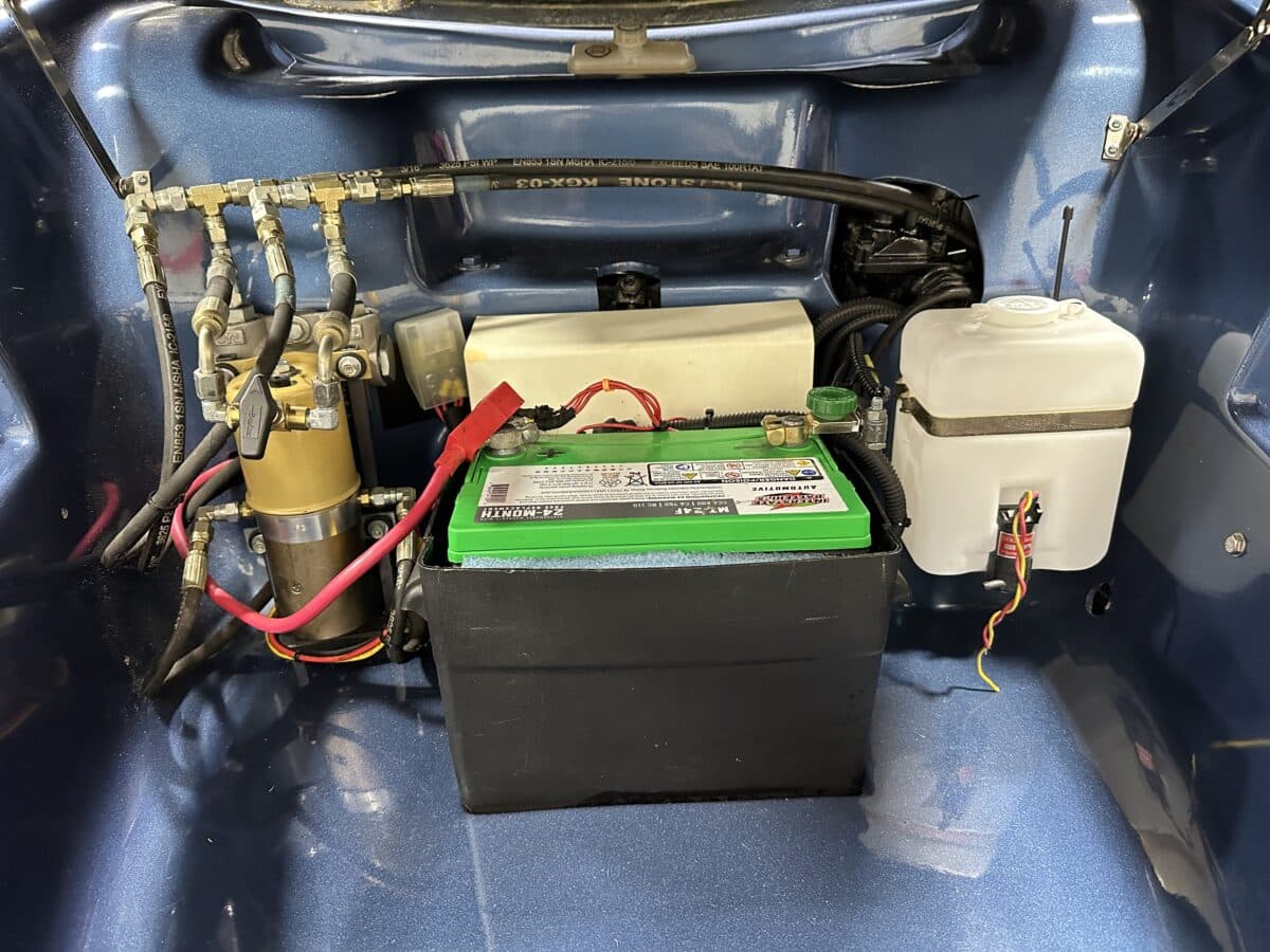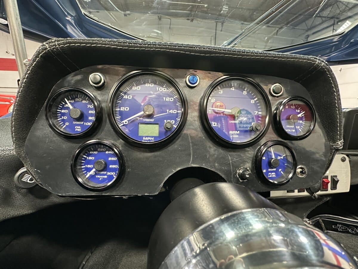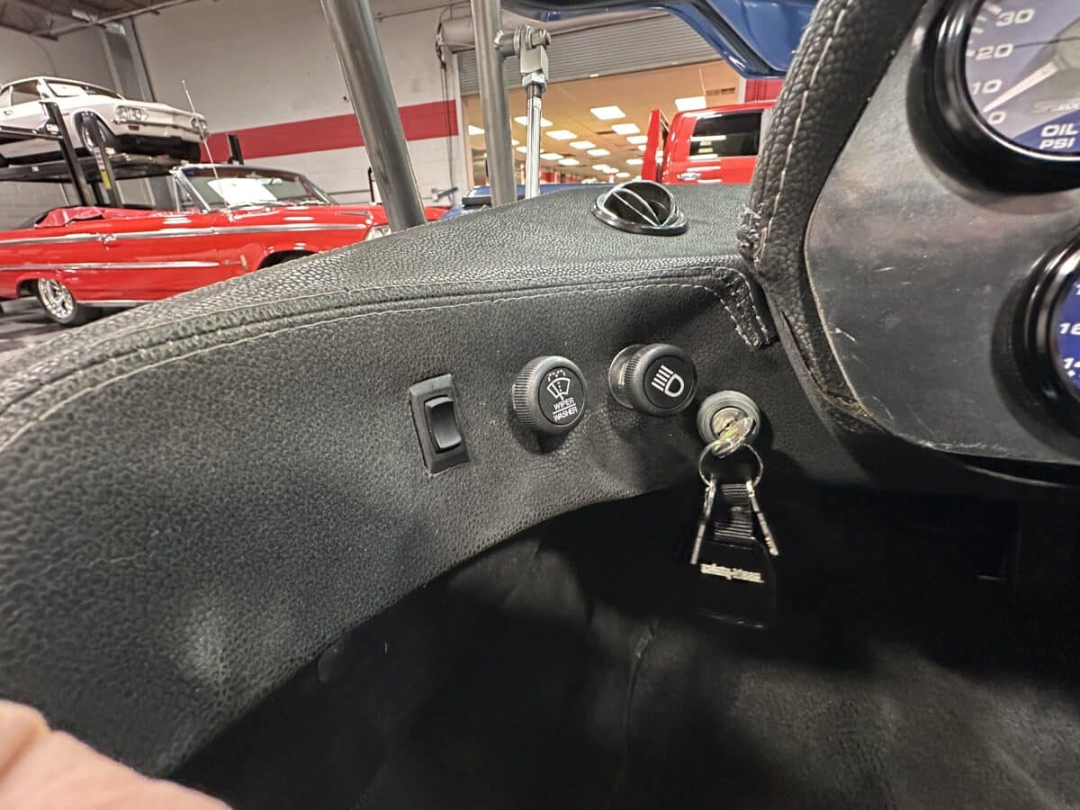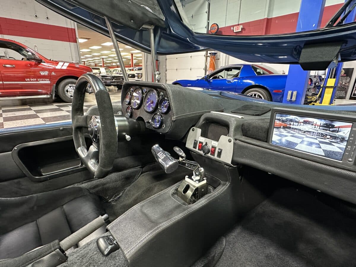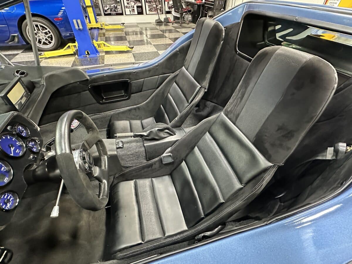 MaxMotive is pleased to offer this sporty Sterling RX Targa, a personal vehicle of Sterling Sports Cars’ CEO. Power comes from the venerable 1600cc VW flat 4 mated to a four-speed manual transmission with a Scat t-handle shifter. The foundation is based on the venerable VW pan chassis, along with more modern suspension technology and four wheel disc brakes. The suspension system includes dual A-arms in front and a four-link setup in the rear among other upgrades. This example was featured in Kit Car Builder and Hot VW magazines plus much of Sterling’s own promotional and advertising literature. The sleek body is formed with a high quality hand-laid resin that circumvents the characteristic scent of lower quality resins, and then coated with PPG Atomic Blue Metallic exterior paint. Open the hydraulic cockpit door to see the black leather bucket seats, flat bottom Grant steering wheel, a stone gray pebble grain dash with a complete gauge package including tachometer, a back-up camera monitor, and an iPod dedicated sound system. Everything’s tied together with a new 18-circuit wiring harness. A specialty car where fun is unabashedly the main objective, this Sterling RX Targa is complete and ready for the road, the track, or the next car cruise. Please be sure to see the photos and details at maxmotive.com