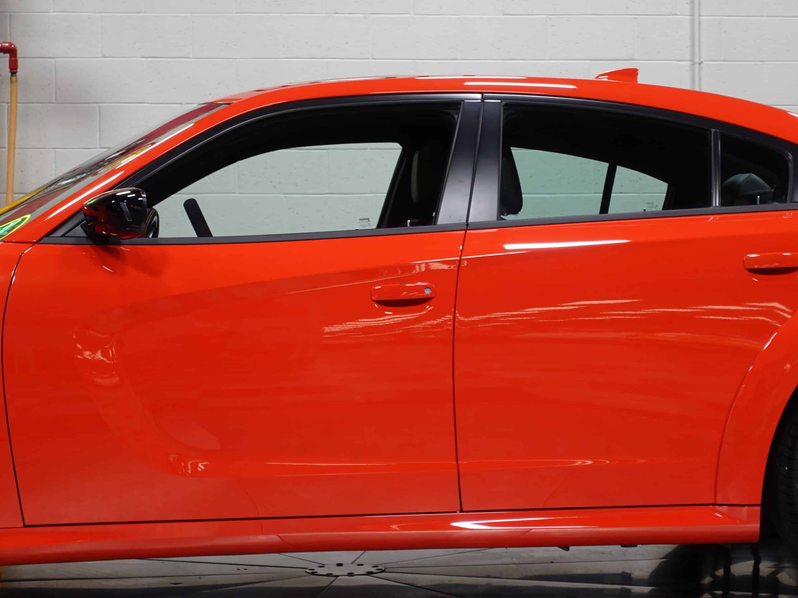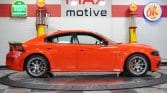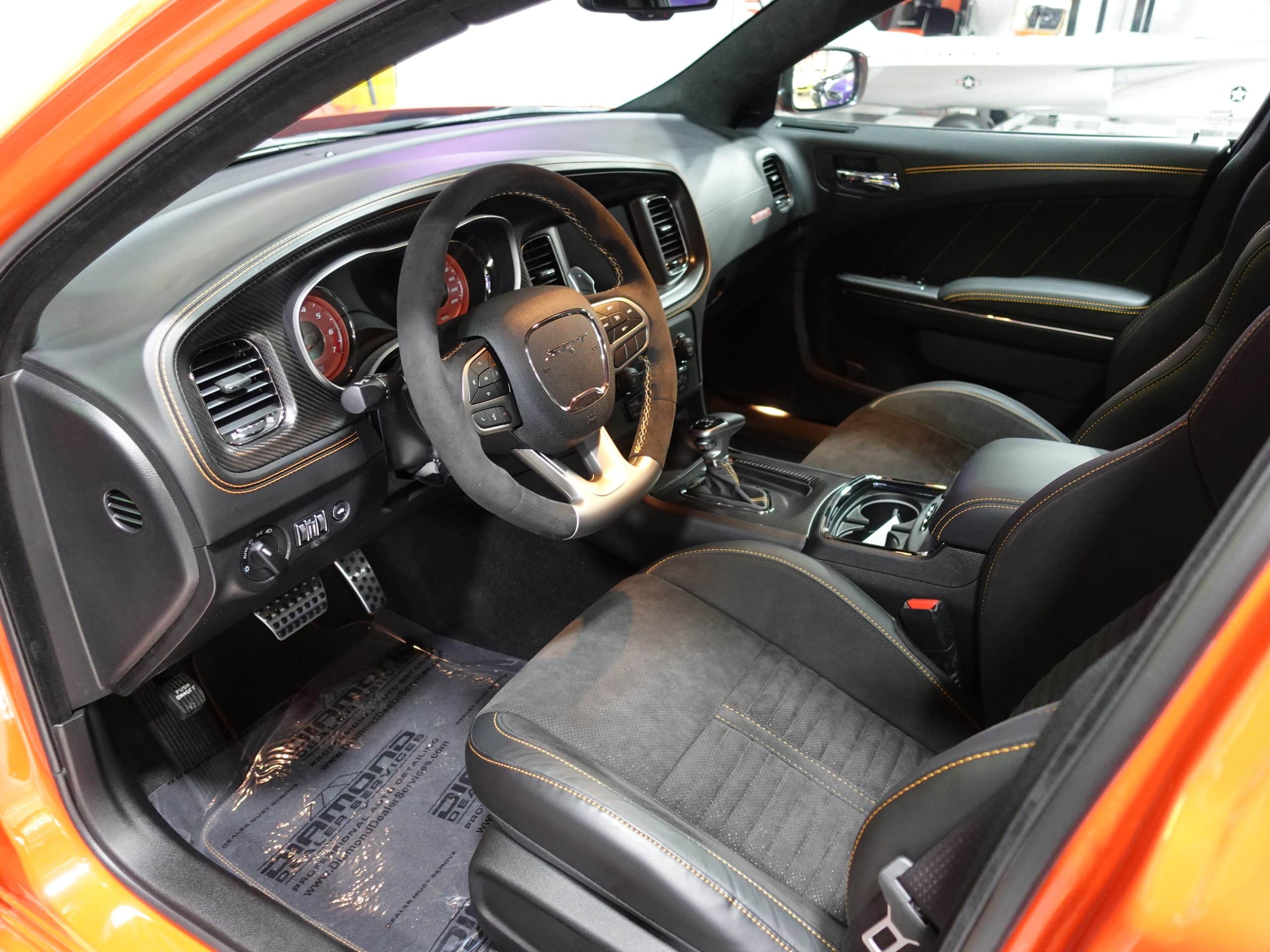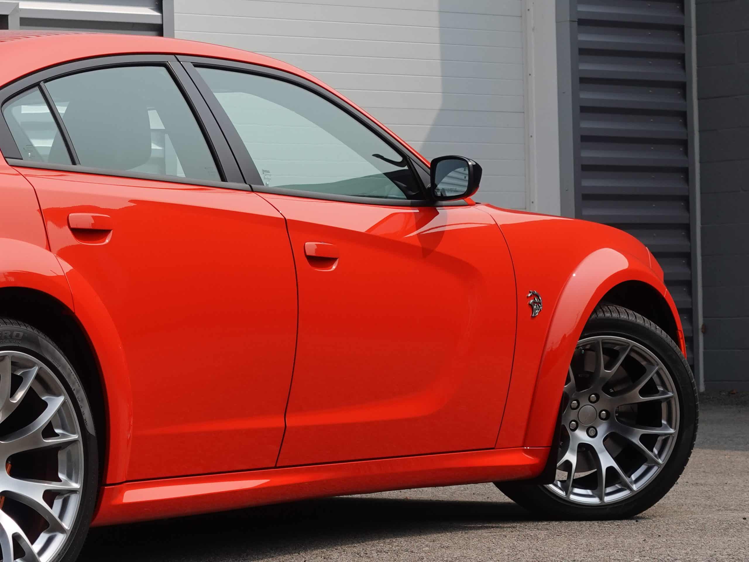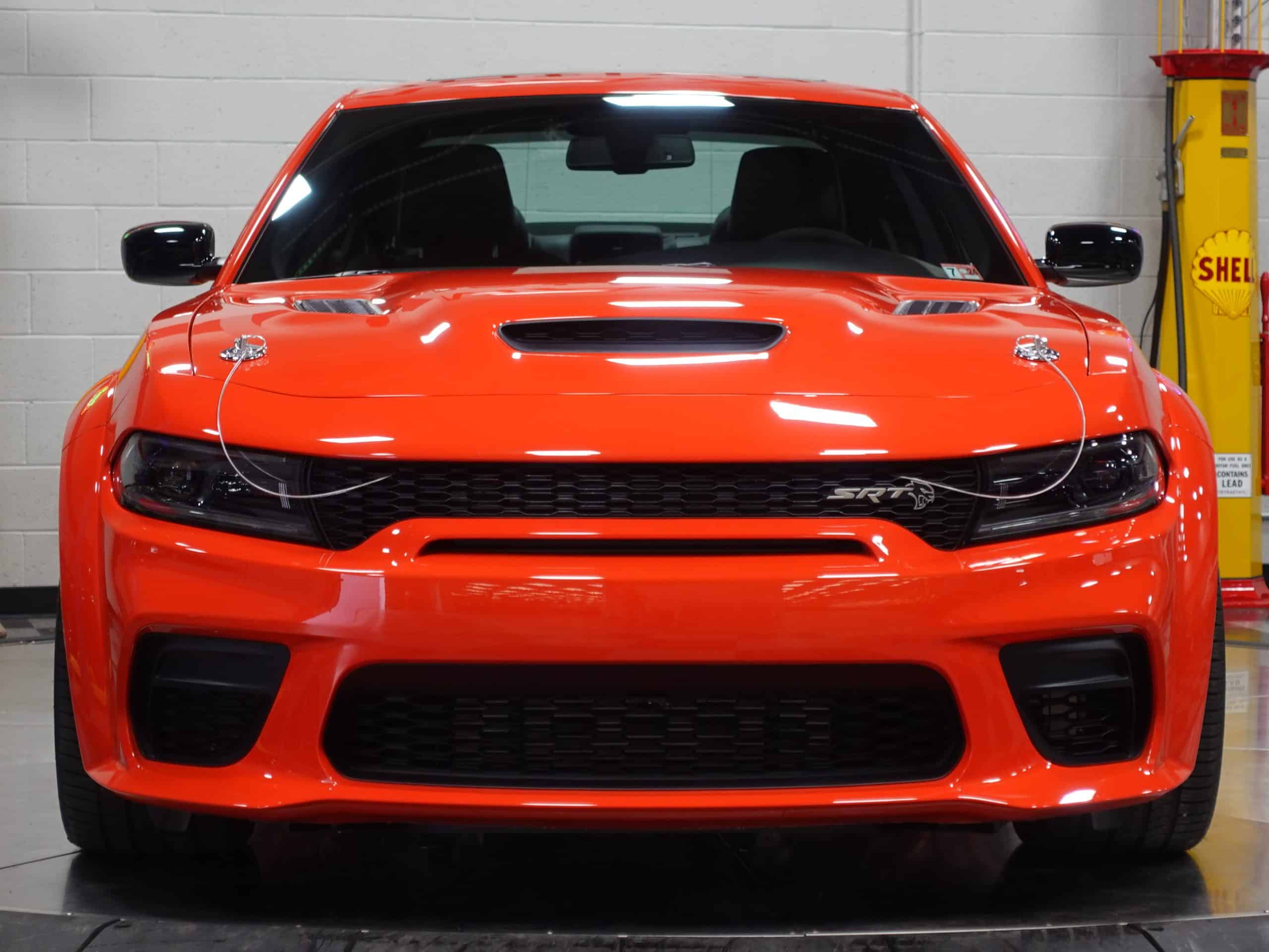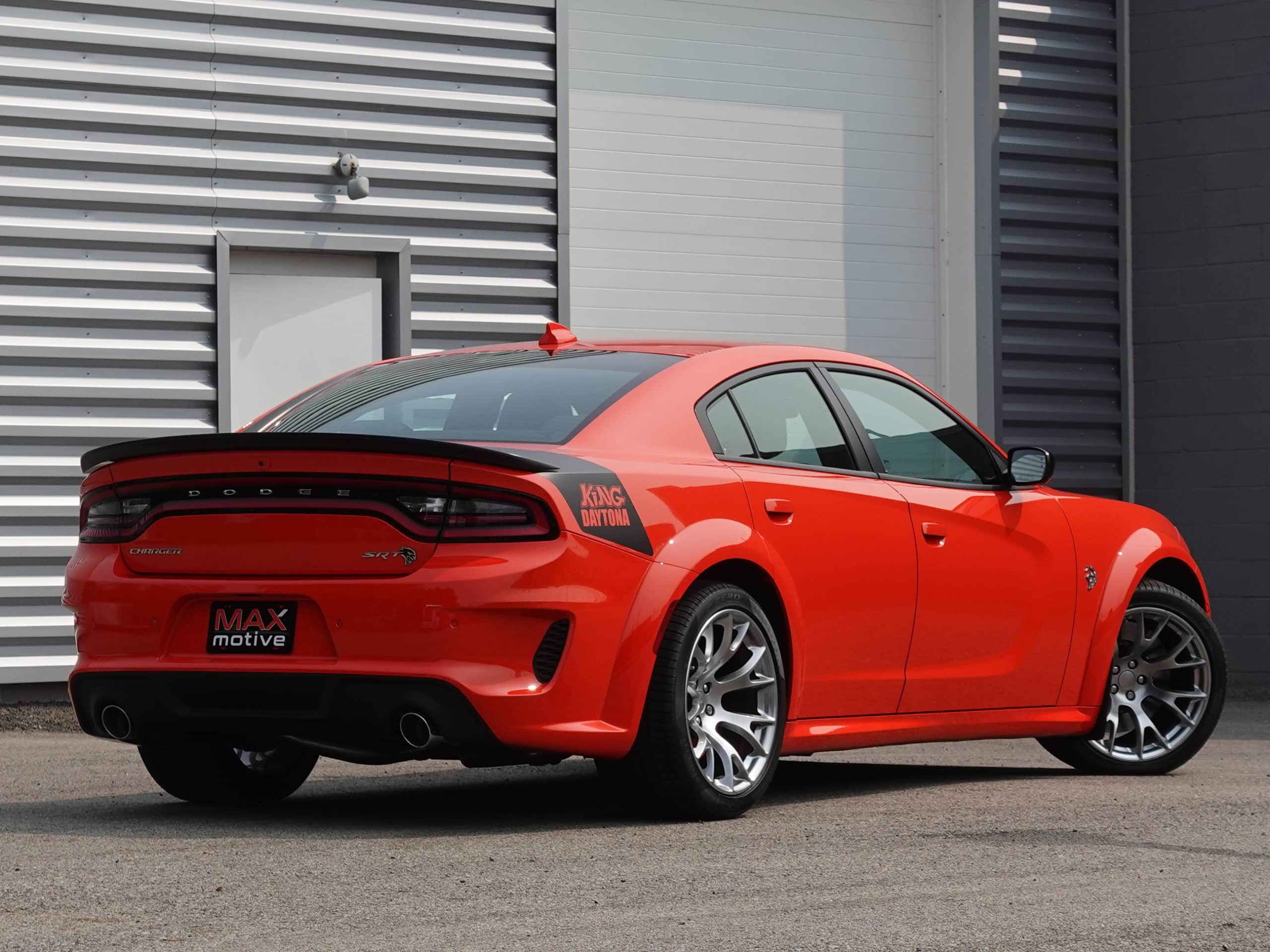 The first supercharged car of the long-anticipated Last Call Editions, this 2023 Dodge Charger King Daytona Special Edition is now available from the MaxMotive Pittsburgh Showroom. The King Daytona is an SRT Hellcat Redeye Widebody with special content, not the least of which is 10 extra horsepower, bringing the total to a brutal 807! Just 300 King Daytonas were built; this one comes with the original window sticker, build sheets, and Factory Shipping Order. The 6.2L Supercharged HO V8 engine works in conjunction with the 8-speed automatic HP90 transmission, after-run chiller, Line Lock Launch Control, Launch Assist, and SRT Configurable Drive Modes to provide adrenaline-rush performance with amazingly smooth, luxurious driveability. The King Daytona is distinguished by its Go Mango exterior paint, King Daytona trunk stripe, orange Brembo brake calipers, front and rear SRT spoilers, and 20”x11” Warp-Speed Satin Carbon Wheels. Inside, it’s appointed with plush Nappa/Alcantara seats with logos, suede door trim, suede headliner, orange interior accent stitch, real carbon fiber interior accents, and an SRT Alcantara Steering Wheel. This example also features the Navigation Group, the Harman/Kardon Audio Group (900 watts and 19 speakers) and a Power Sunroof. The King Daytona pays homage to Big Willie Robinson, a legendary racer and multicultural leader who wheeled a drag race modified Charger Daytona on the streets of Los Angeles during the glory days of muscle. For the Last Call series, Dodge pulled out all the stops to create what is perhaps the ultimate Dodge Charger, and with only 300 produced it is an exclusive automobile offering extreme performance, comfort, and style. The 2023 Dodge Charger King Daytona Special Edition. Please see the detailed photos and videos at www.maxmotive.com.