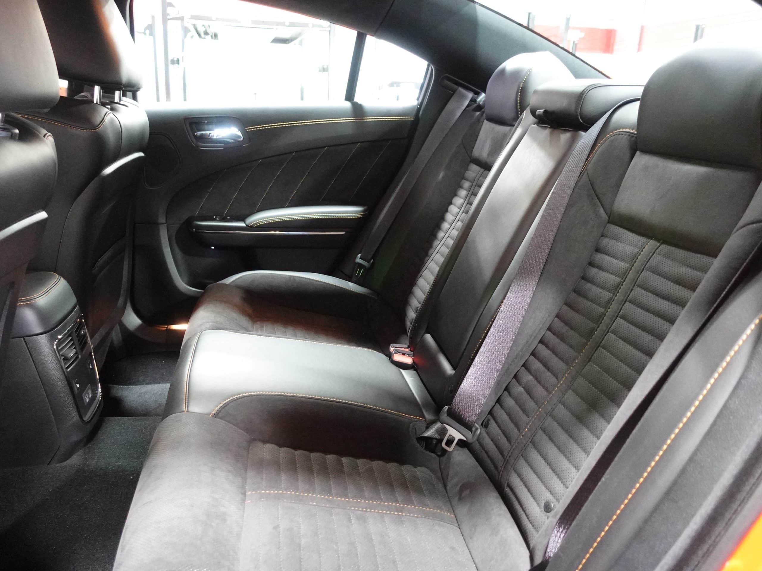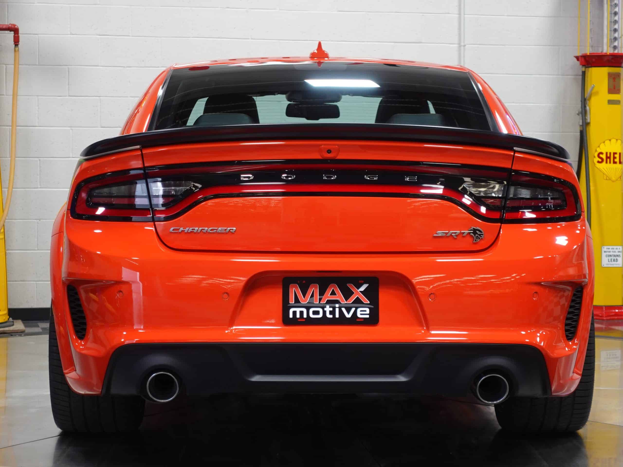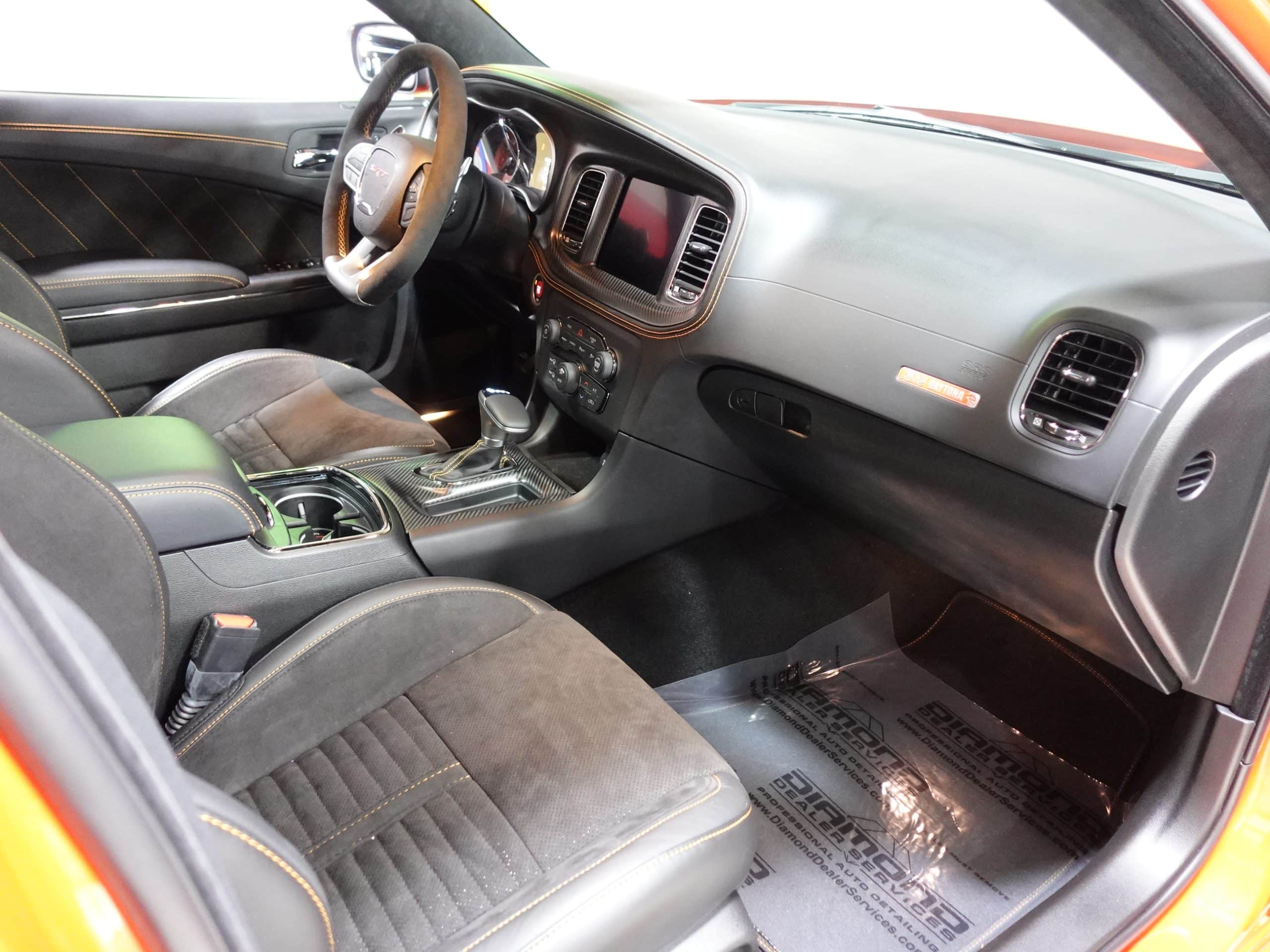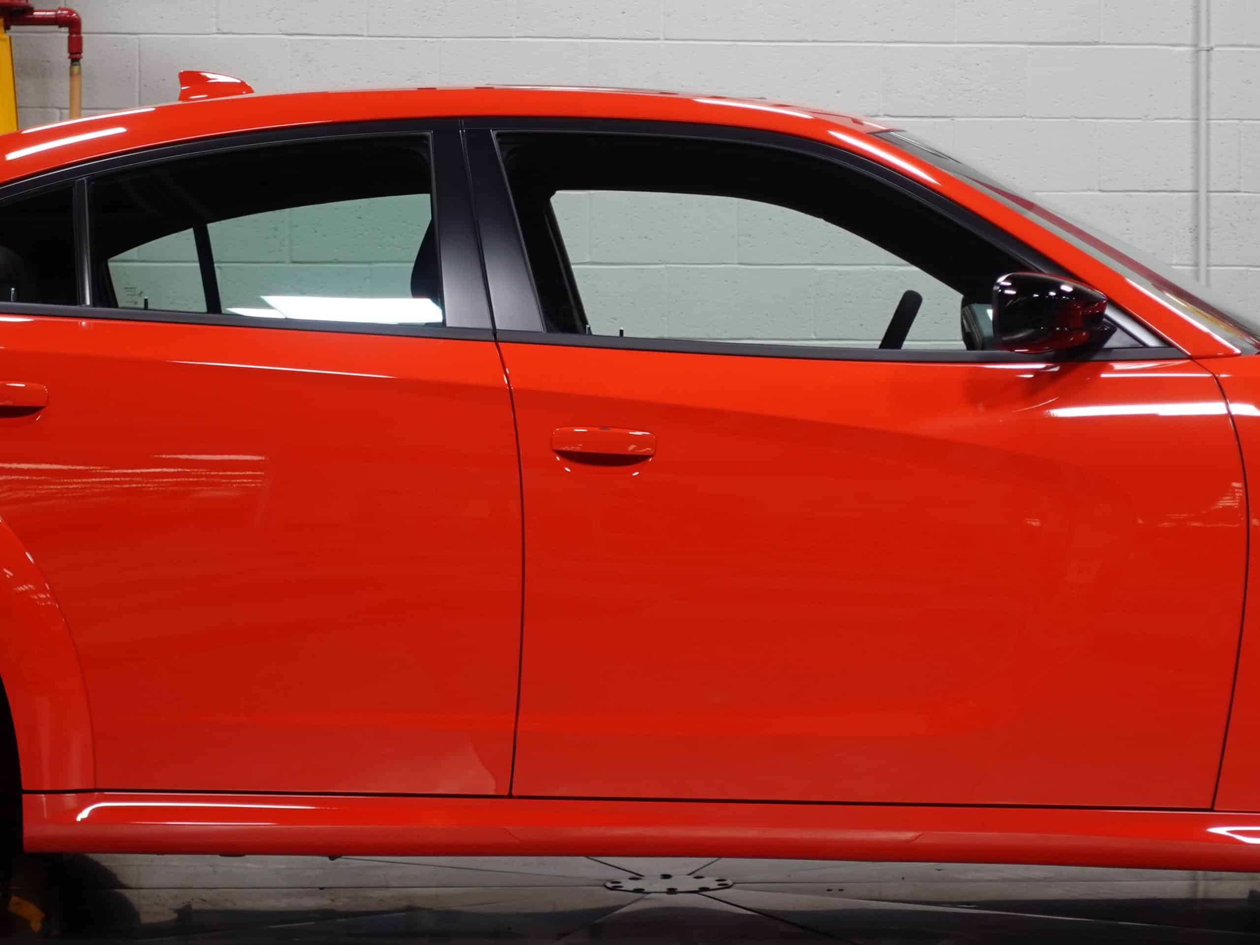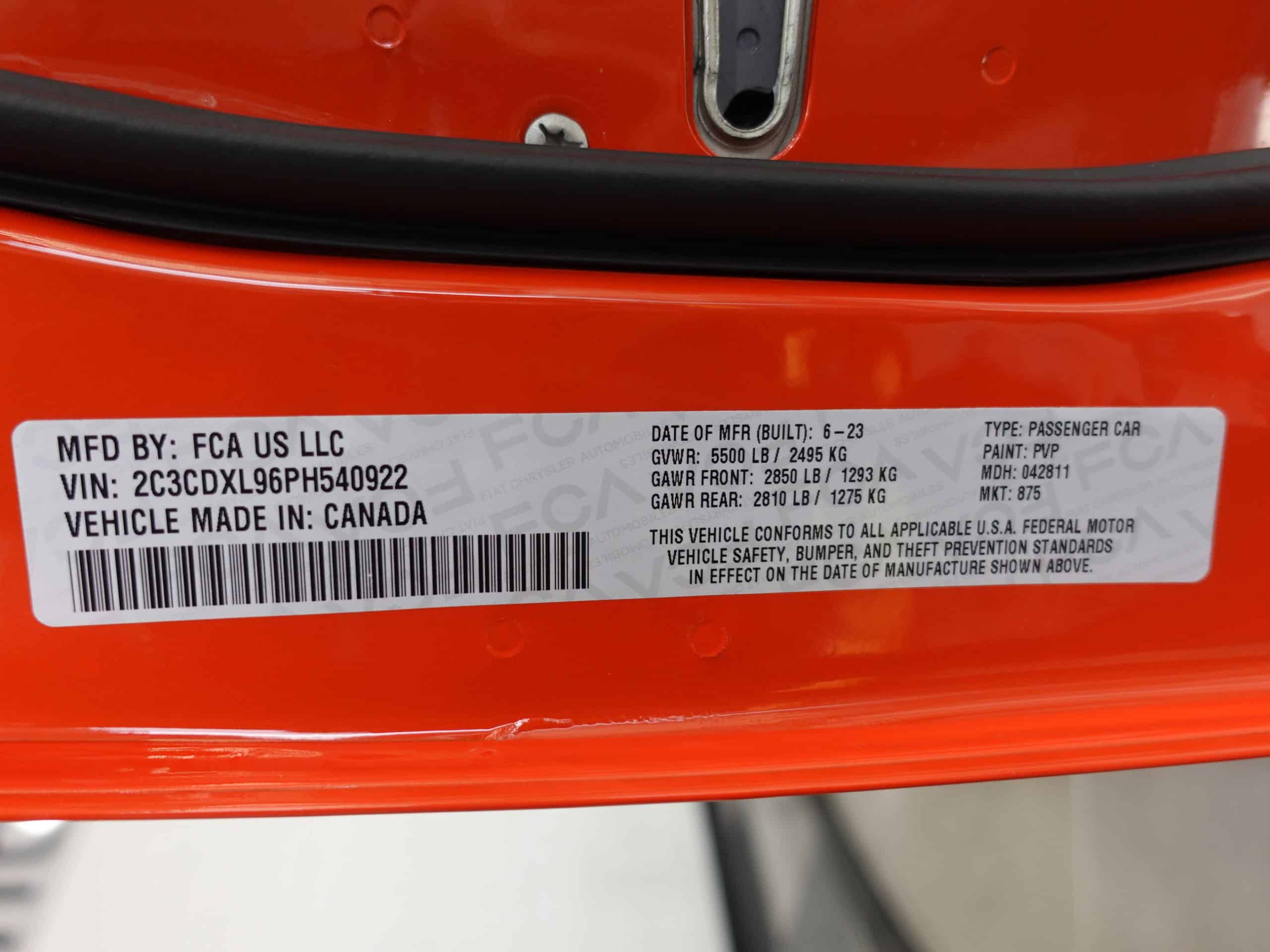 The first supercharged car of the long-anticipated Last Call Editions, this 2023 Dodge Charger King Daytona Special Edition is now available from the MaxMotive Pittsburgh Showroom. The King Daytona is an SRT Hellcat Redeye Widebody with special content, not the least of which is 10 extra horsepower, bringing the total to a brutal 807! Just 300 King Daytonas were built; this one comes with the original window sticker, build sheets, and Factory Shipping Order. The 6.2L Supercharged HO V8 engine works in conjunction with the 8-speed automatic HP90 transmission, after-run chiller, Line Lock Launch Control, Launch Assist, and SRT Configurable Drive Modes to provide adrenaline-rush performance with amazingly smooth, luxurious driveability. The King Daytona is distinguished by its Go Mango exterior paint, King Daytona trunk stripe, orange Brembo brake calipers, front and rear SRT spoilers, and 20”x11” Warp-Speed Satin Carbon Wheels. Inside, it’s appointed with plush Nappa/Alcantara seats with logos, suede door trim, suede headliner, orange interior accent stitch, real carbon fiber interior accents, and an SRT Alcantara Steering Wheel. This example also features the Navigation Group, the Harman/Kardon Audio Group (900 watts and 19 speakers) and a Power Sunroof. The King Daytona pays homage to Big Willie Robinson, a legendary racer and multicultural leader who wheeled a drag race modified Charger Daytona on the streets of Los Angeles during the glory days of muscle. For the Last Call series, Dodge pulled out all the stops to create what is perhaps the ultimate Dodge Charger, and with only 300 produced it is an exclusive automobile offering extreme performance, comfort, and style. The 2023 Dodge Charger King Daytona Special Edition. Please see the detailed photos and videos at www.maxmotive.com.